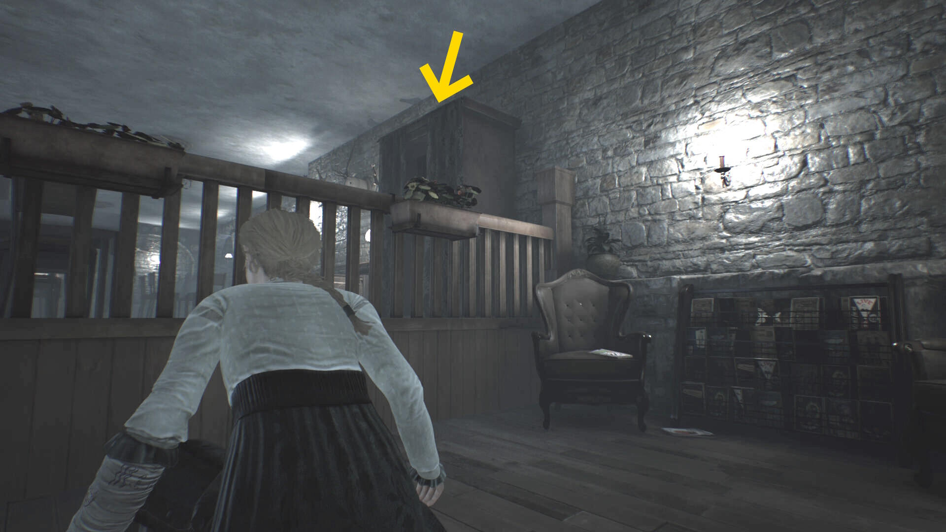 - 誘導されたアシュマンがジュークボックスに近づいたら、右の数段の階段をあがる