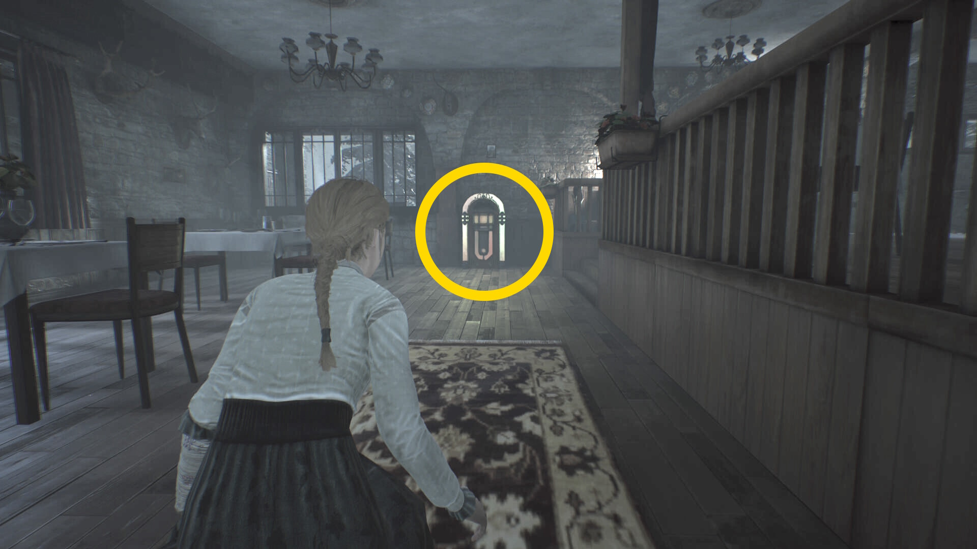 - 本来であればテレビの手前の椅子にアンドレアが座っているが、ジュークボックスを作動させることでそちらに向かっており、無人になっている