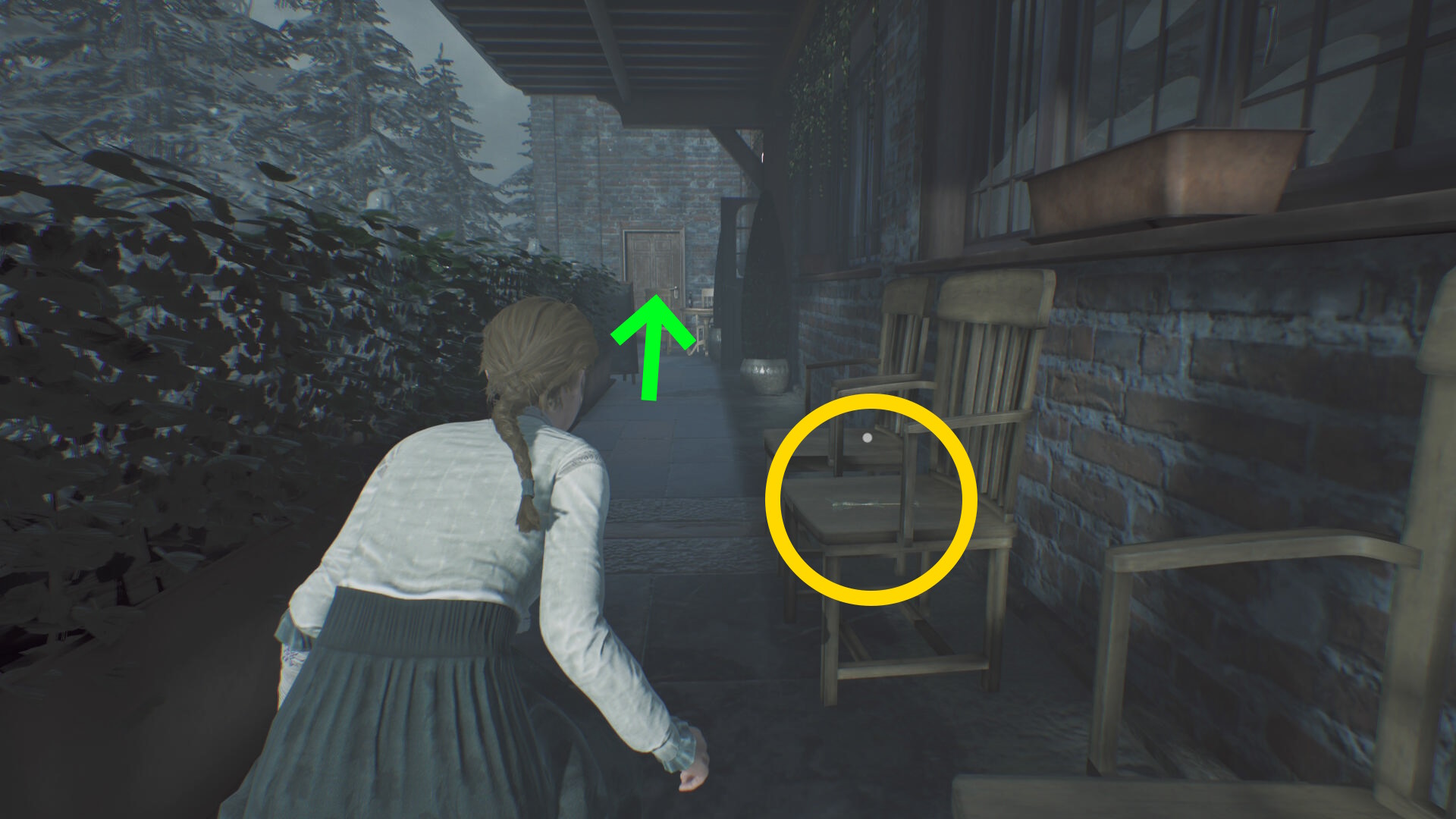 - ダッシュすると赤い修道女に見つかるので、しゃがみ移動で向かう
