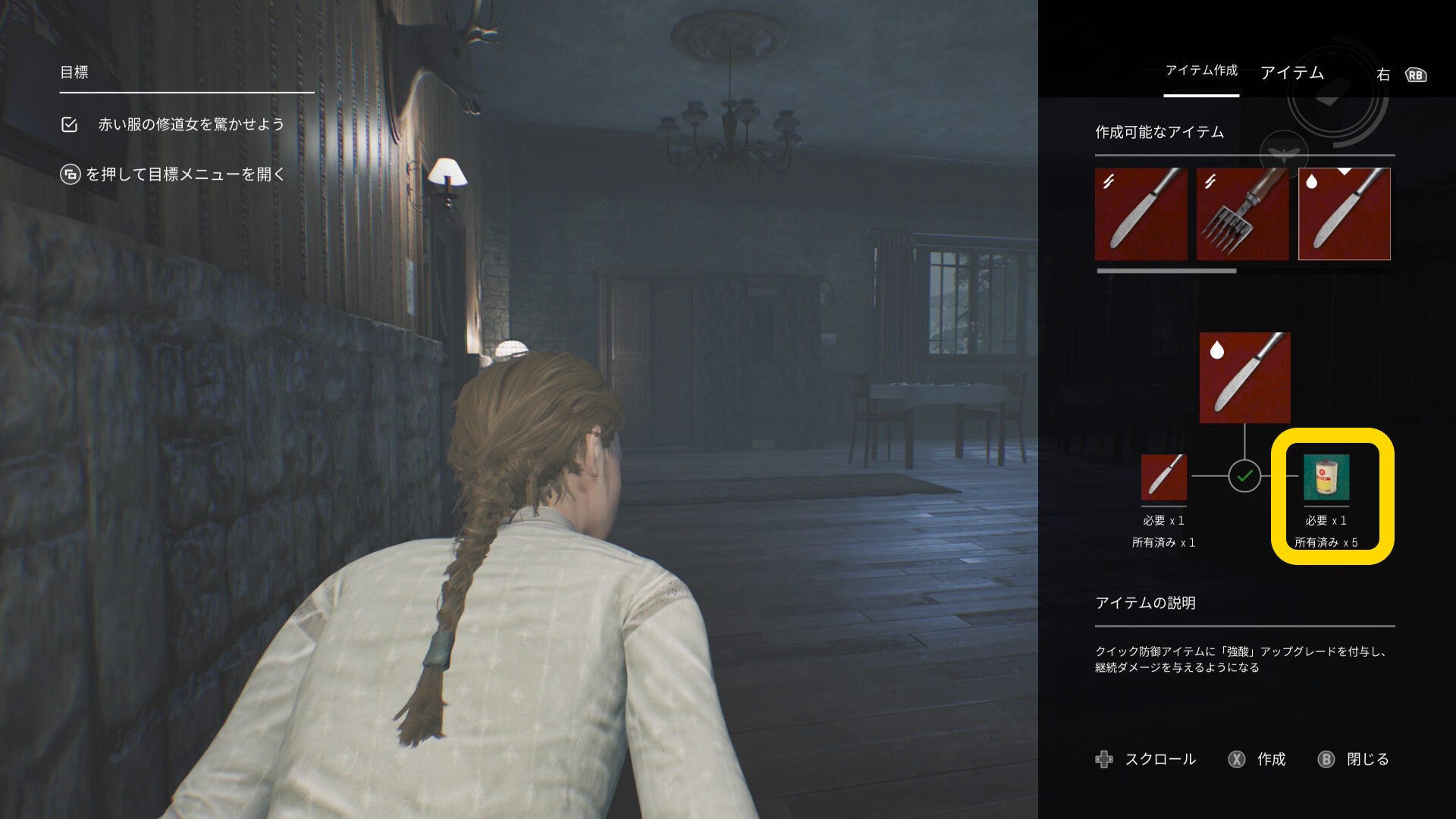 - 当サイトでは赤い修道女の気絶を狙うため、防御アイテムに腐食防止剤を組み合わせる