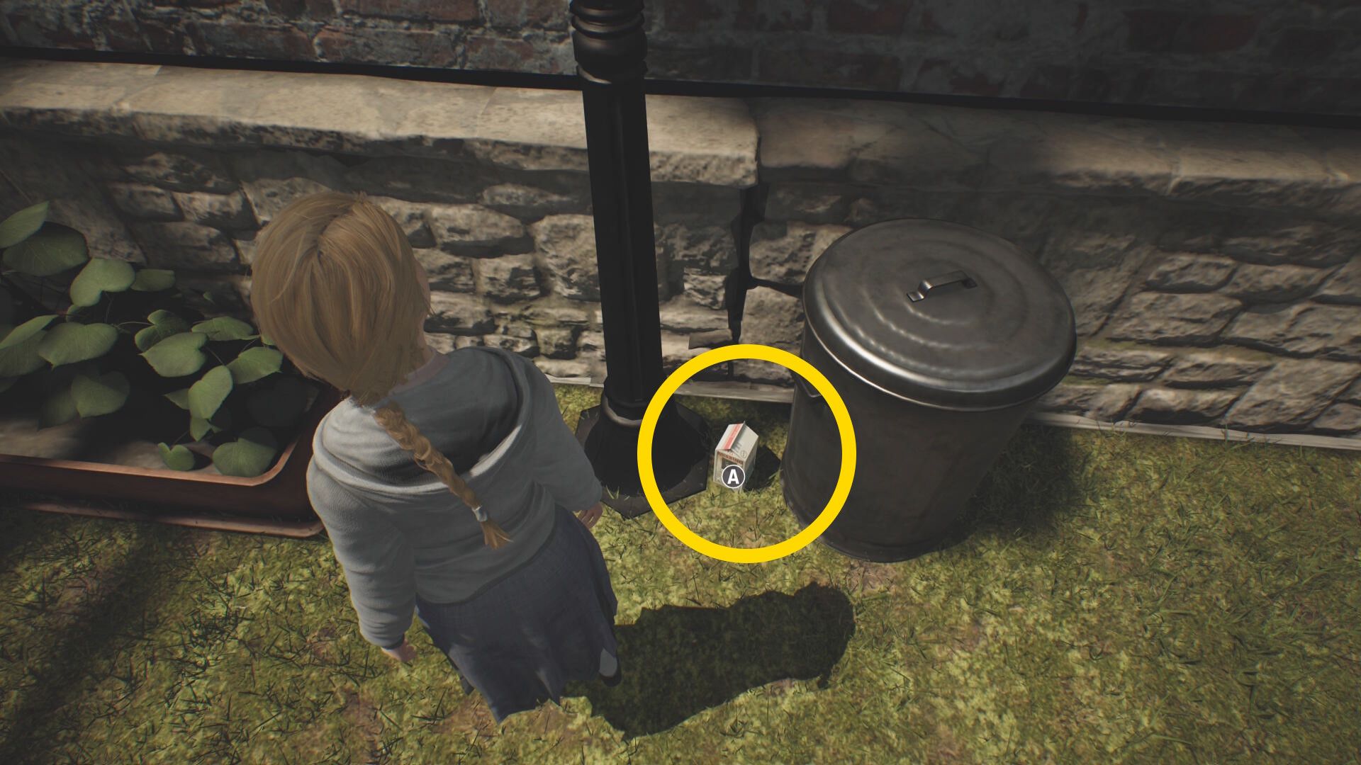 • 右にある陽動アイテム (レンガ)を回収して投げましょう