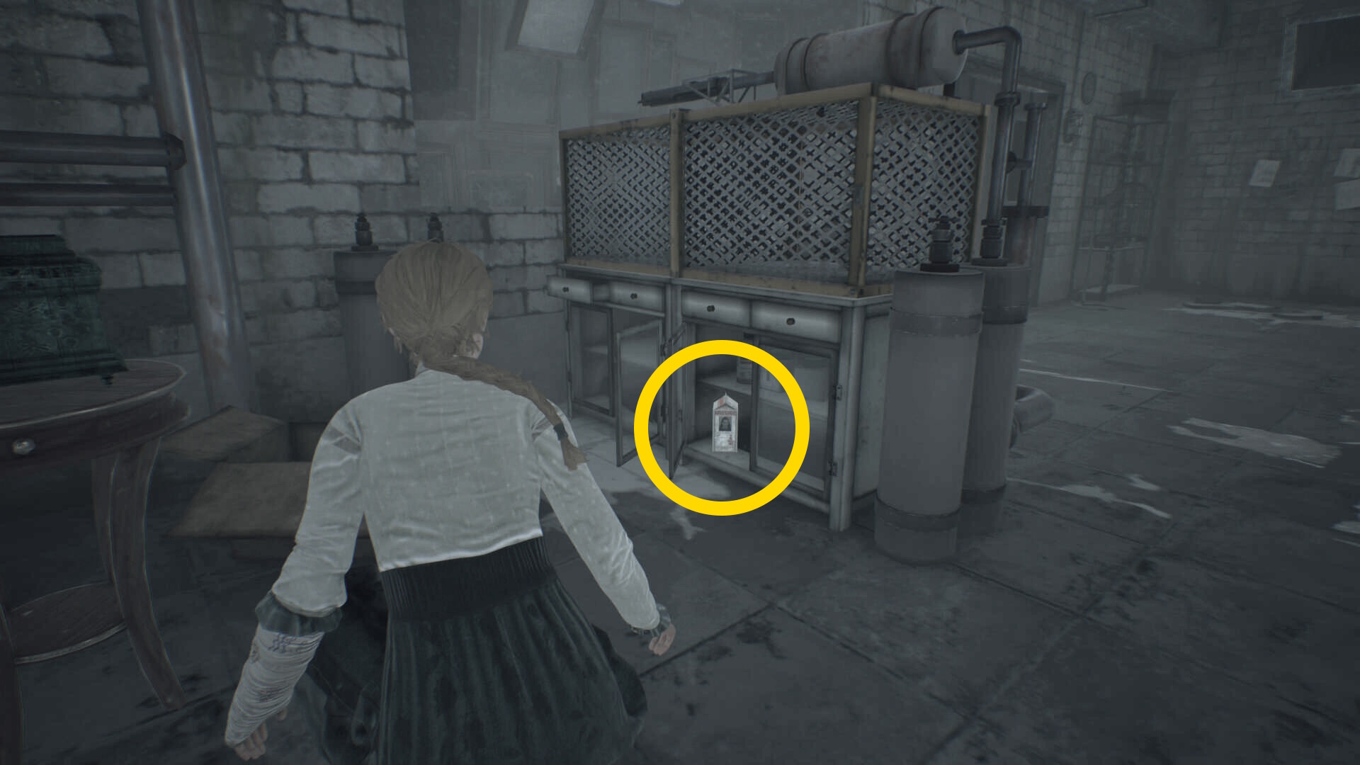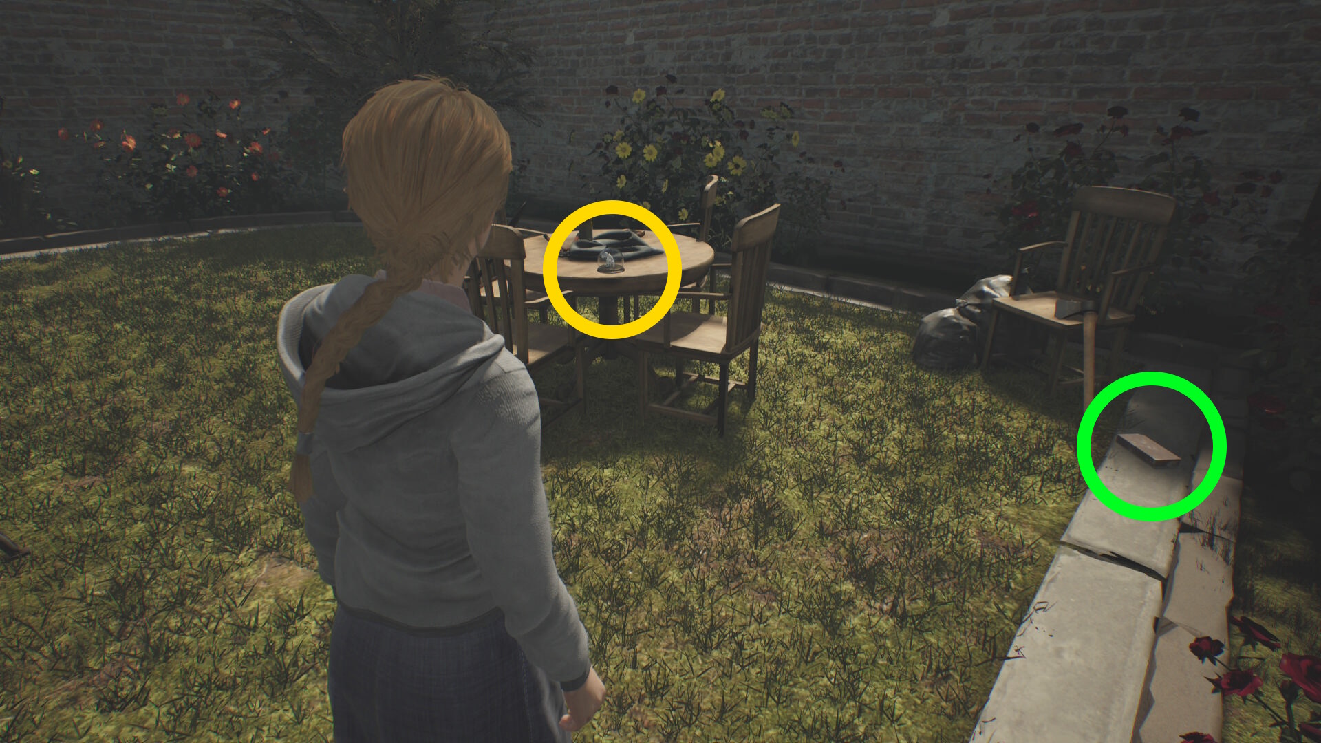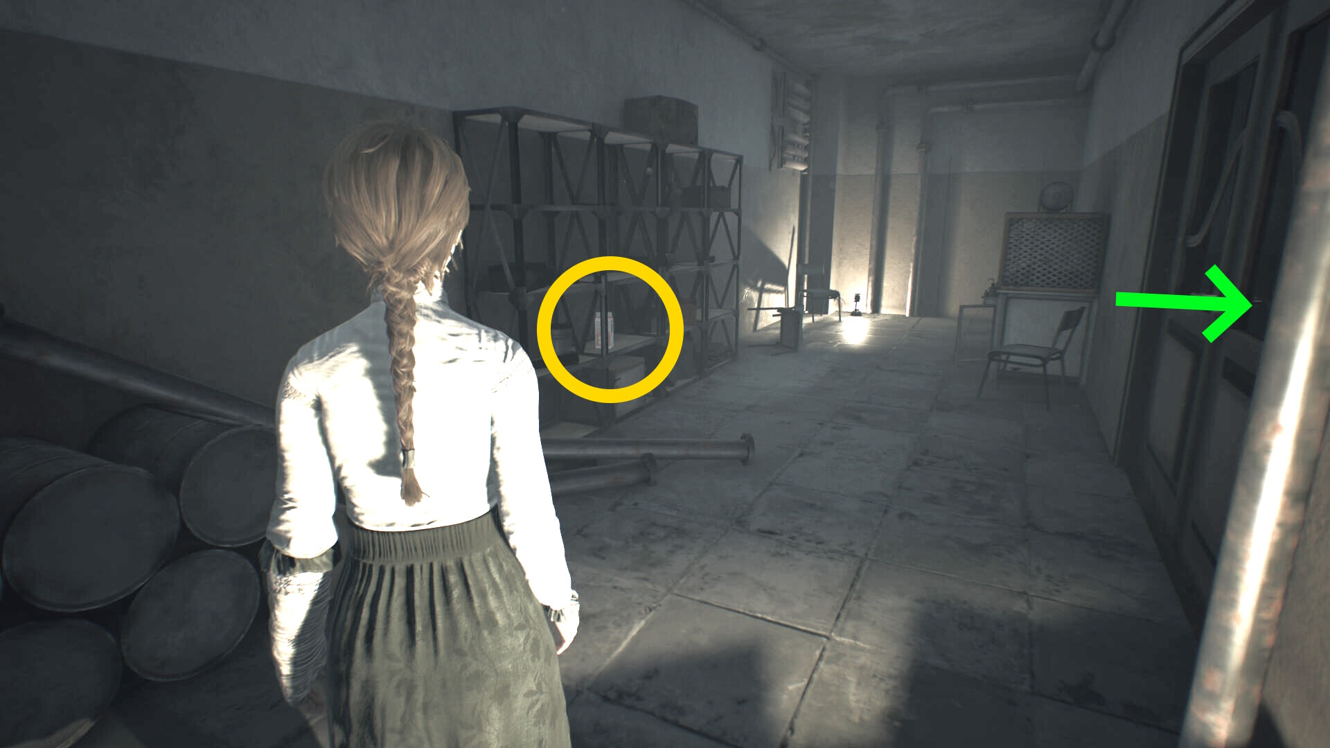 • 隣の部屋に入ってすぐ右のベンチに防御アイテムと 金属ワイヤ