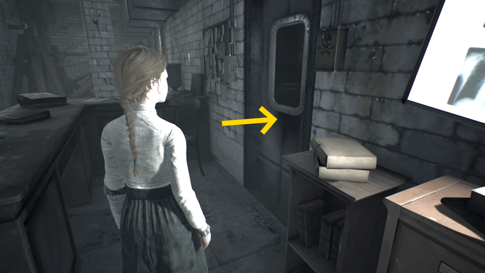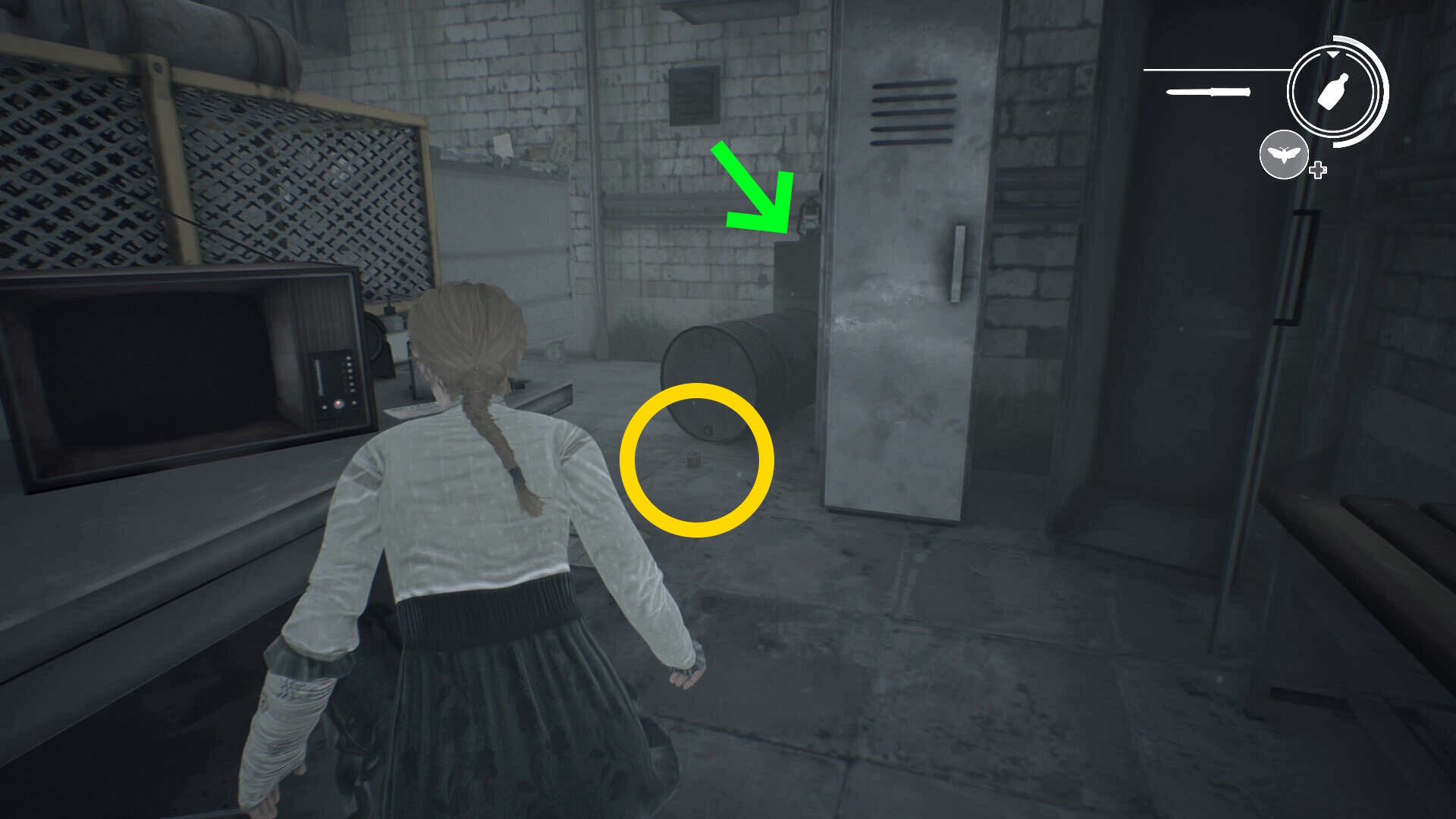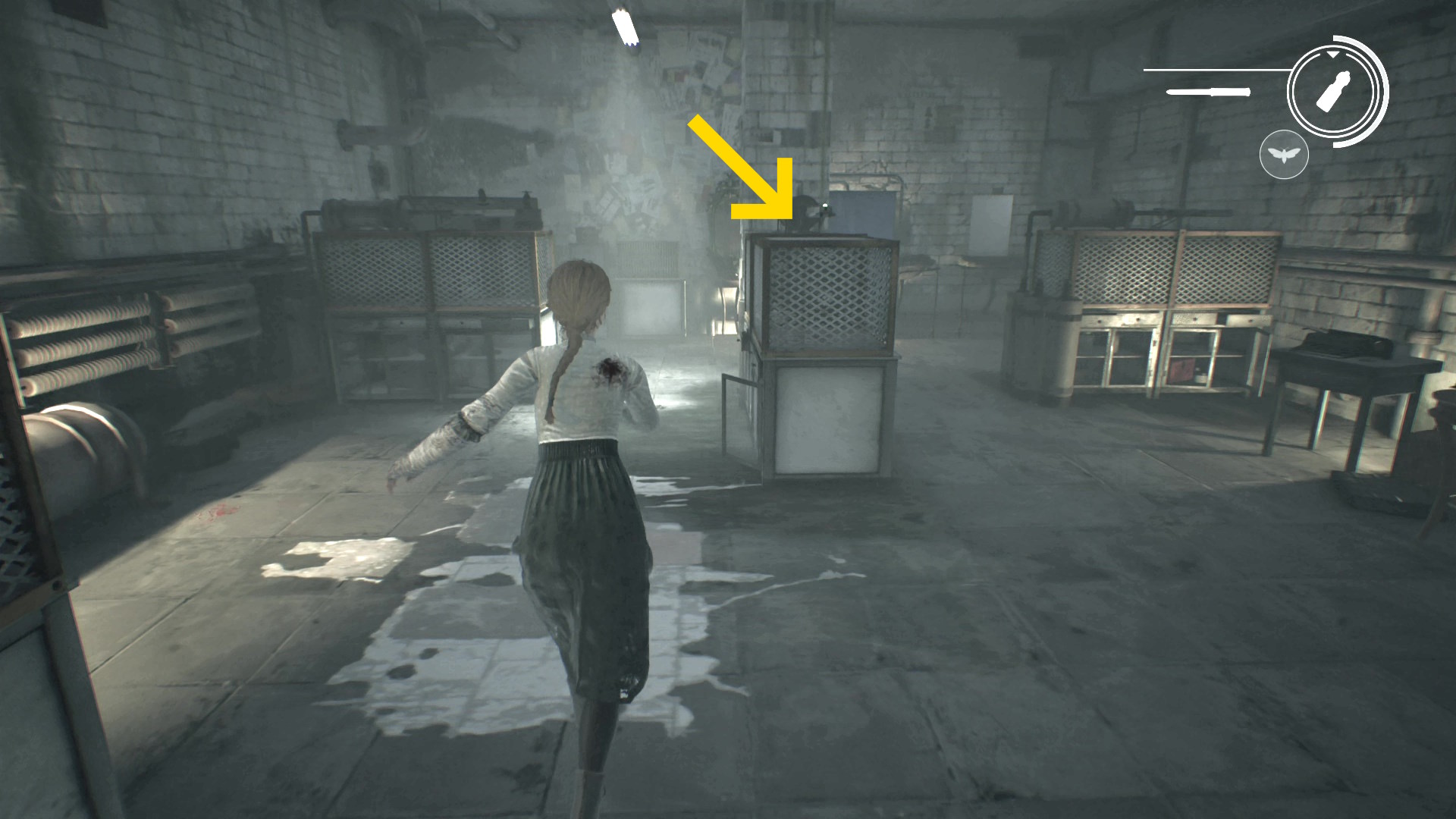 • ネイルガンを回収した壁が隠しドアになっているため (下画像2枚目)、ポーセリンが出現したらすぐに隠しドアを開けて廊下に出ること