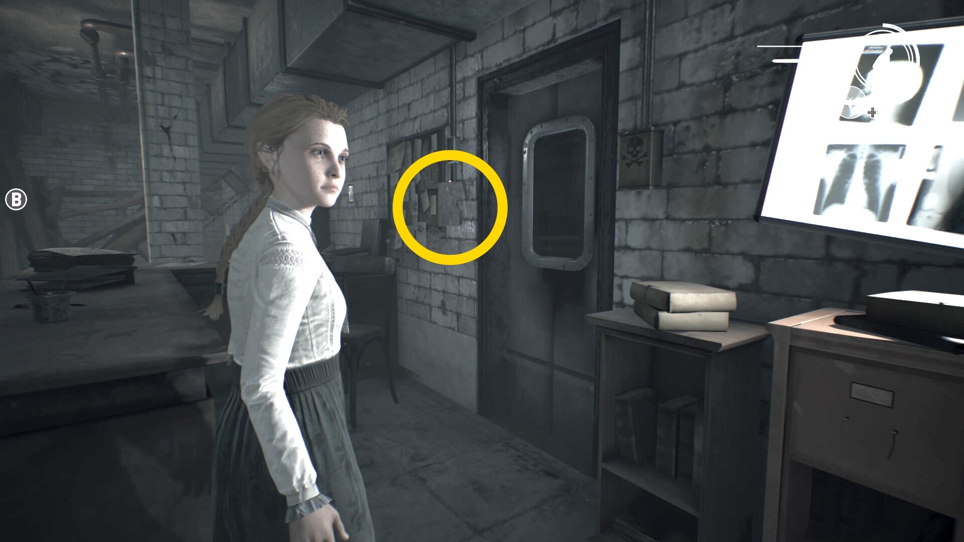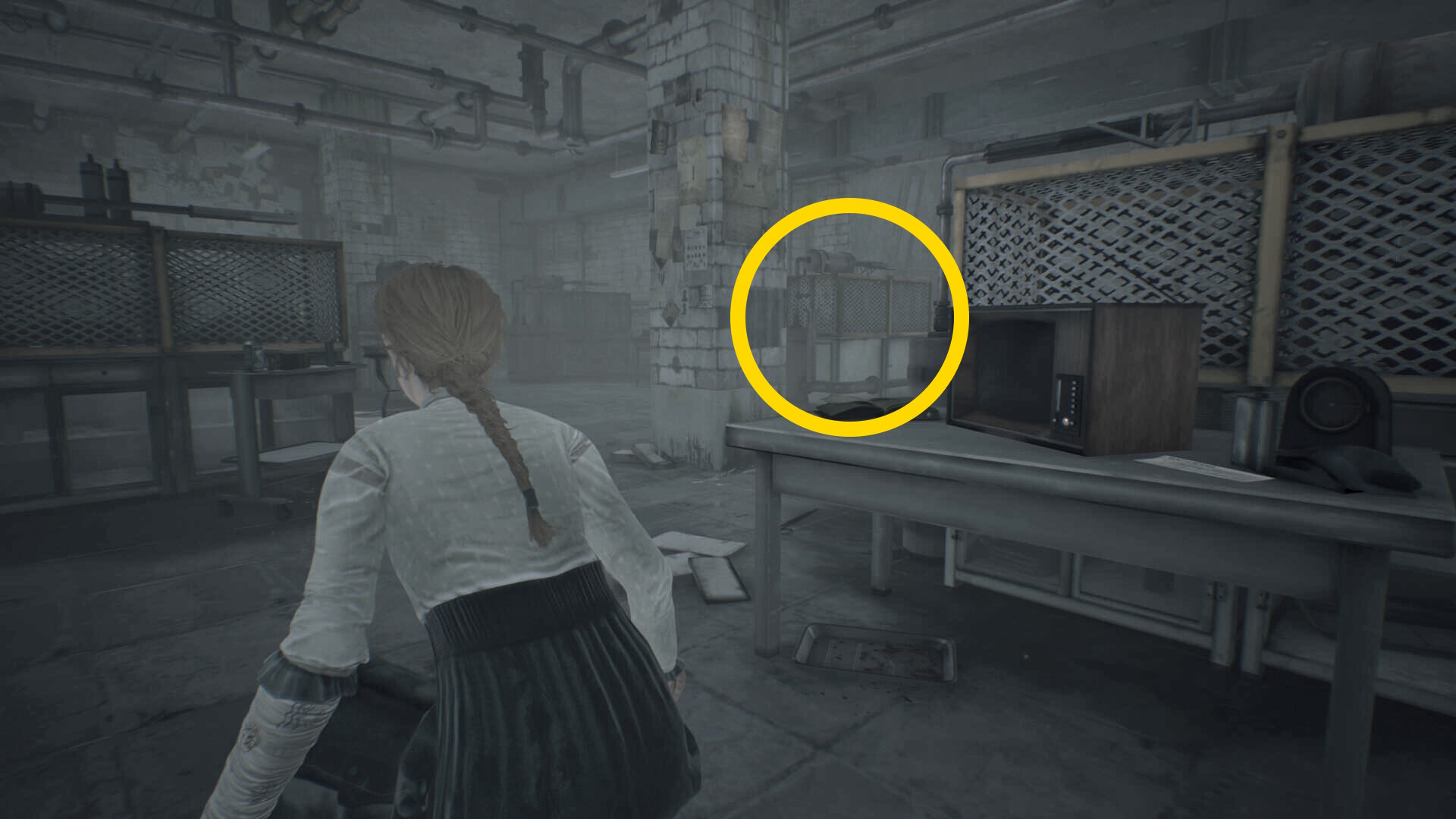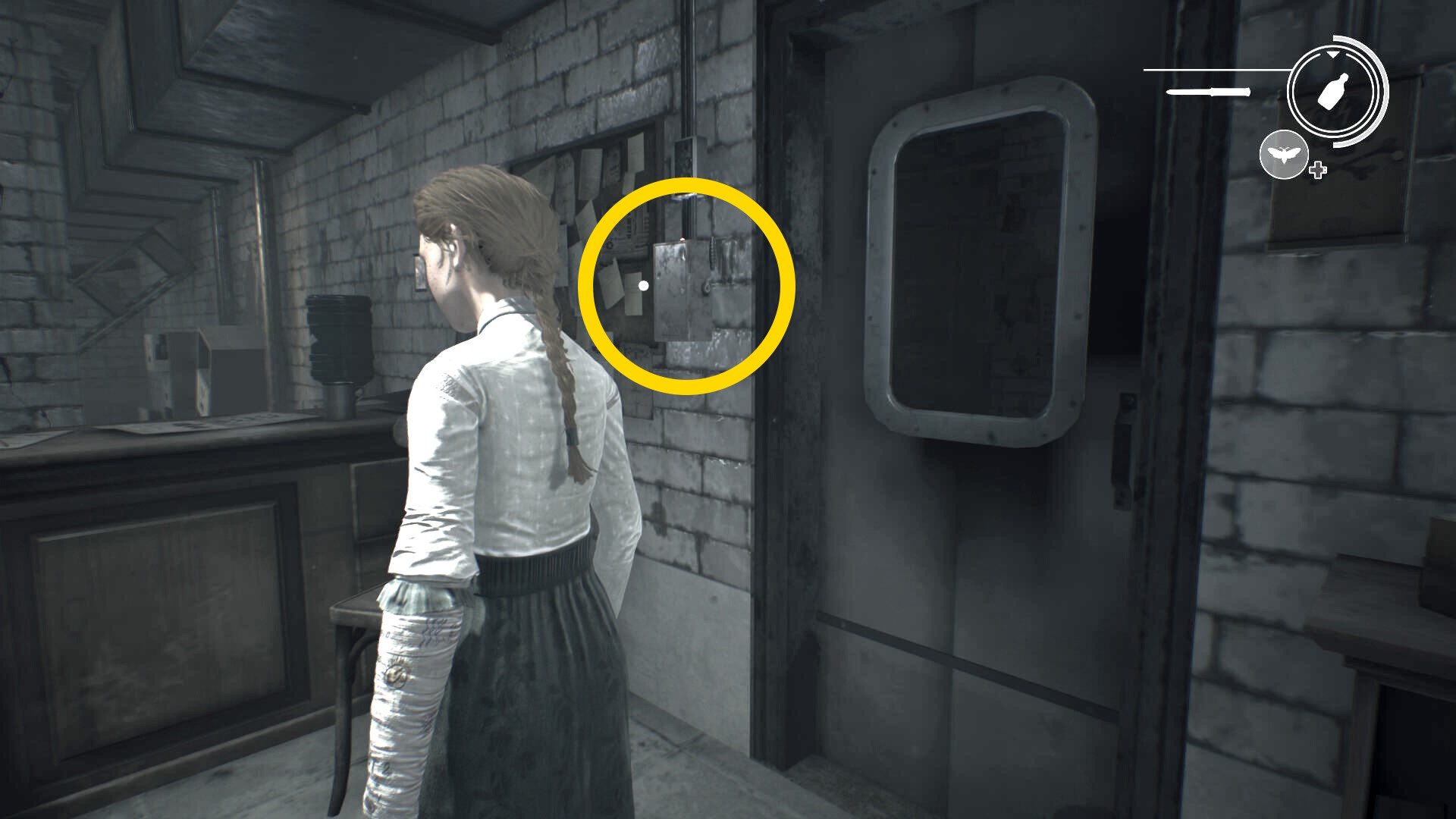 • ネイルガンを回収した壁が隠しドアになっているため (下画像2枚目)、ポーセリンが出現したらすぐに隠しドアを開けて廊下に出ること