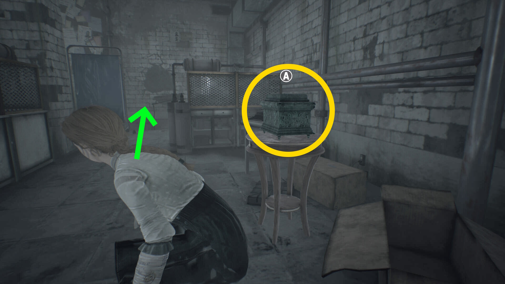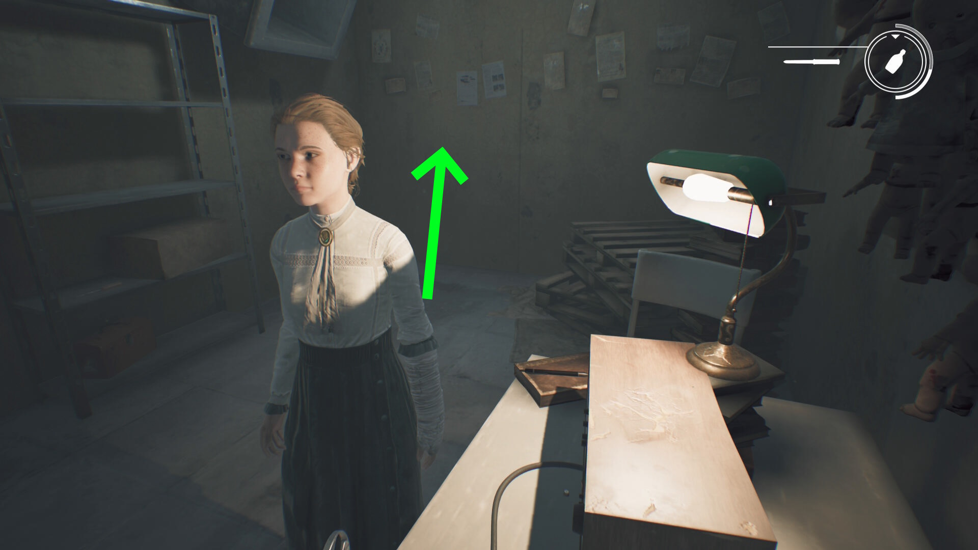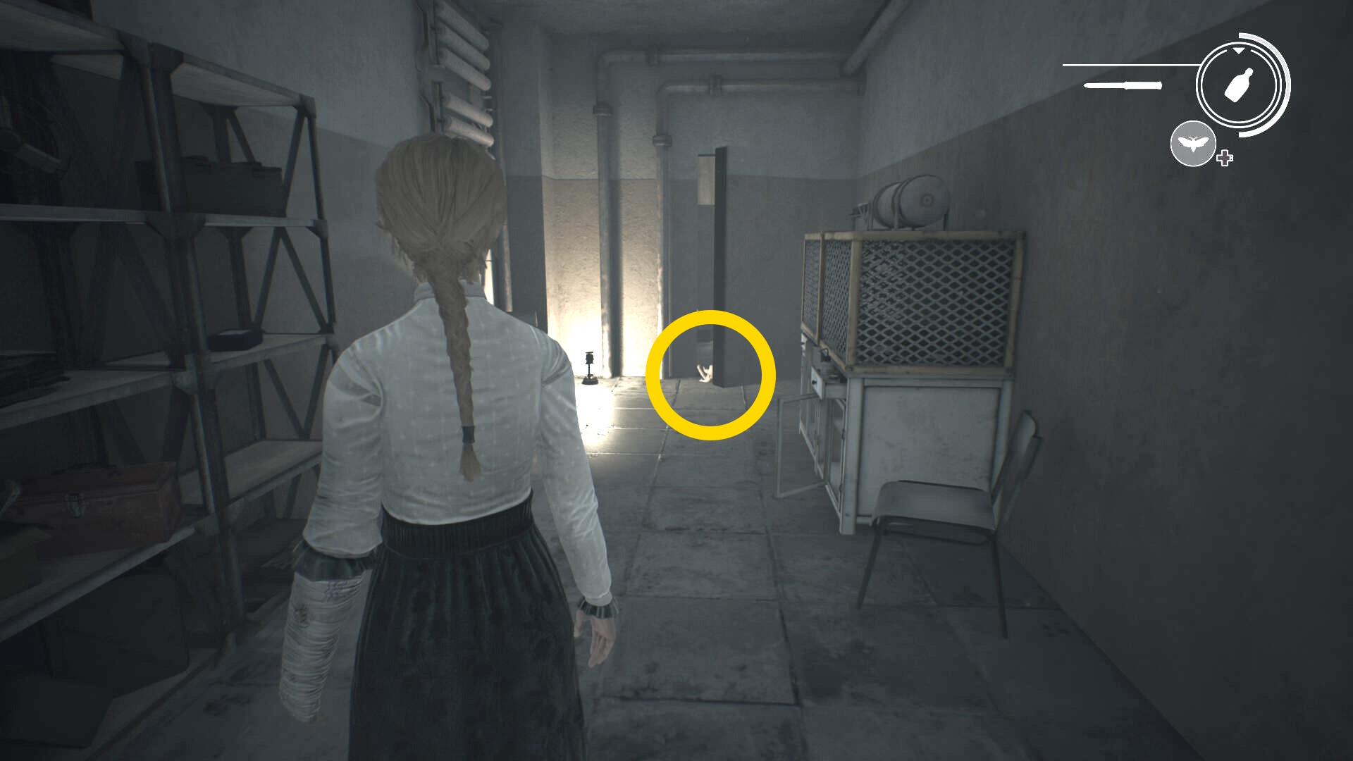 • 右に進むと隠し部屋のドアが開いており、その隙間にある人形を回収