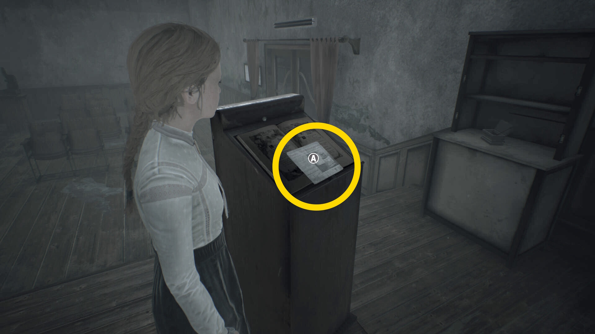 • 映写室のドアを開けると左前方の椅子の下に 危険な状況下のジェニファー (スノードーム:12/25)