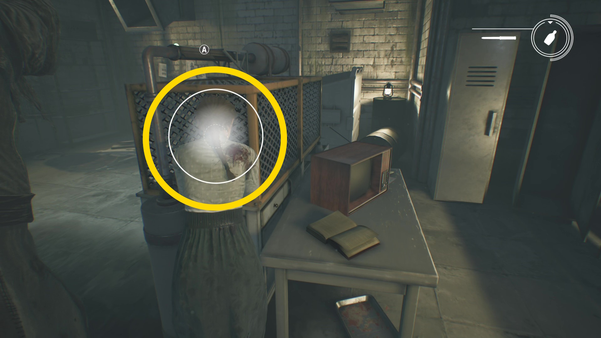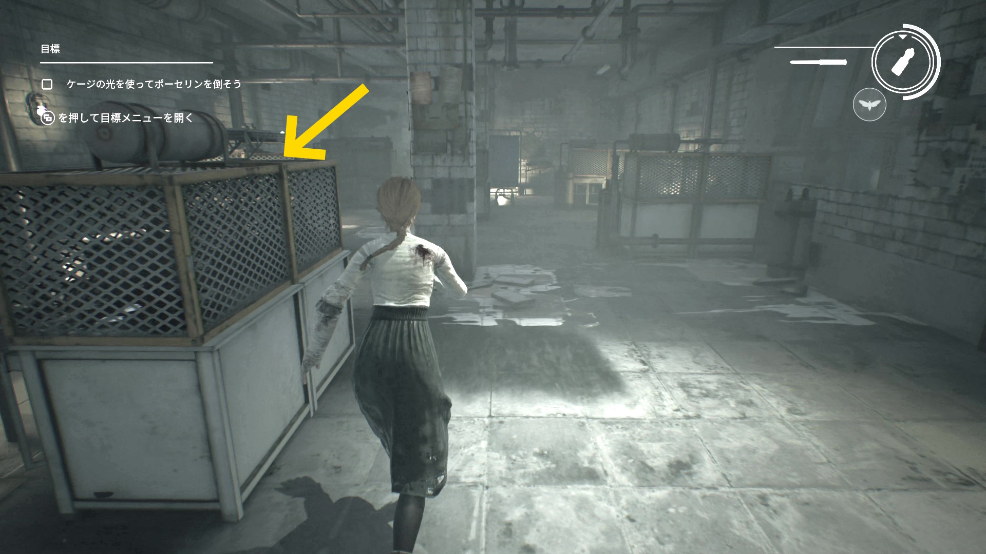 • ケージに誘導し、ポーセリンが来たところで A を押すと QTE 発生 ( QTE はネイルガンを回収するときと同じ内容 ⇒ 少し待って A ボタン)