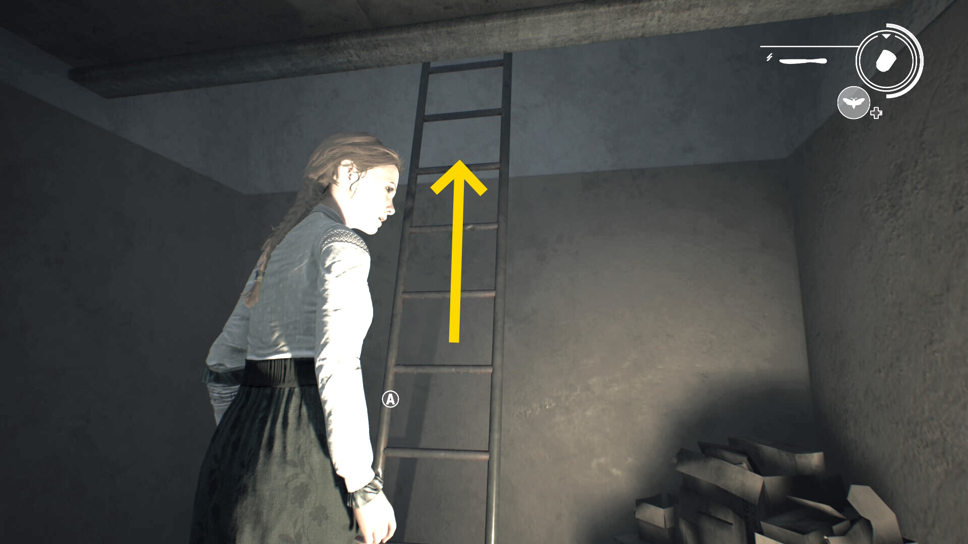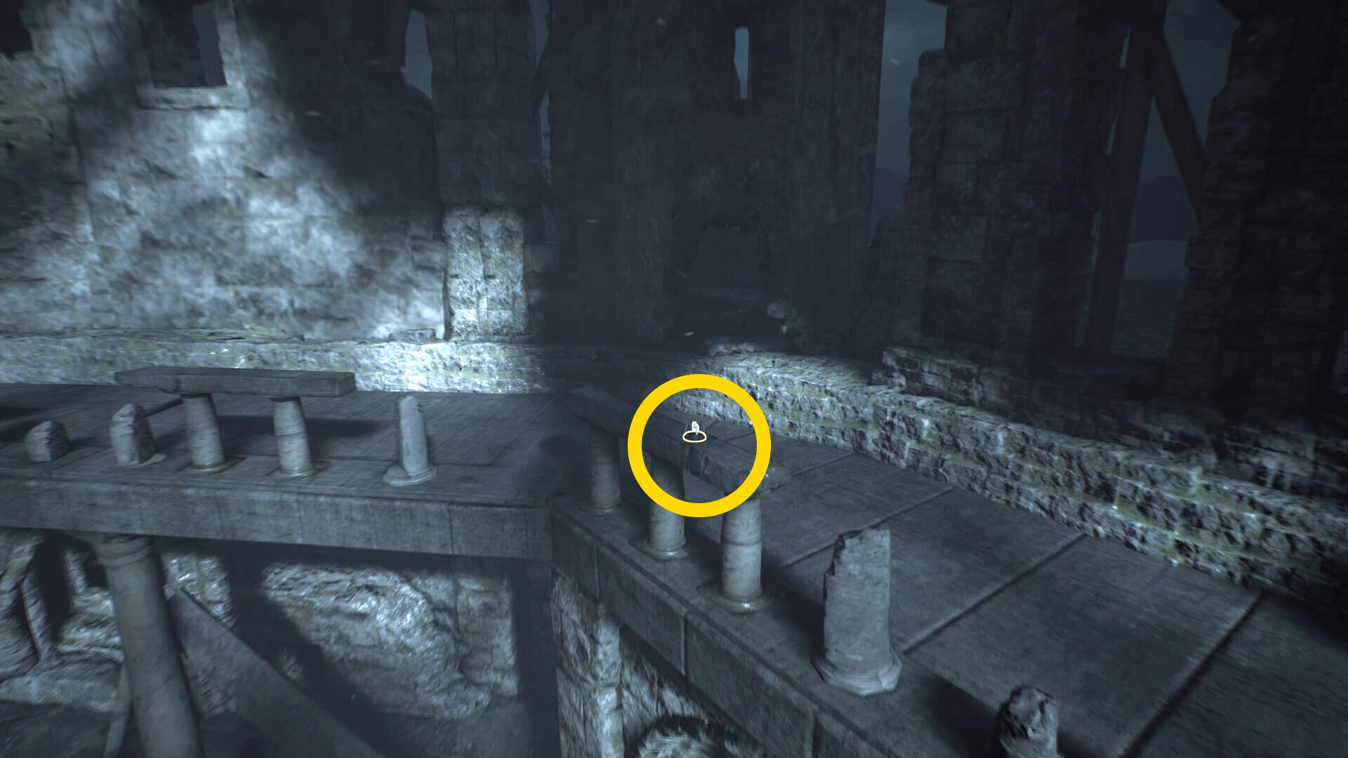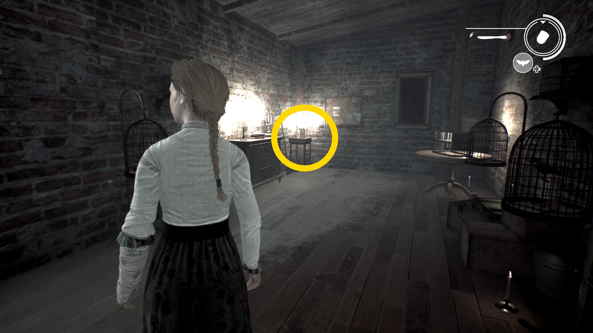 - リンがセレステを見失っている&レンガを3個回収したら、上階にいる赤い修道女に向かって蛾の目を発動
