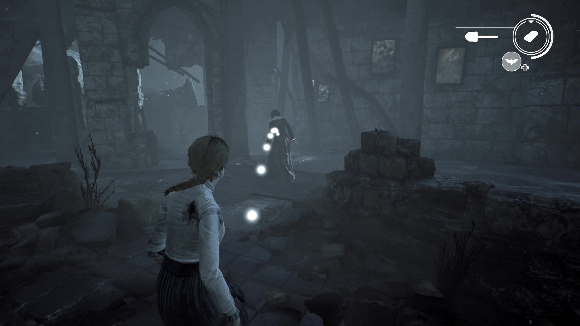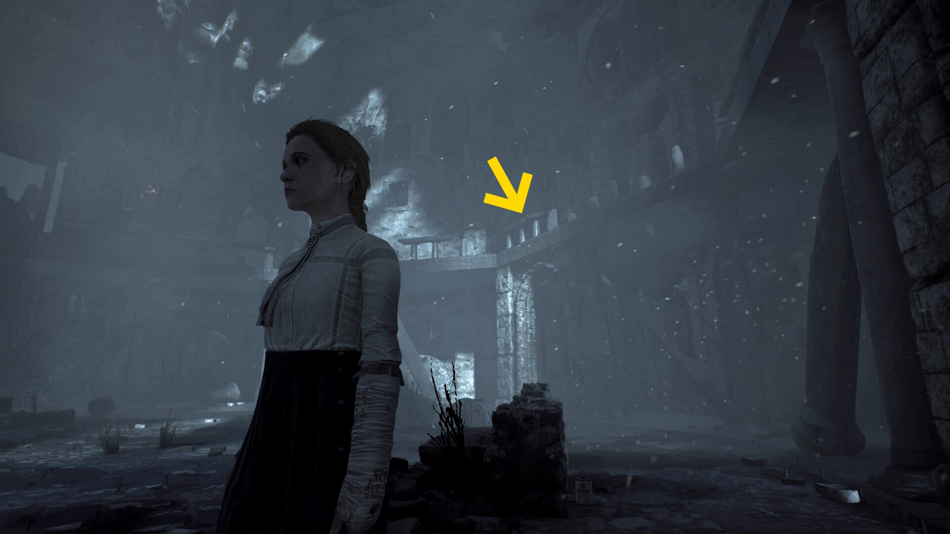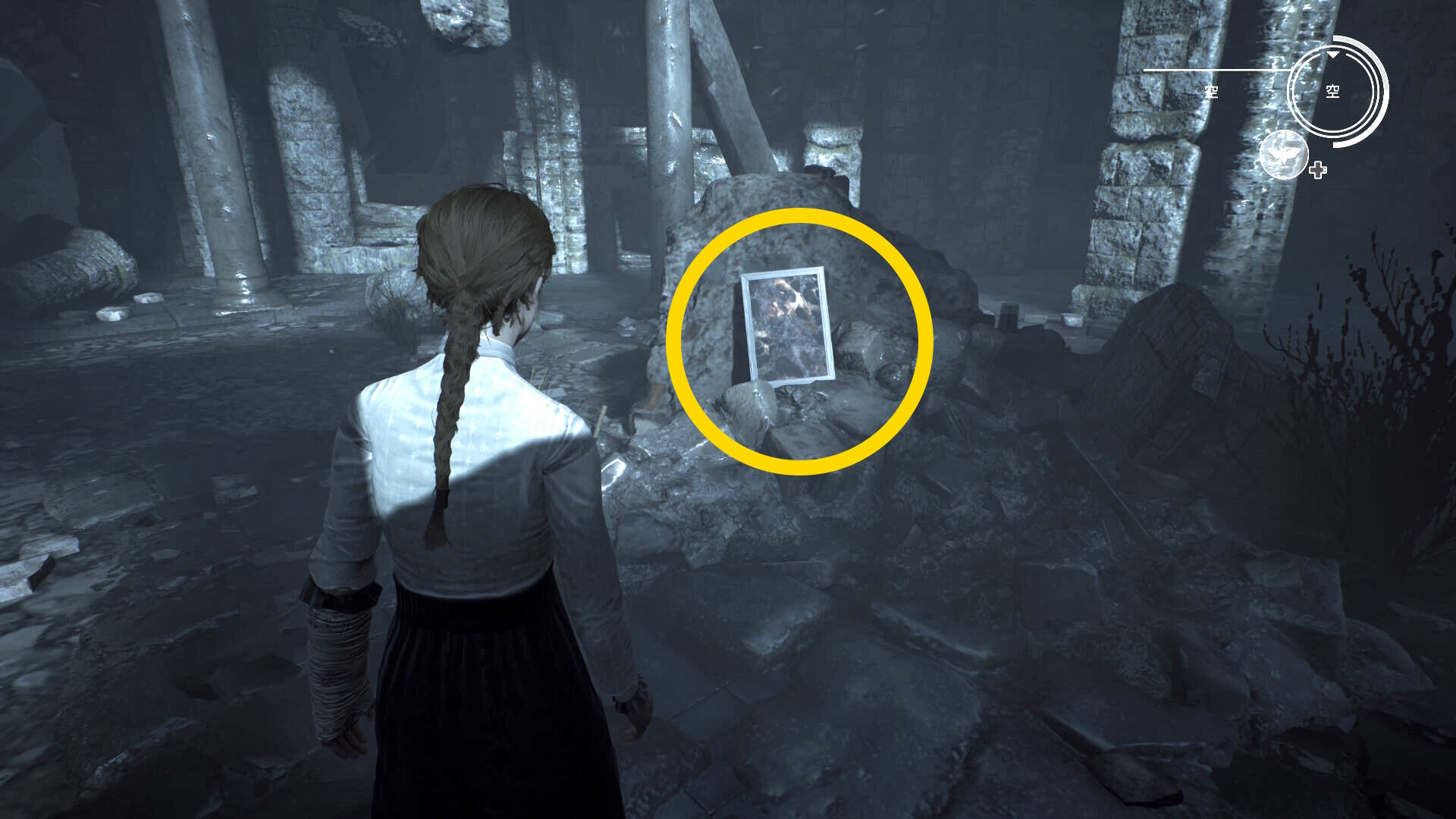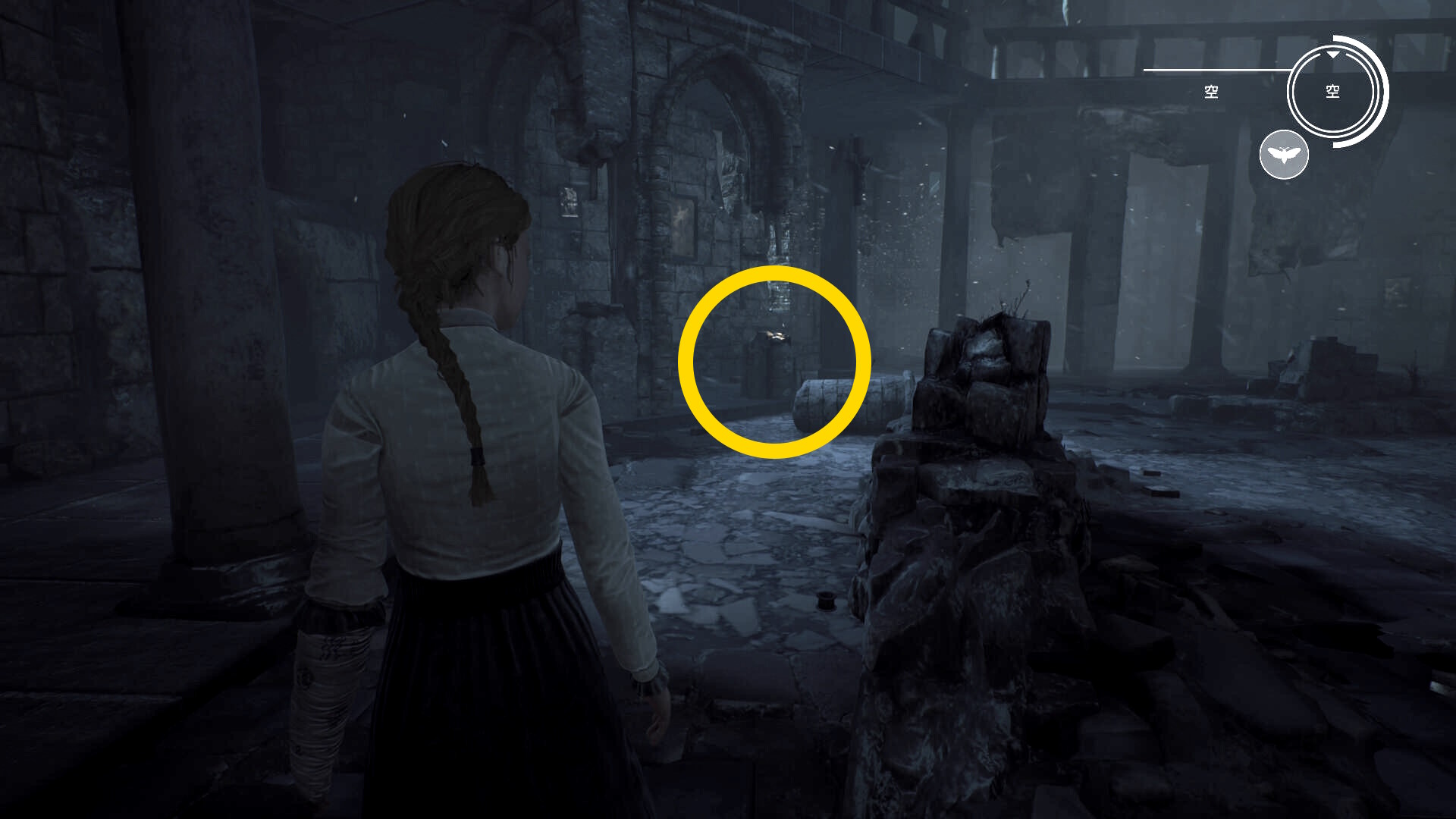 - リンがセレステを見失っている&レンガを3個回収したら、上階にいる赤い修道女に向かって蛾の目を発動