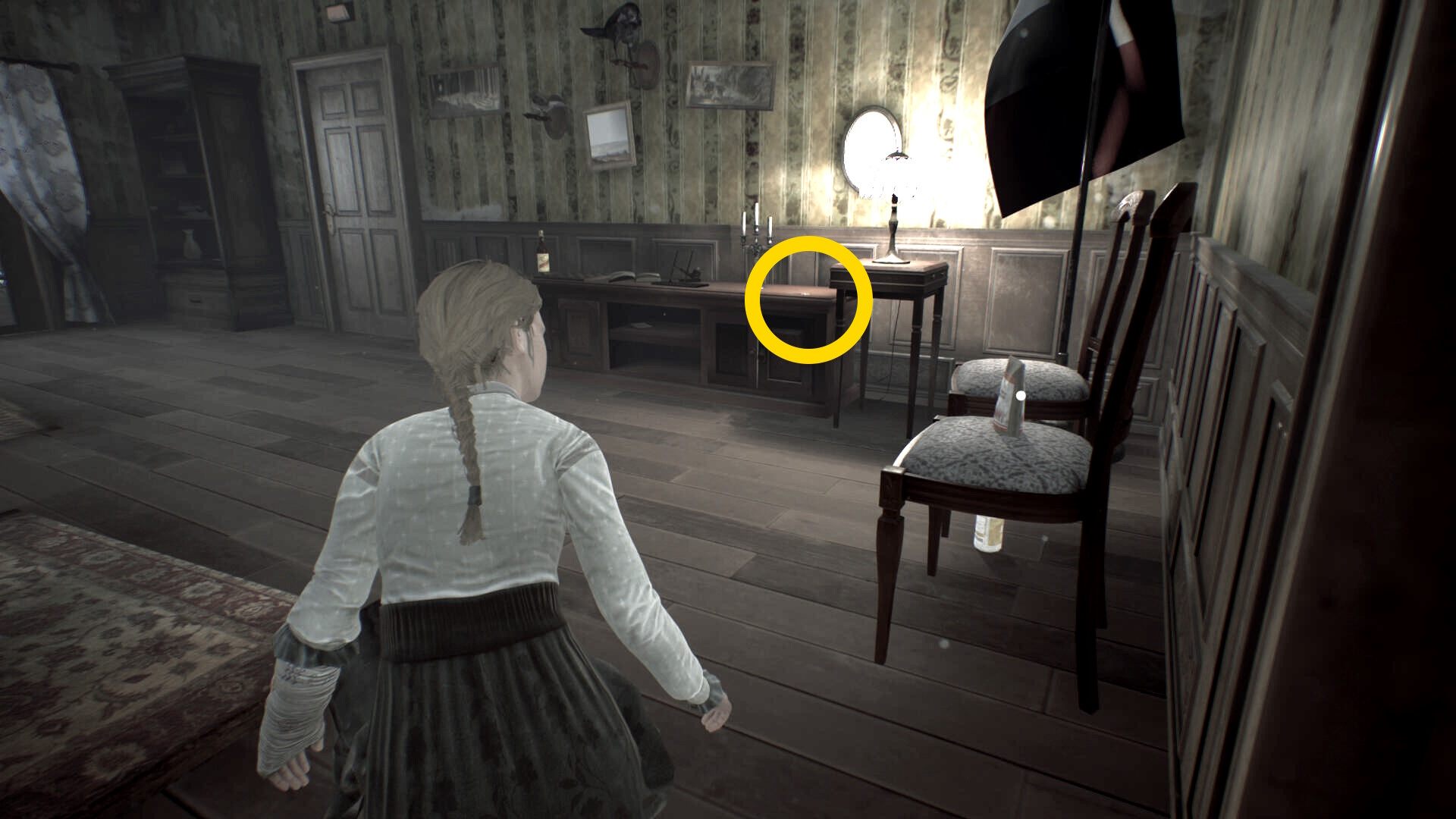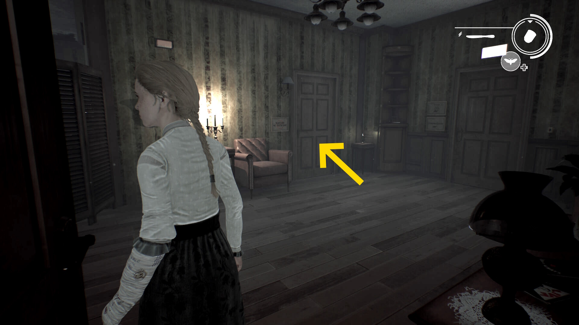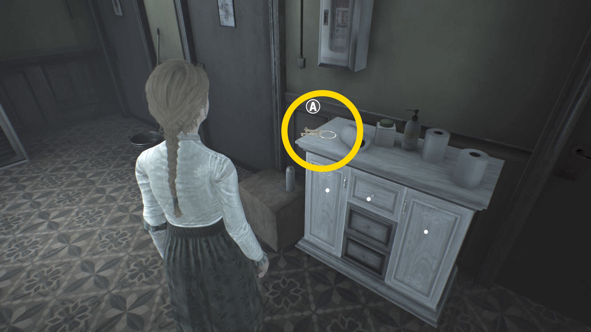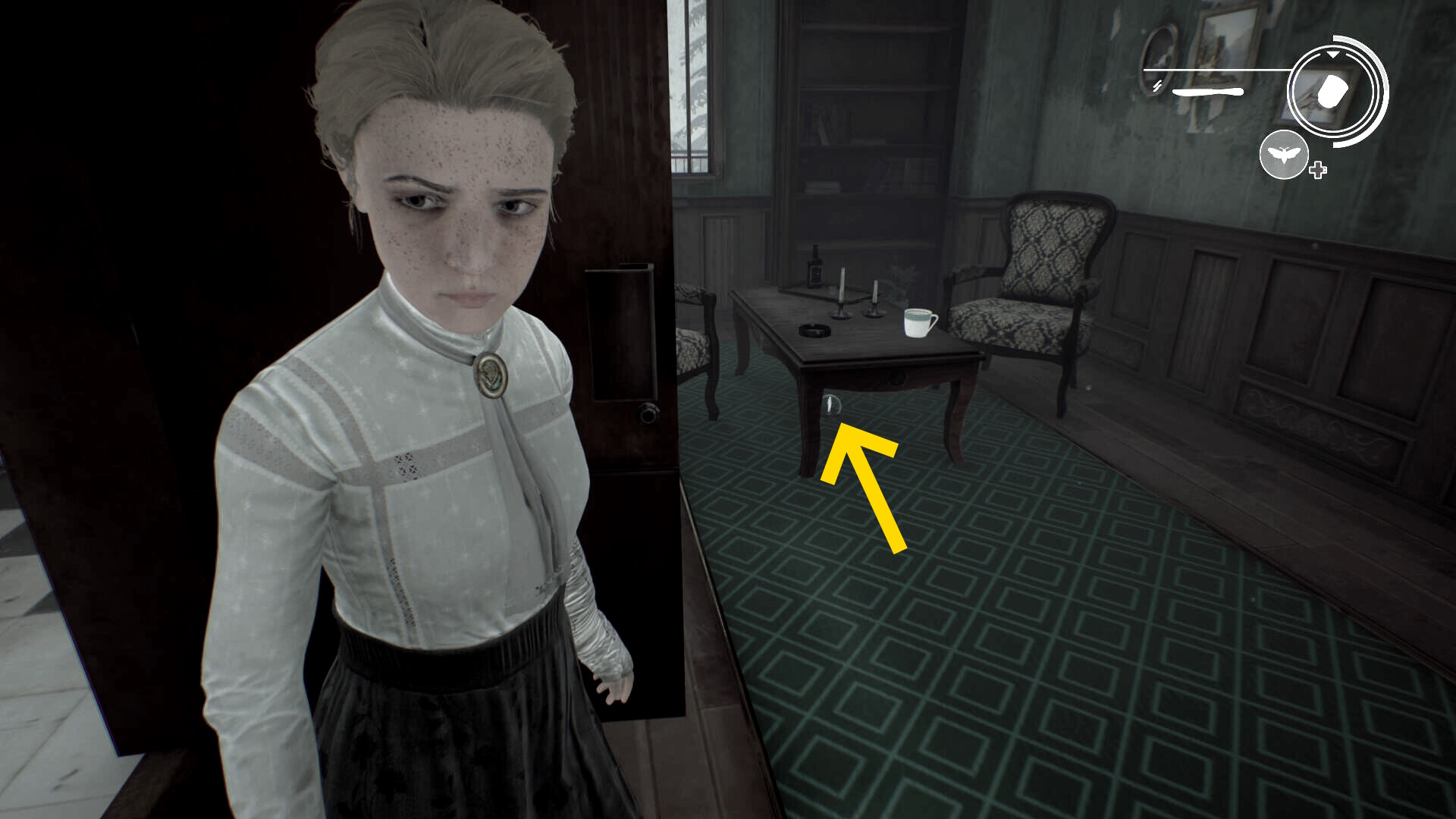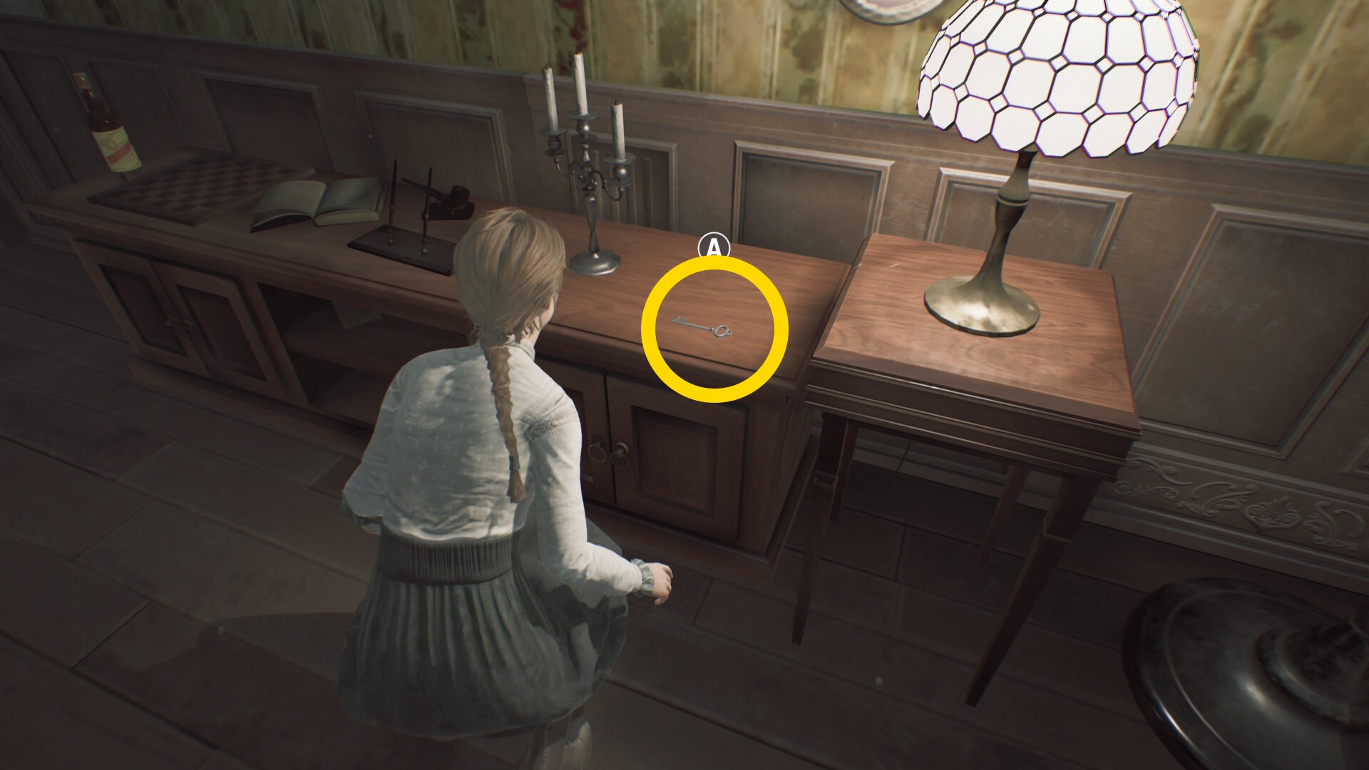 - すぐ右のローボードに 映画室の鍵 が置いてあるので回収し、速攻で211号室を出ればアンドレアに見つかることなく終えられる