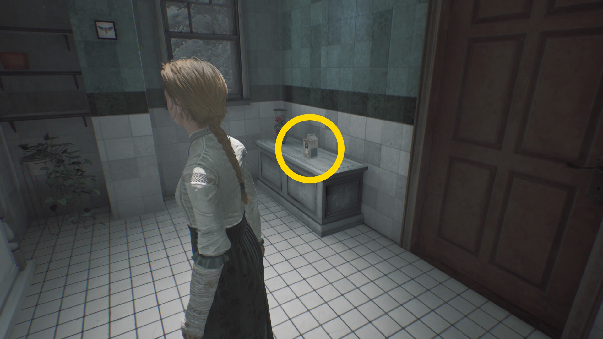 - まずはバスルームに入り、右のローボードに 行方不明 – アグネス・シルバーハット (牛乳パック:13/15)
