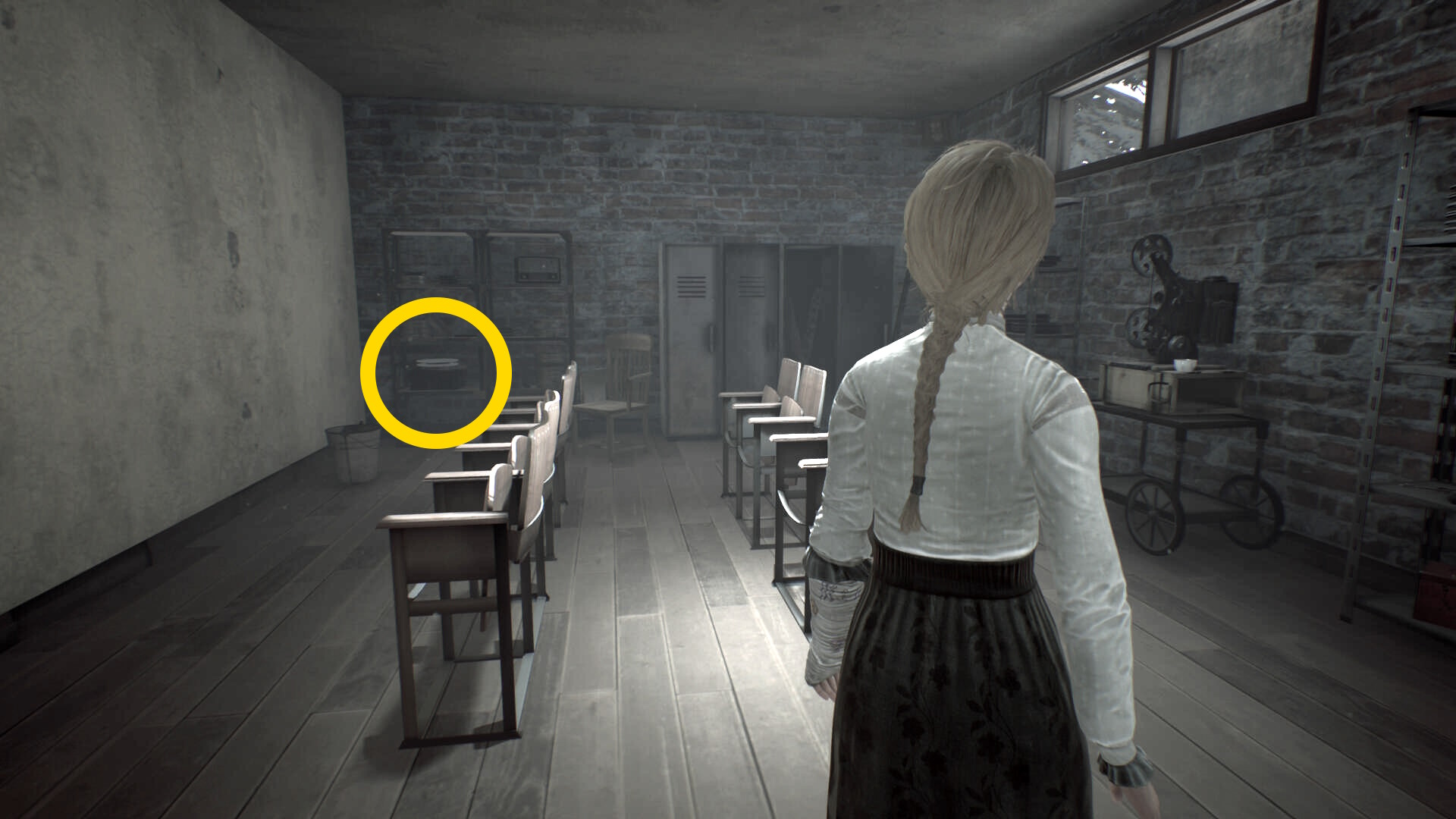 - 映写室に入るが、壇上の右隅のロッカーにポーセリンが隠れていること多し (下画像2枚目)