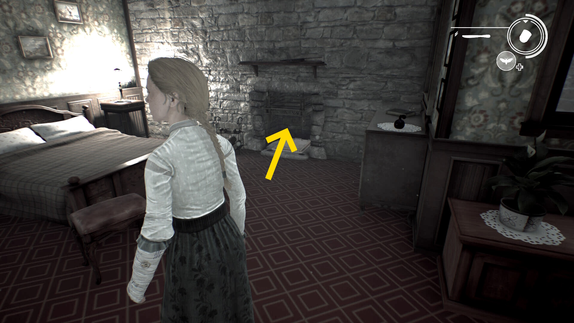 - 212号室に着いたら、暖炉の隠しハシゴで地下の隠し部屋に戻る