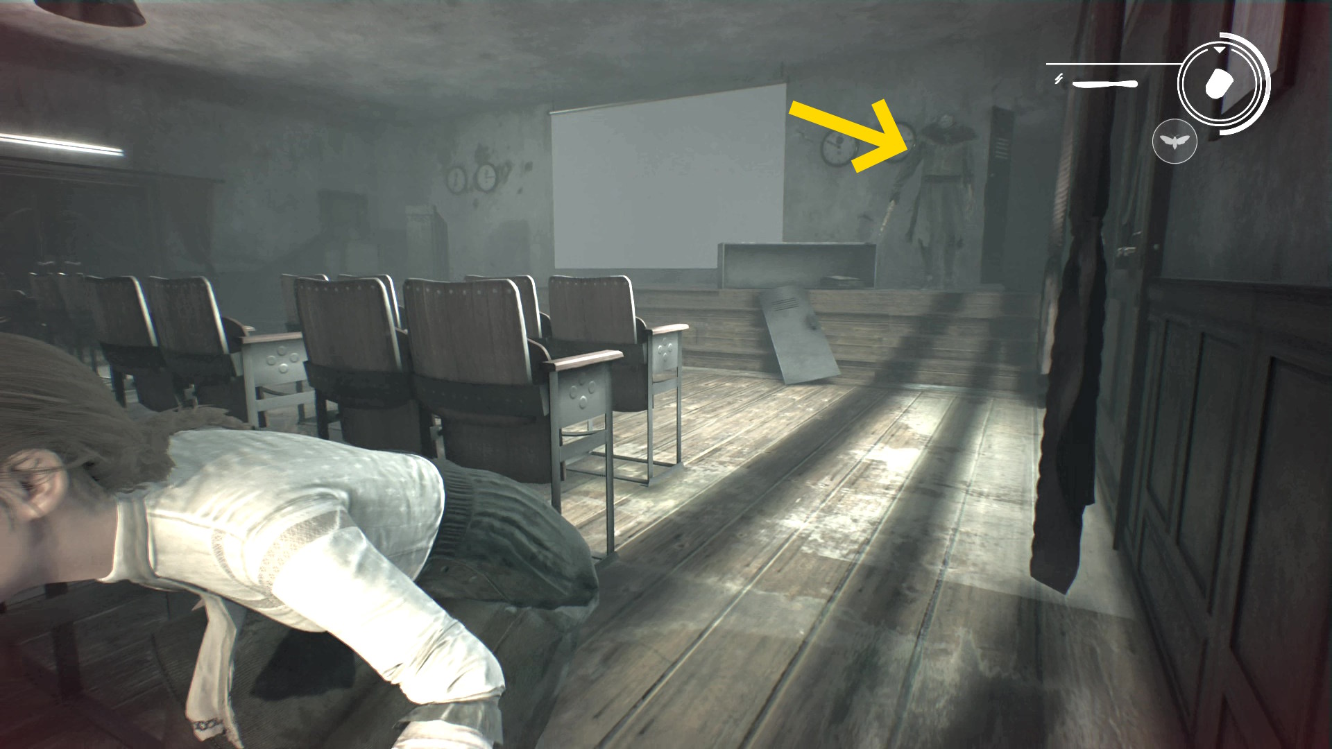 - そのときは映写室から逃げ、隠し部屋 ⇒ 廊下をぐるっと進んで映写室 と移動すれば少し時間が稼げる