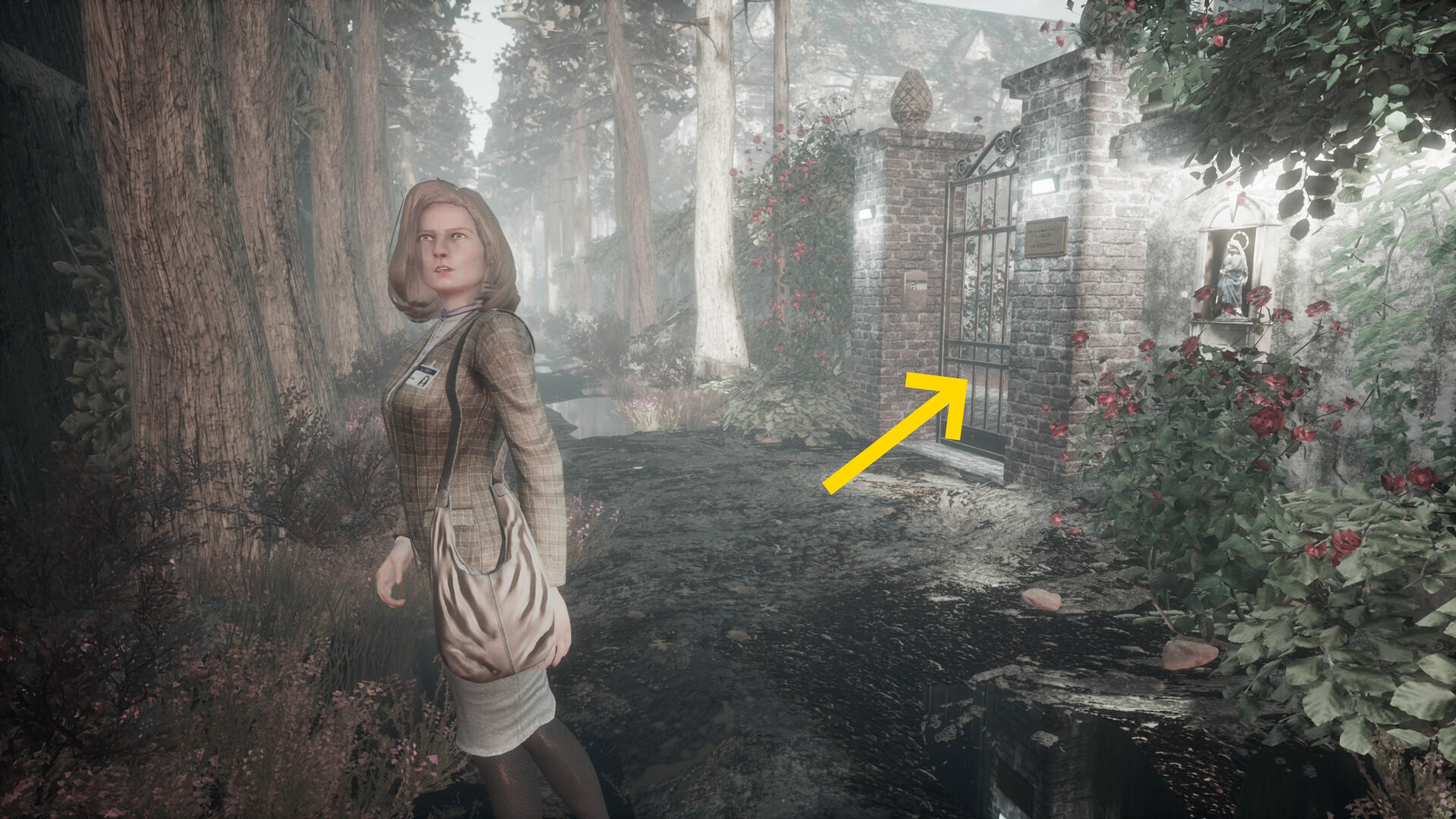 - めぼしいものは何もないので左前方奥に進み、バラのトンネルをくぐっていく
