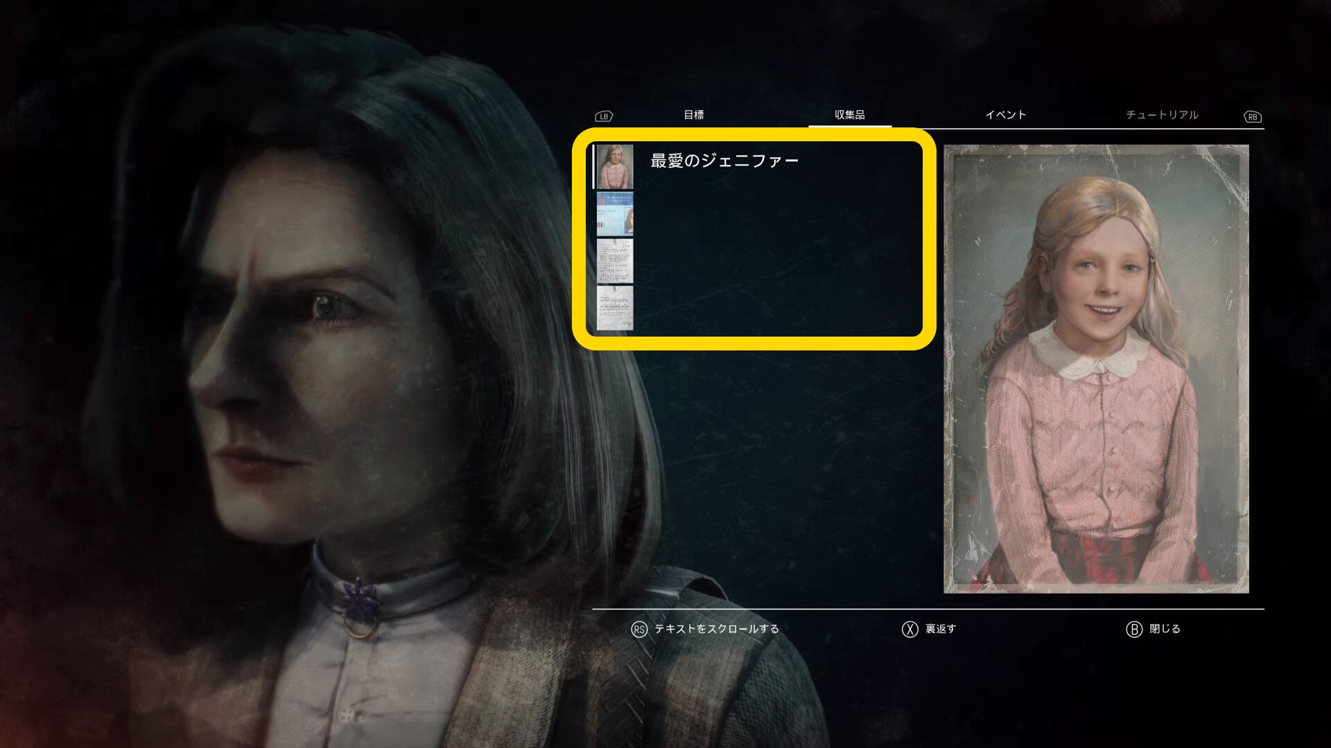 - セレクトボタン ⇒ RB を1回押して「収集品タブ」