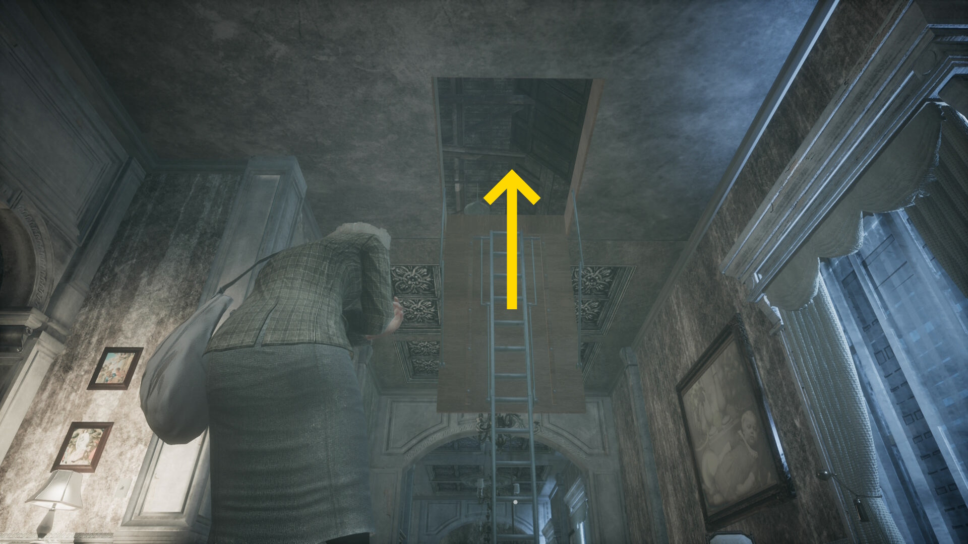屋根裏に向かう – 少女の後を追う