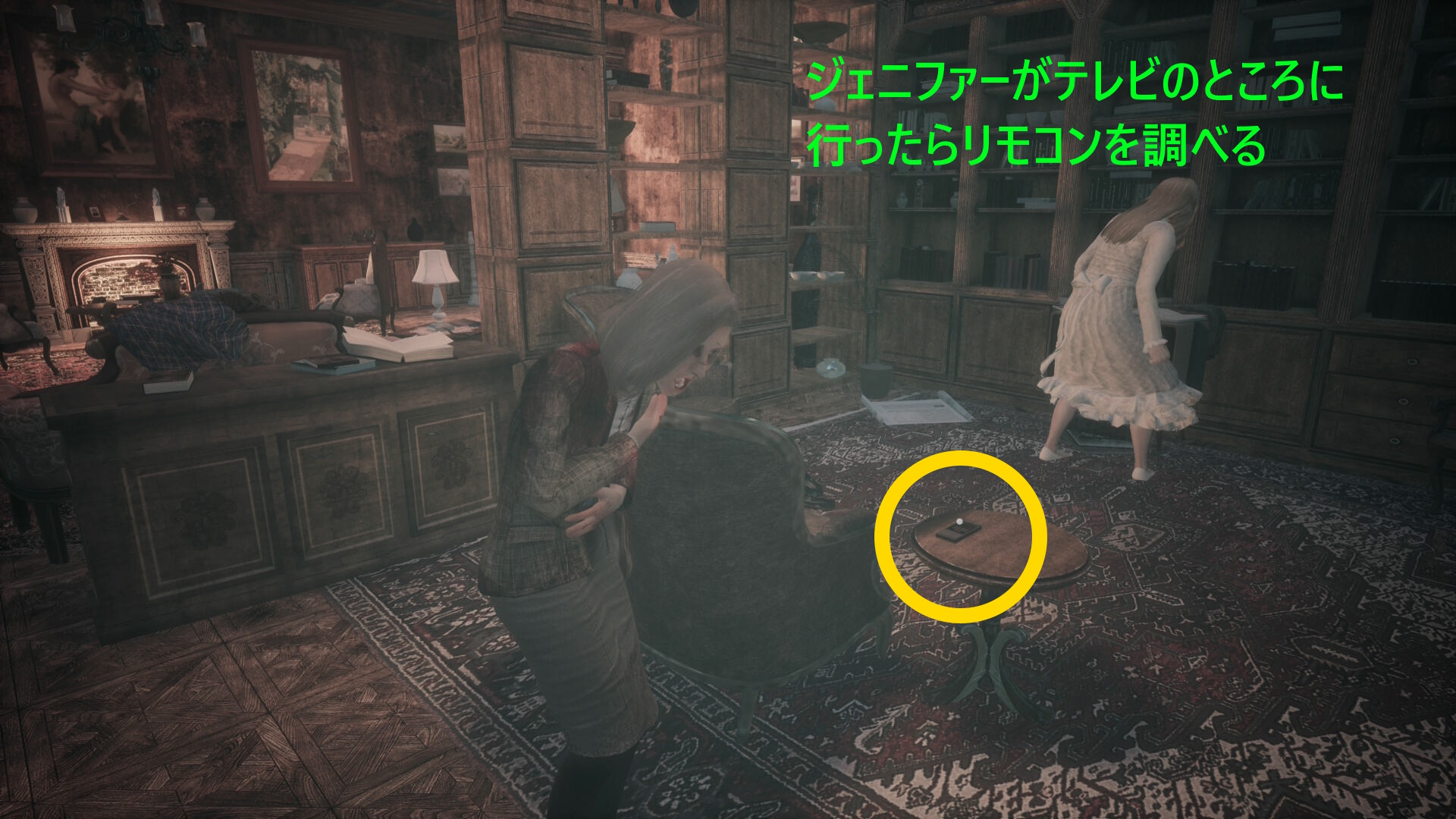 - わりと長い間このエリアにいるので焦らず待つしかない (なお、ジェニファーが部屋から出てくるときと出てこないときがある)