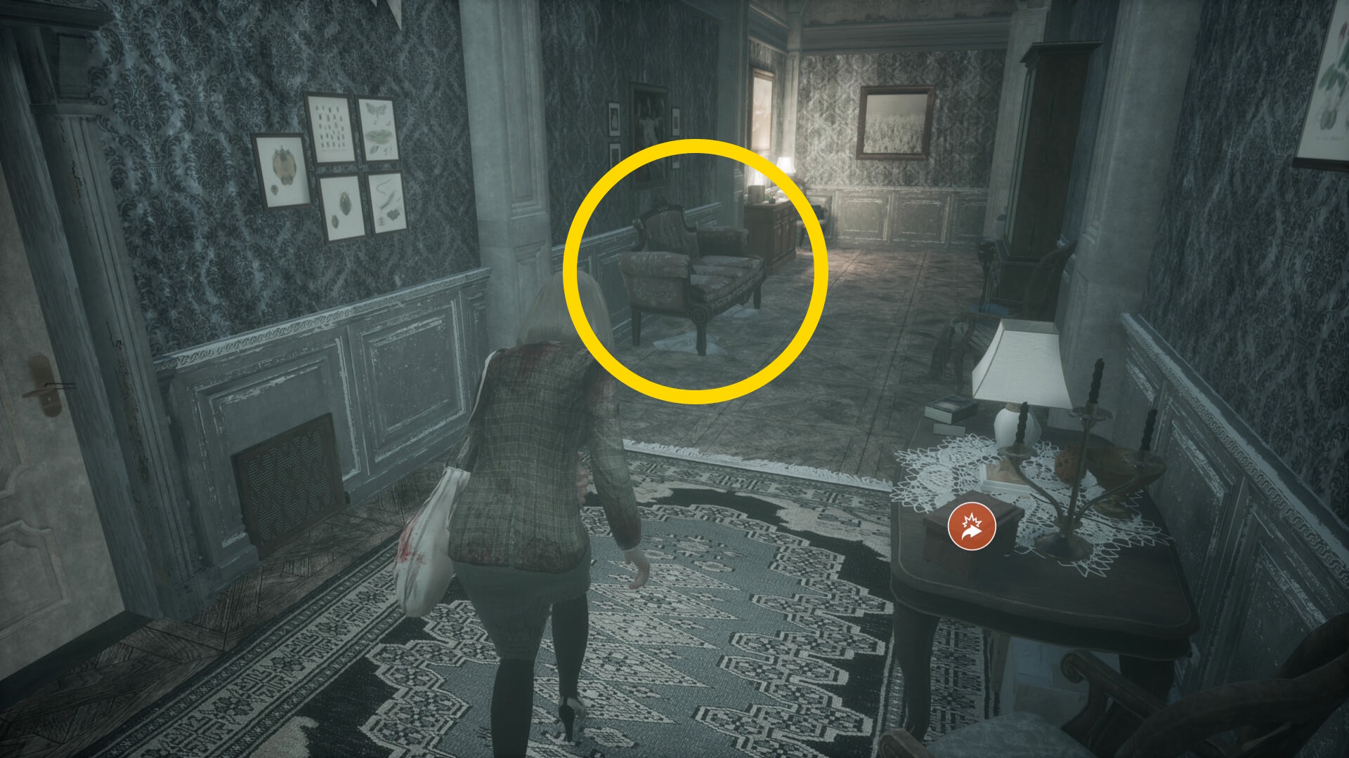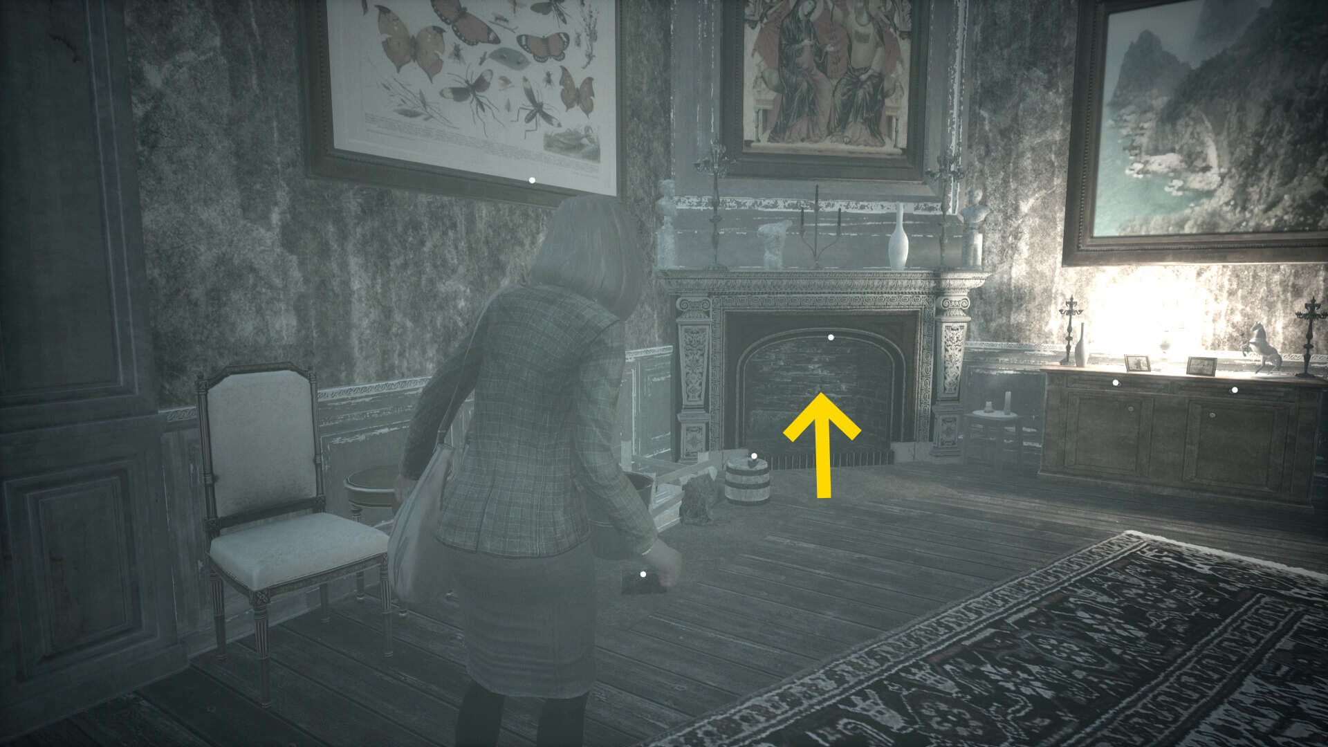 - これを調べると短いカットシーンとなり、その後もう一度暖炉を調べて隠された廊下へ