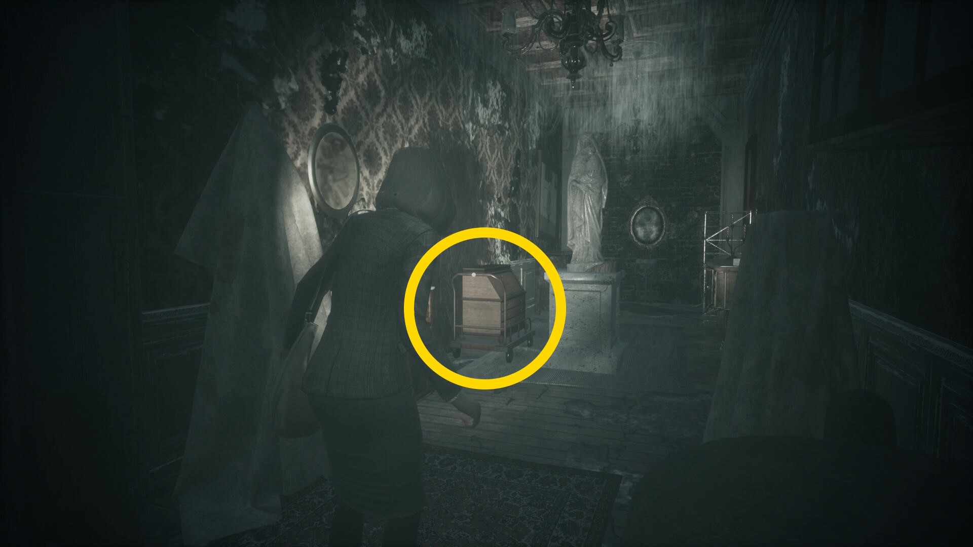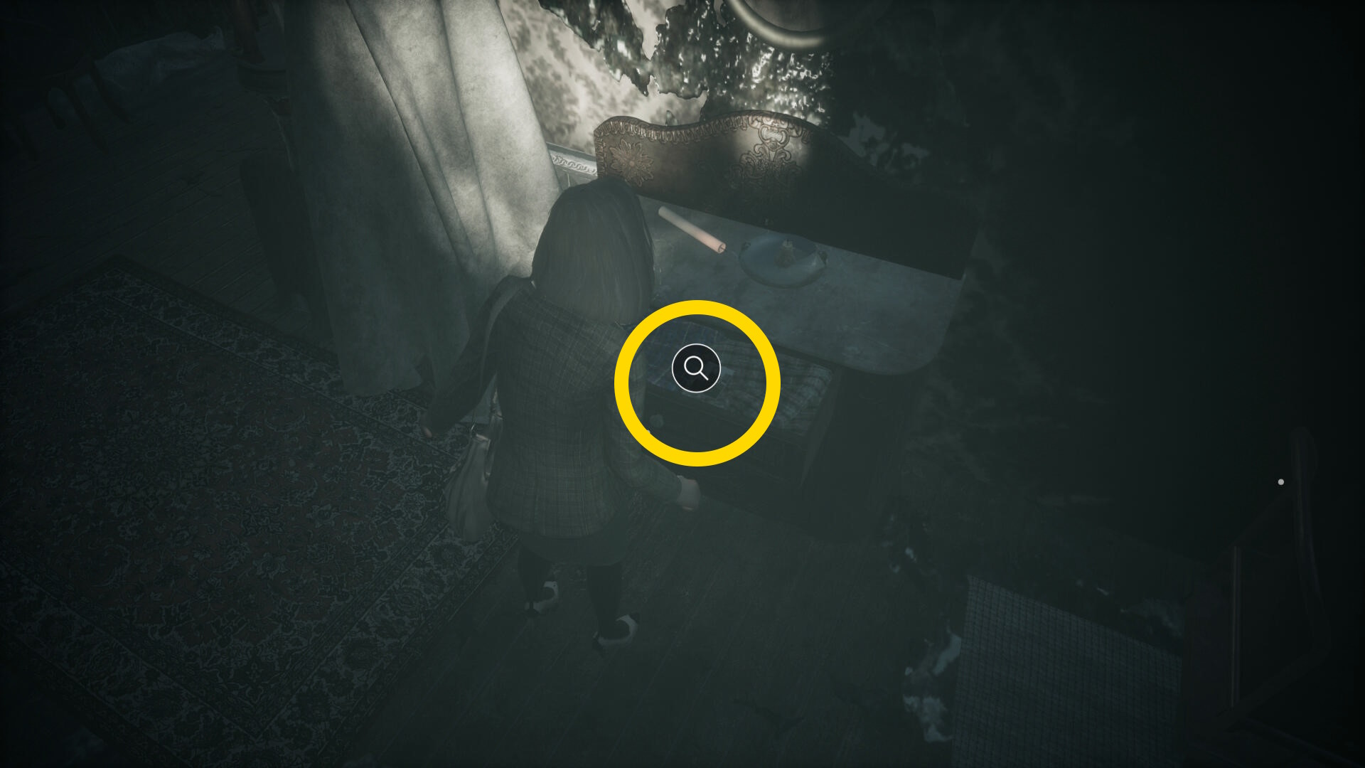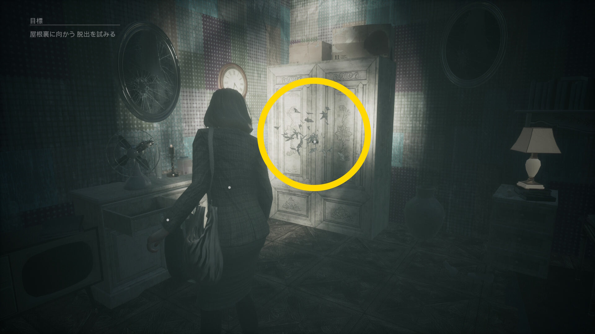 - クローゼットを調べるとカットシーン (蛾が群がらないと調べることができない)