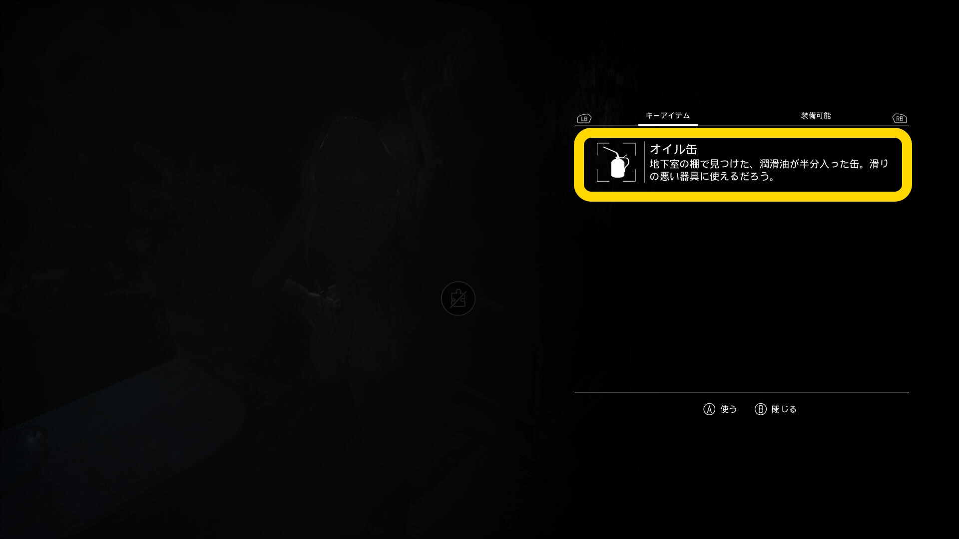 - 一度調べ、動かないことを確認したら、インベントリを開き「オイル缶」を使う