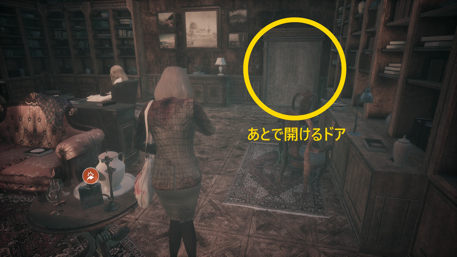 - 2階に着いたら、フェルトンの書斎の前を通過して奥へ