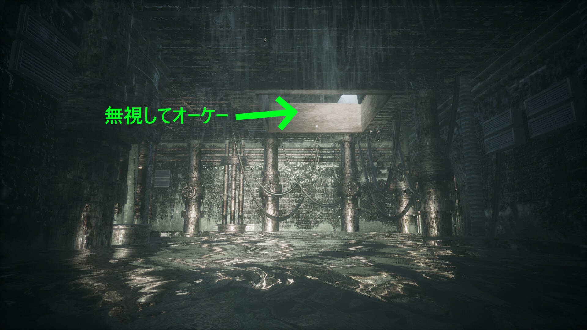 - ドアが開いたら急いで向こう側 (地下室)に進めばロード画面になって脅威が消え去る