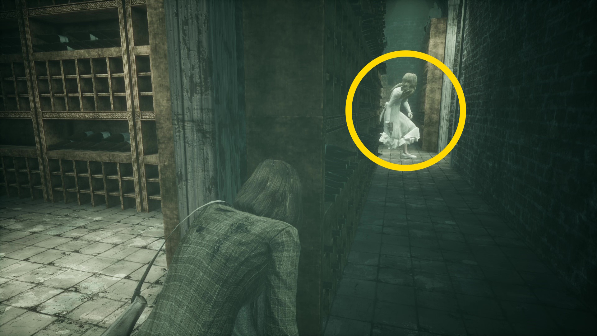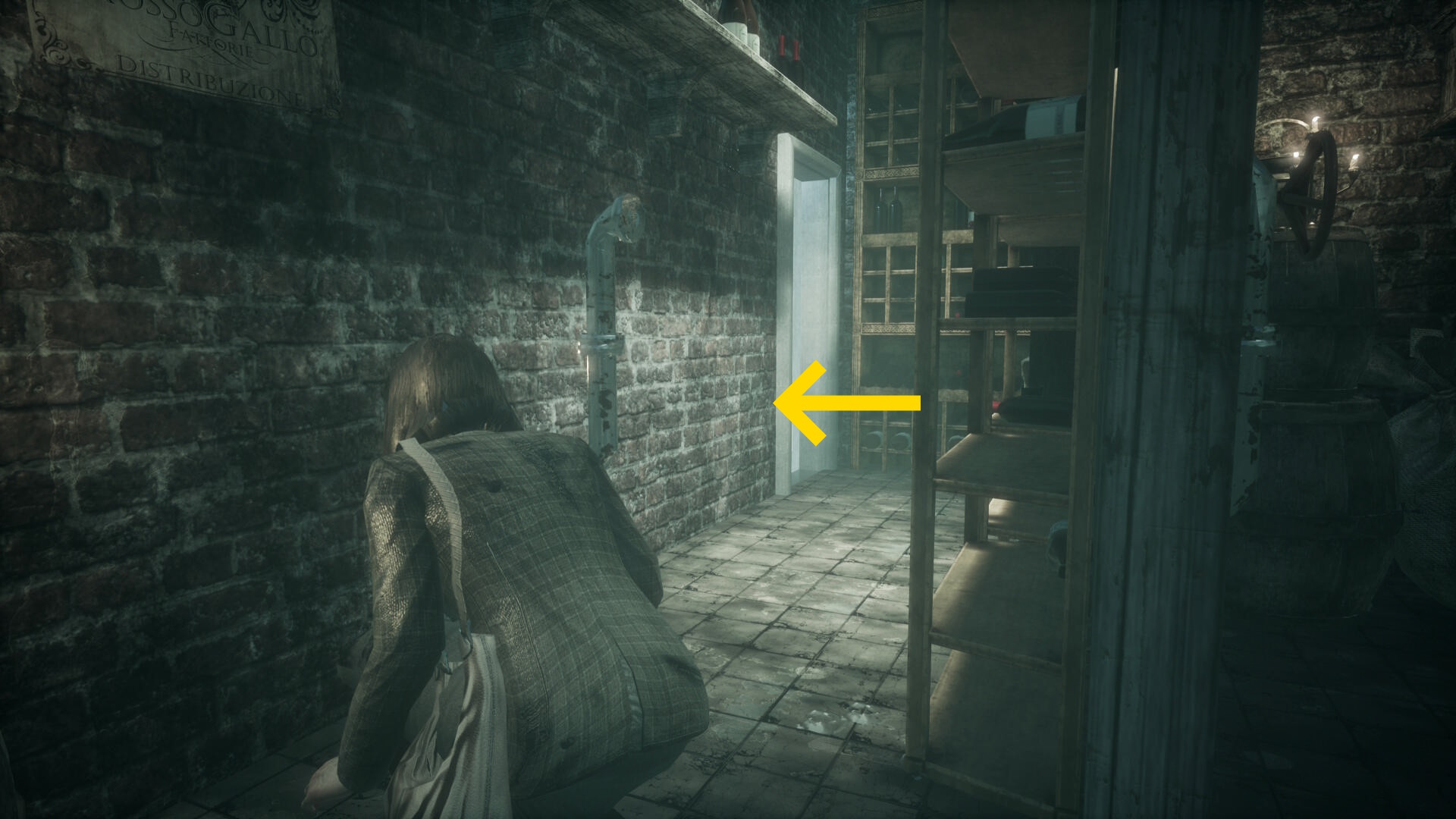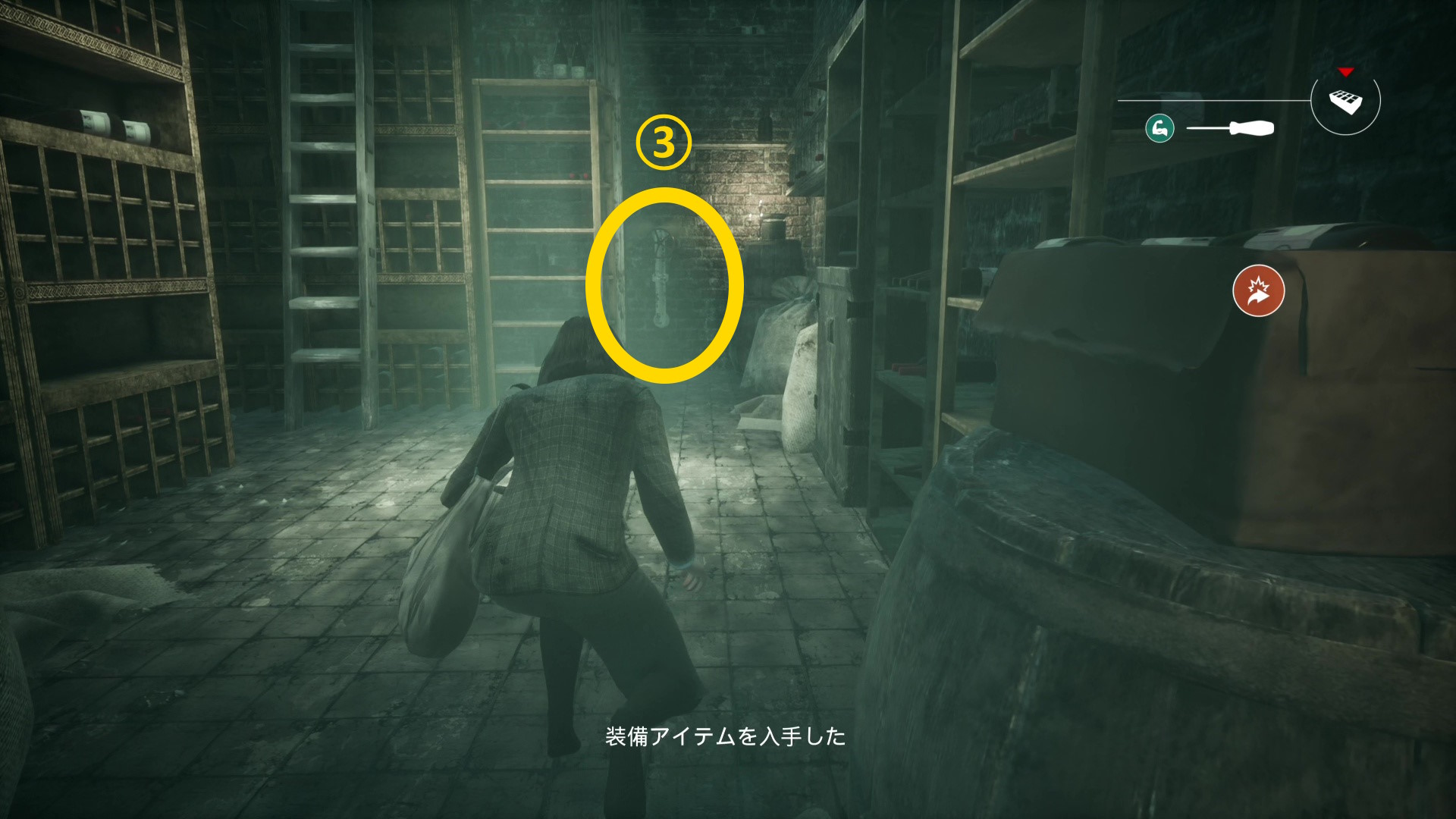 - ワインセラーから出たら、ダッシュで狭い通路を進む (歩き or しゃがみ移動してもジェニファーが追いかけてくるのがデフォルト)
