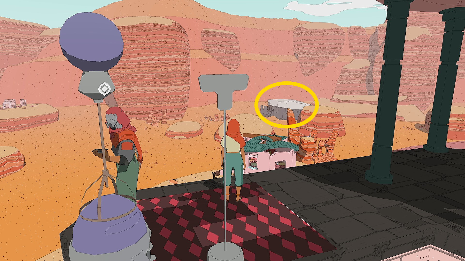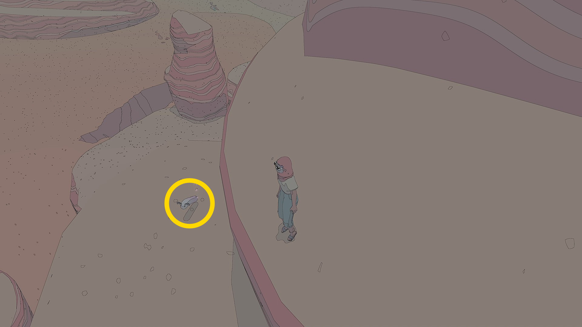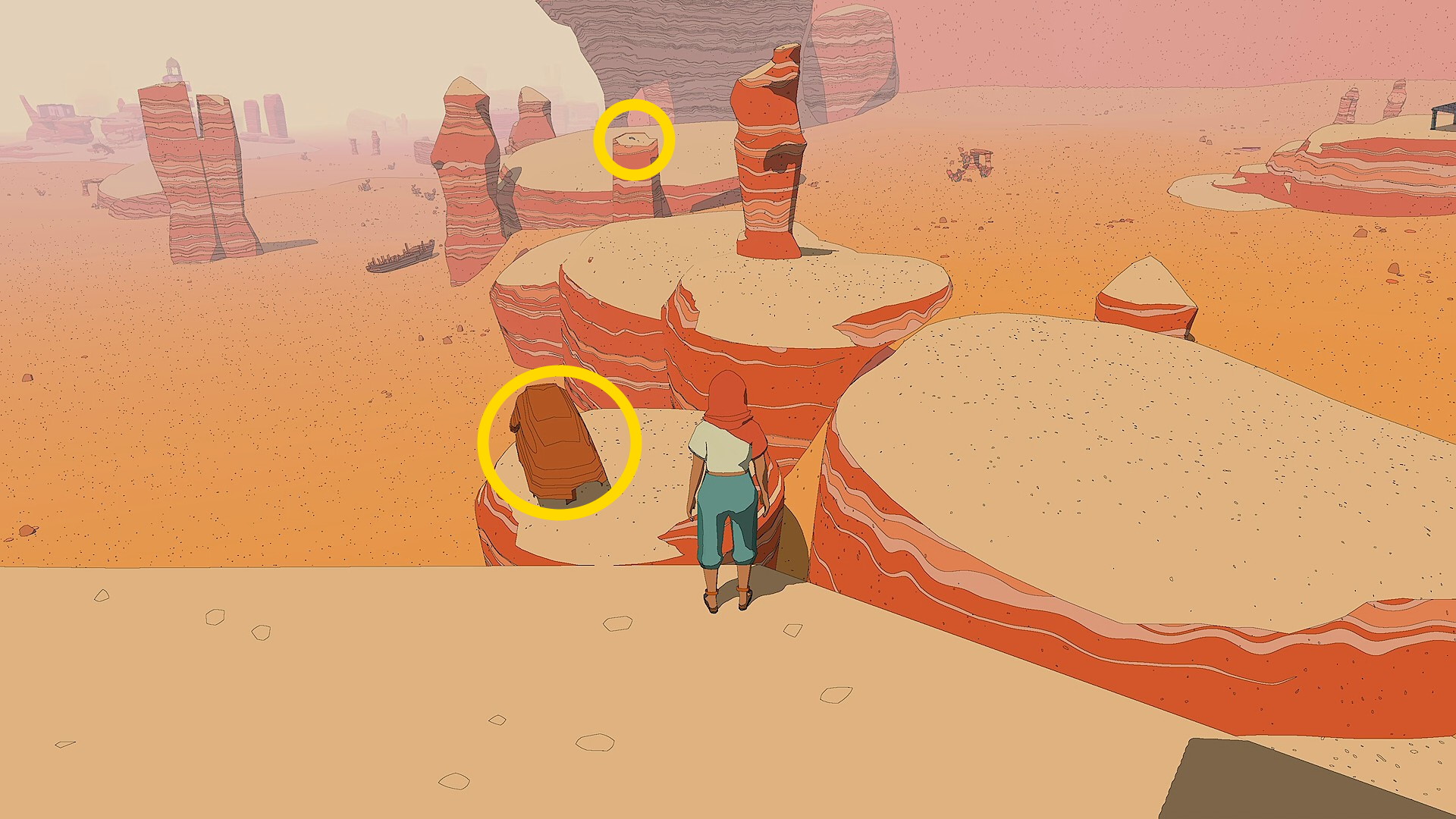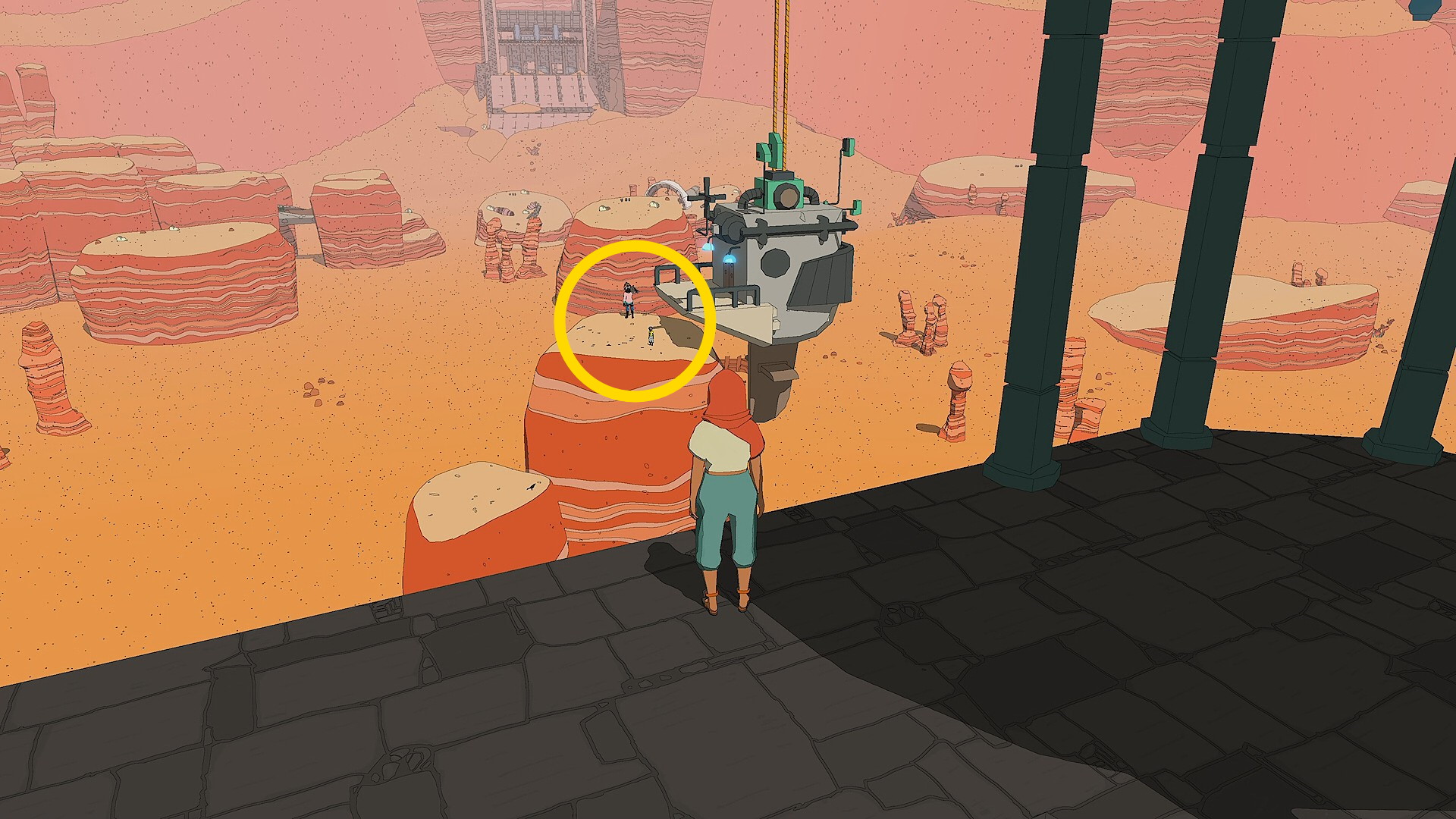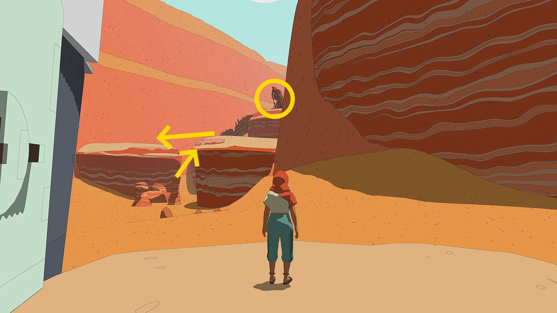- 基地から出たら左を見ると岩山の上に壊れた船が立っているのが見える
