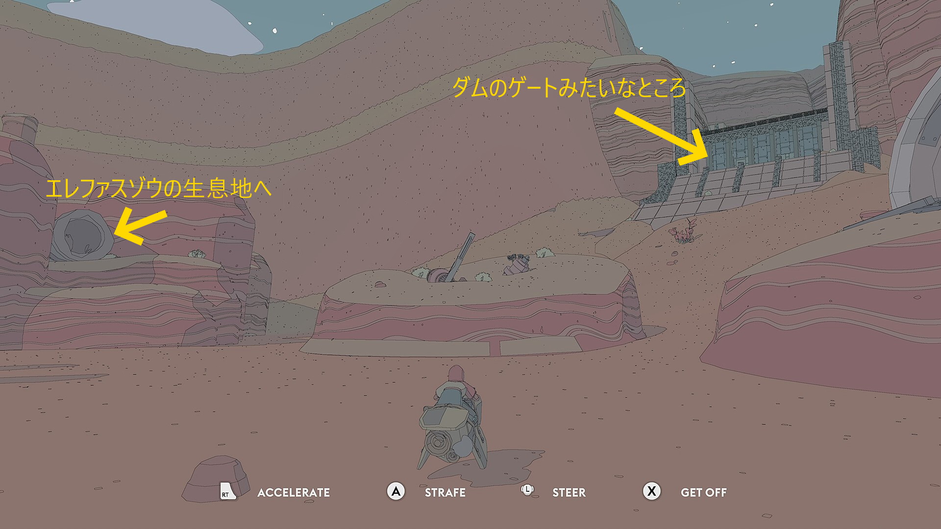 - カットシーン後、Y でバイクを呼ぶことができるようになる