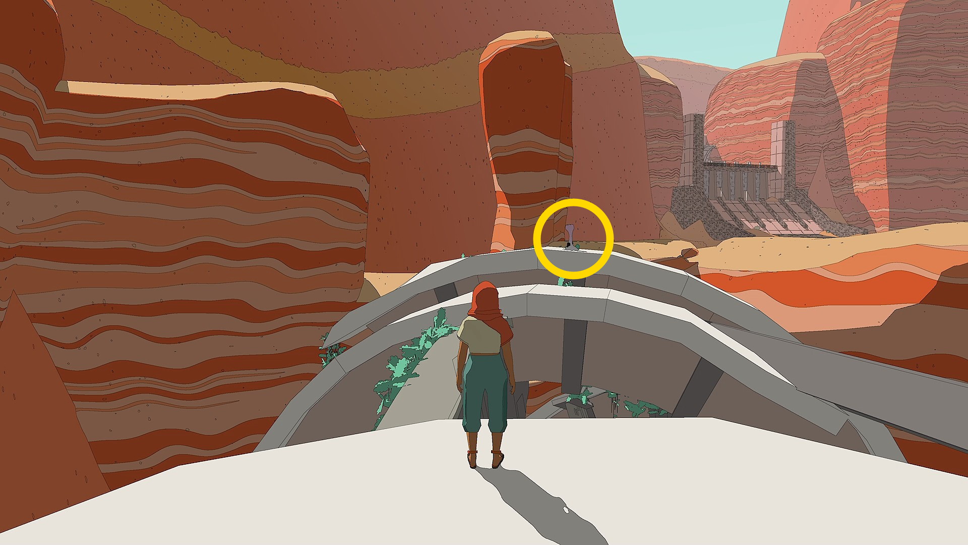 - ダムのようなゲートを出たら、左前方に半円のゲートが設置された高台がある