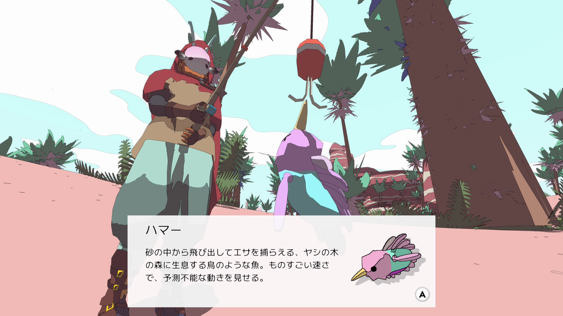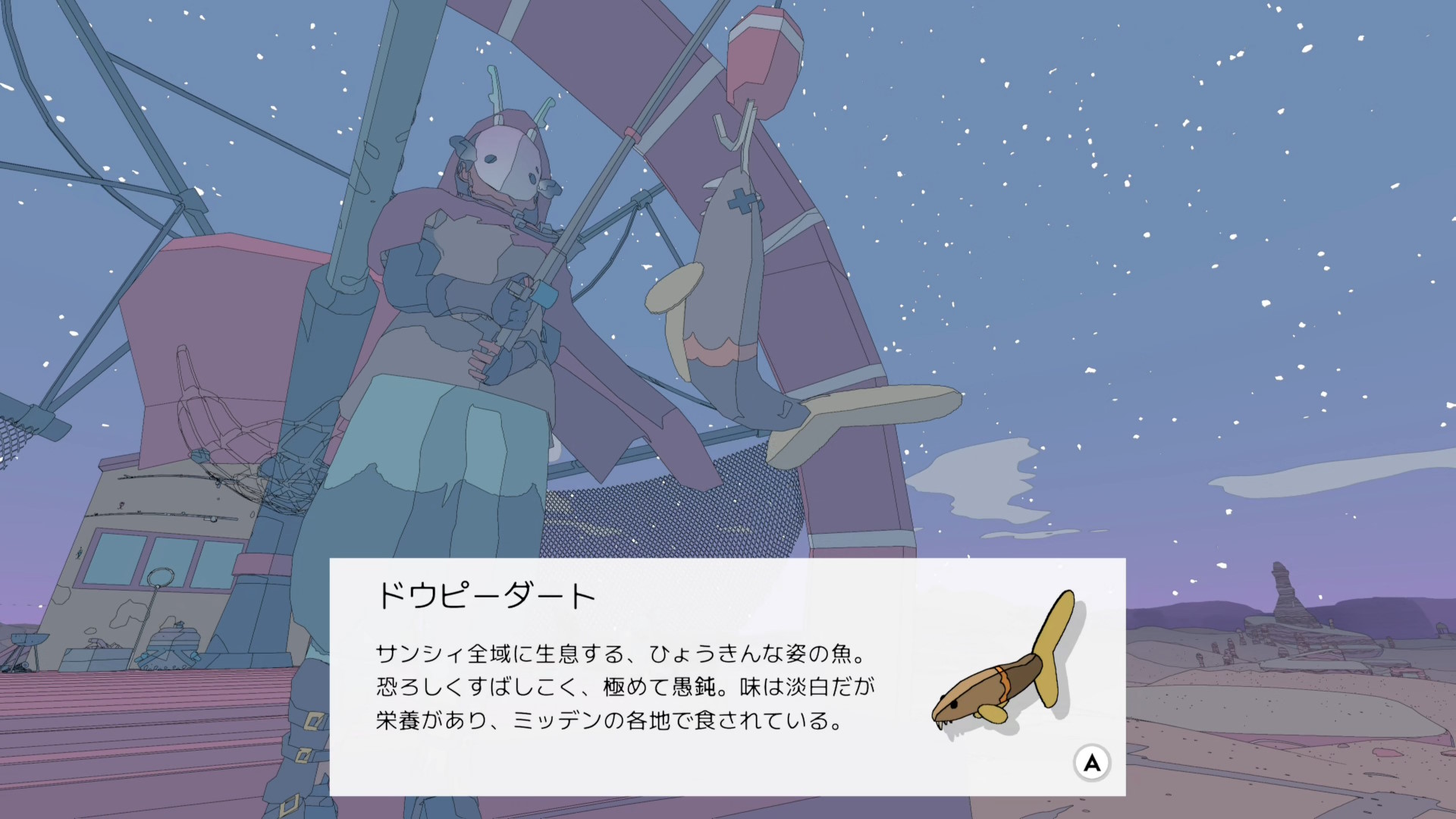 • 釣り人ヨシからは、まず3種類の魚を釣ってくるよう言われるのでサンシィを回ってくることになる(ベロウグッピーは捕獲済み)
