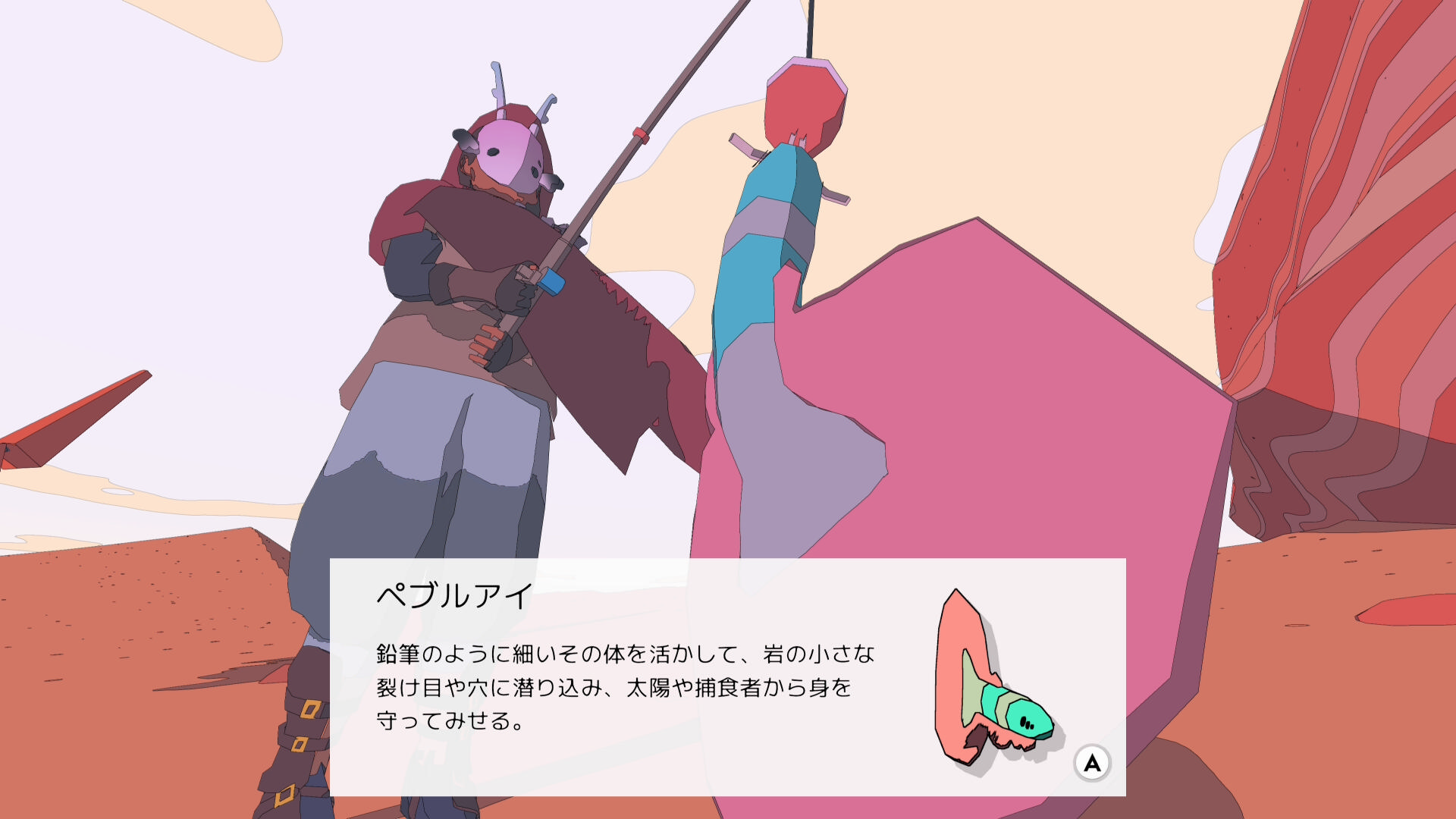 • 大きな岩山と小さな岩があり、小さな岩の日陰部分に仕掛けを投げる ペブルアイ(魚:3/17)が釣れやすい