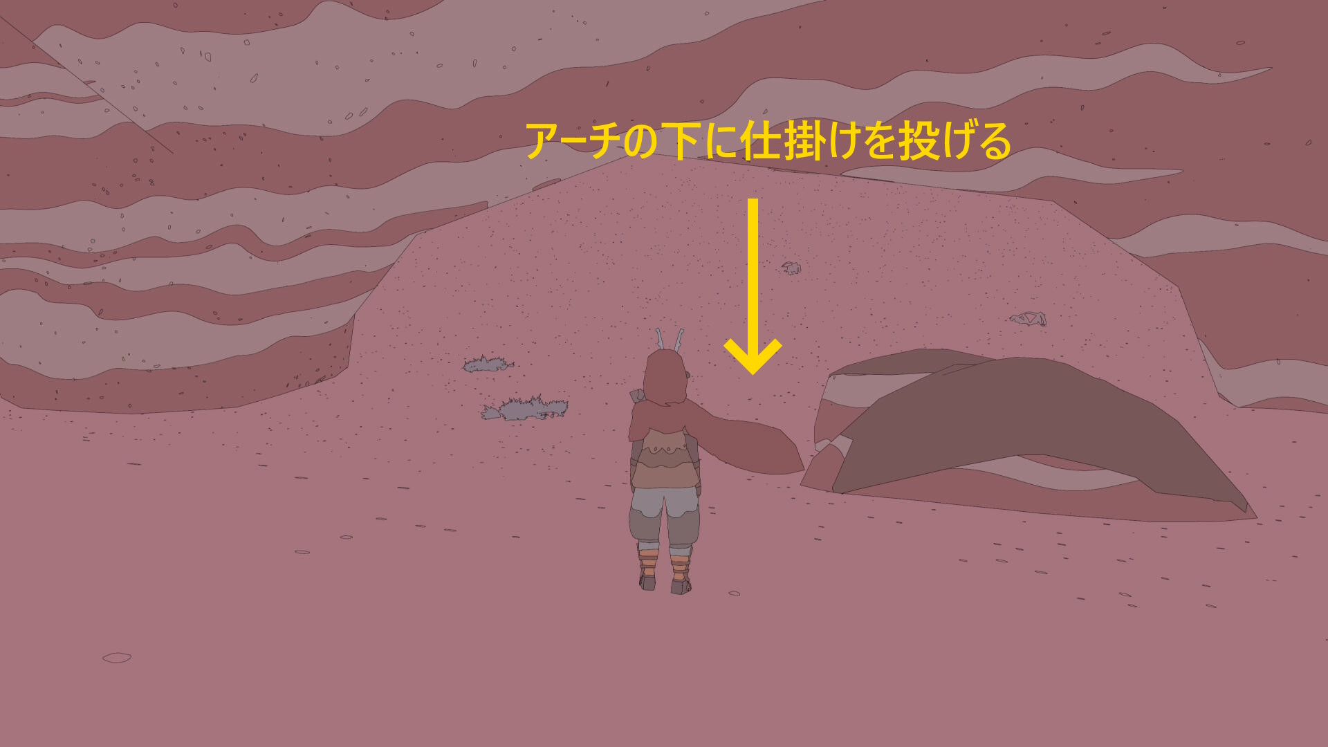 • ちょうどアーチ状の岩があり、アーチの下に仕掛けを投げると スイツキウオ(魚:12/17)が釣れやすい