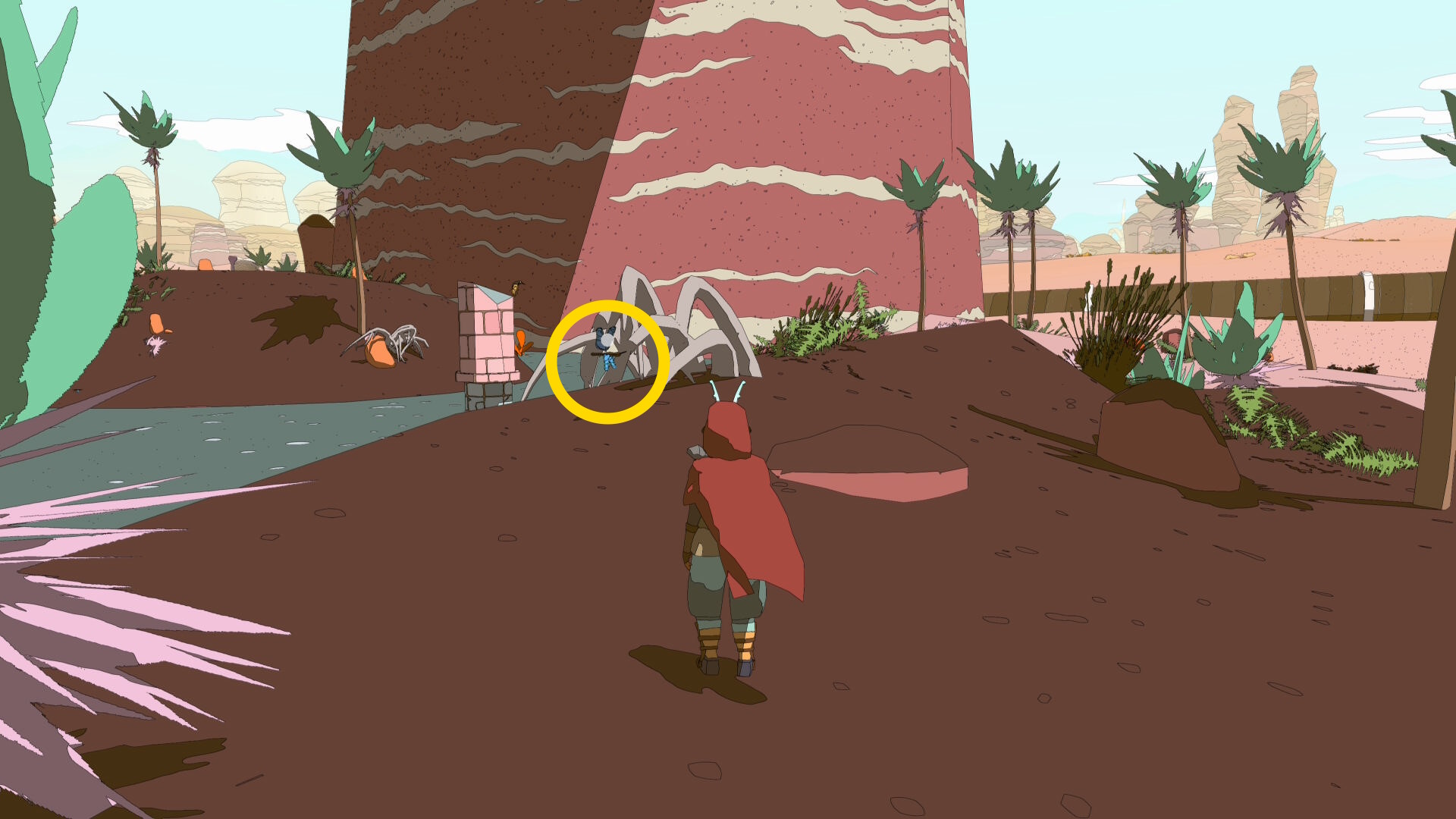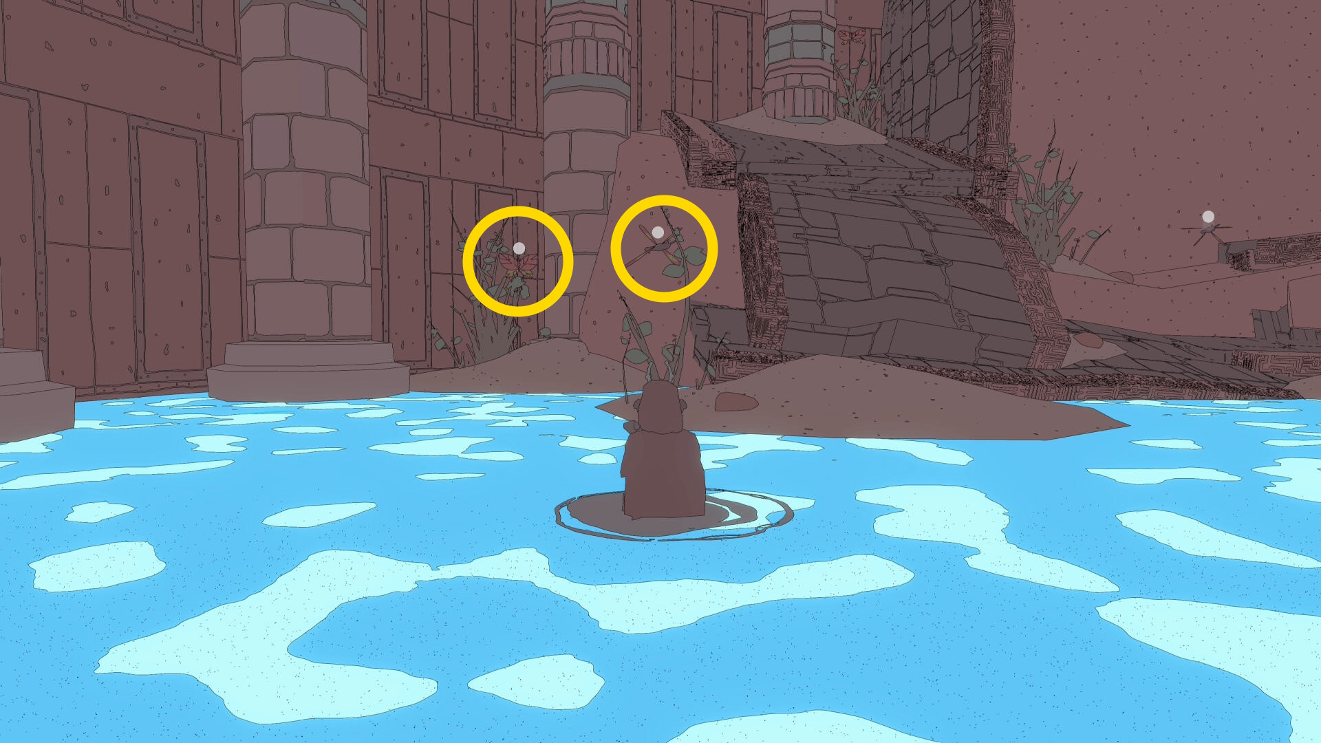 • 上画像の位置に到着するとサボテンと小さな植物があり、その間に仕掛けを投げると ピルフィッシュ(魚:4/17)が釣れやすい