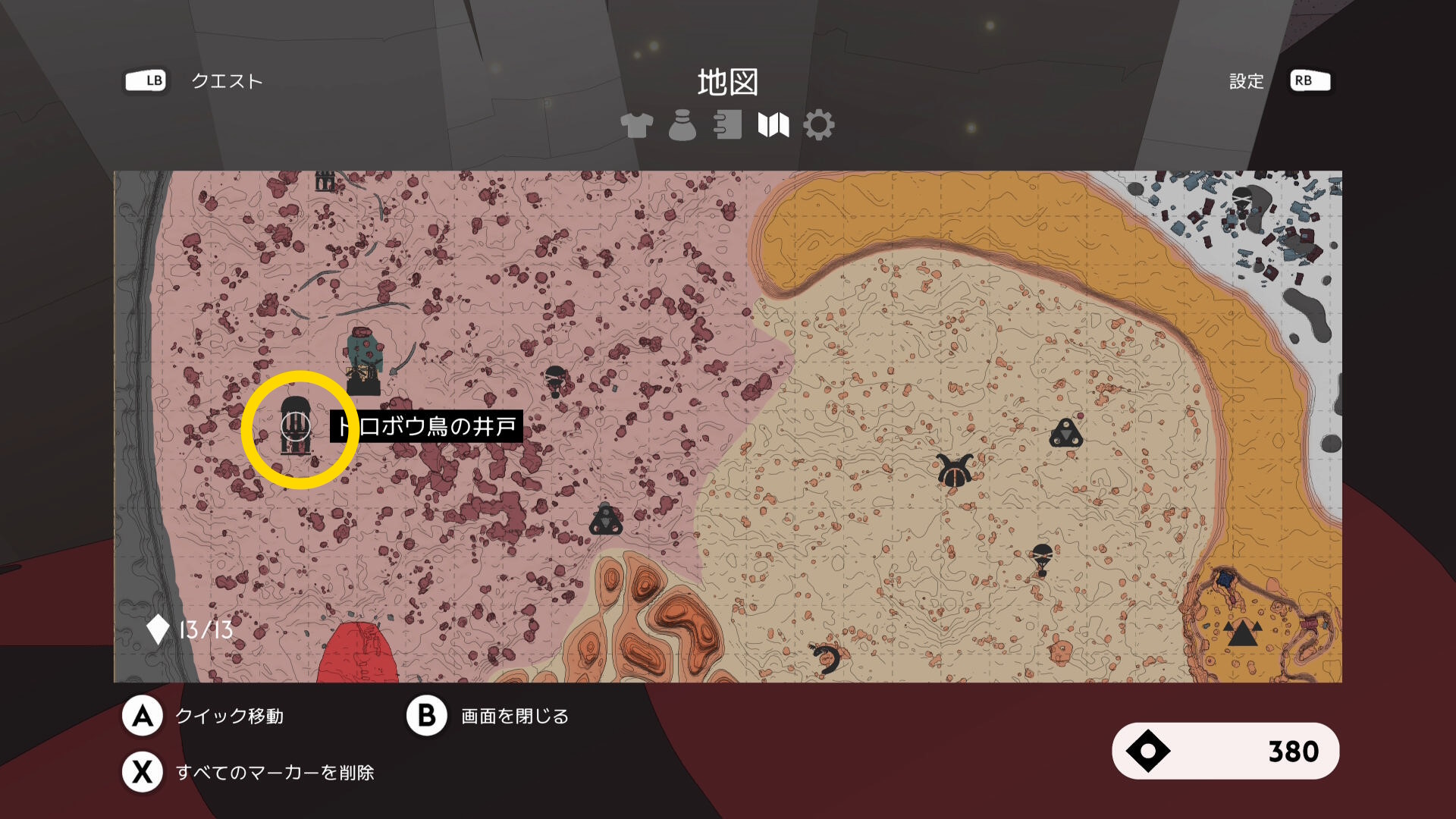 • 同じエリアの北西にある「エックリア」にファストトラベル