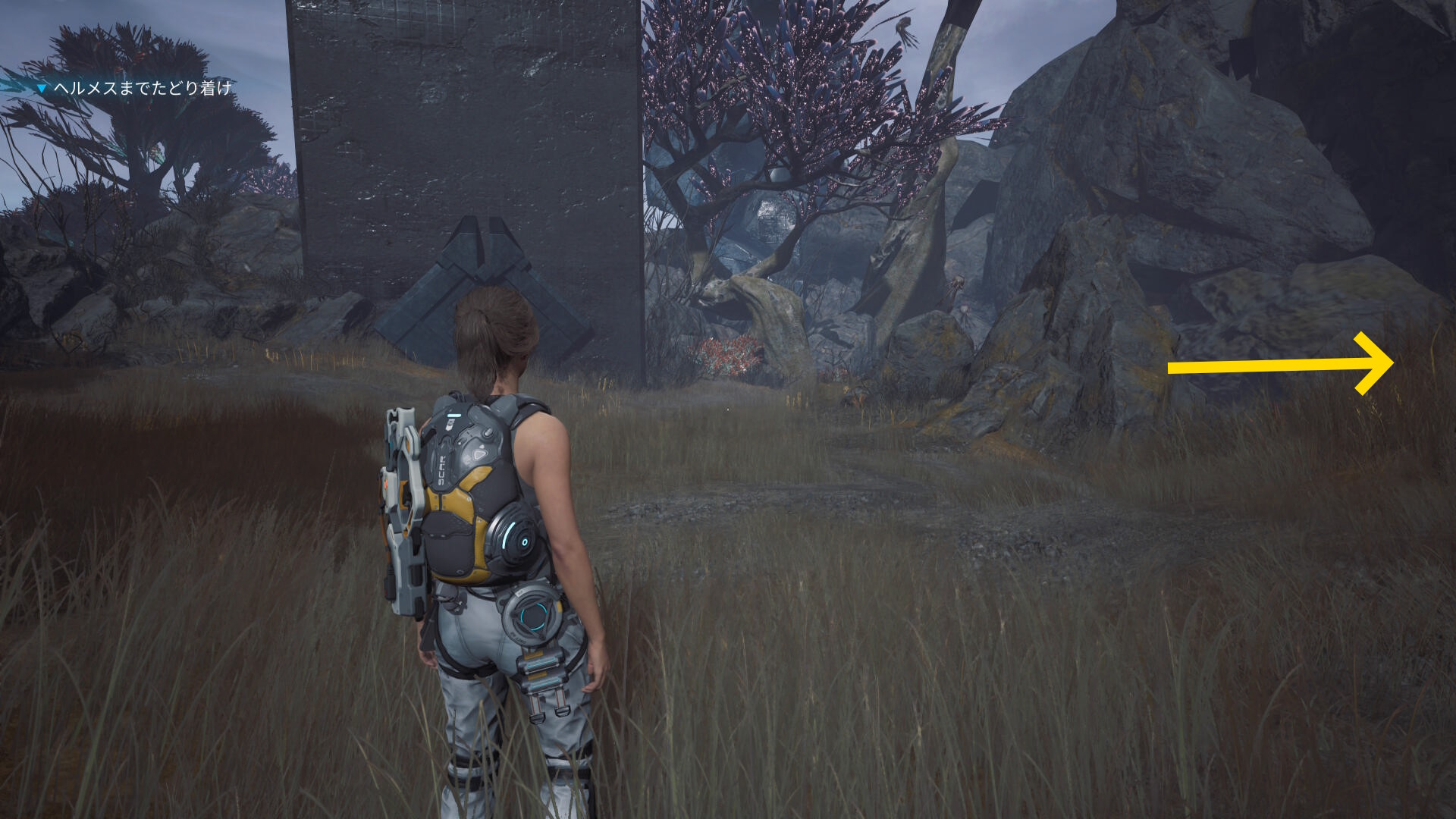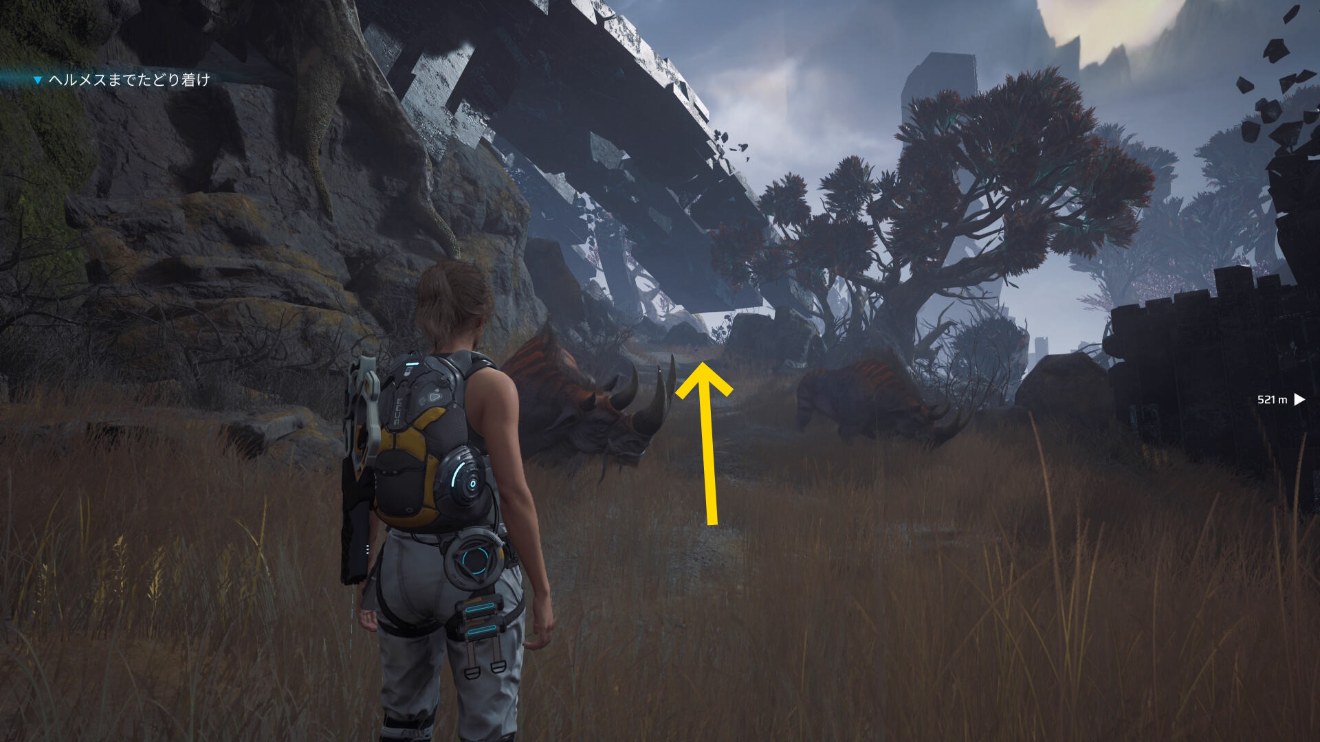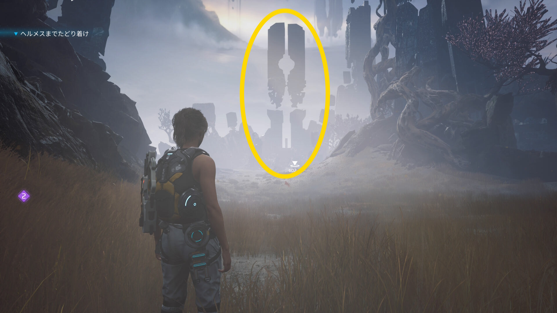 - そのまま正面奥にある墜落したヘルメスに近づくと 実績「転落した神」解除