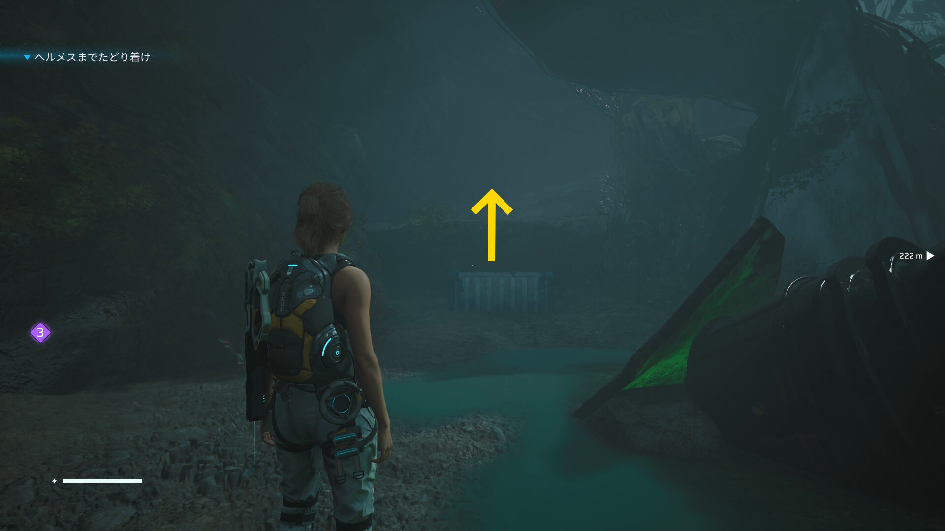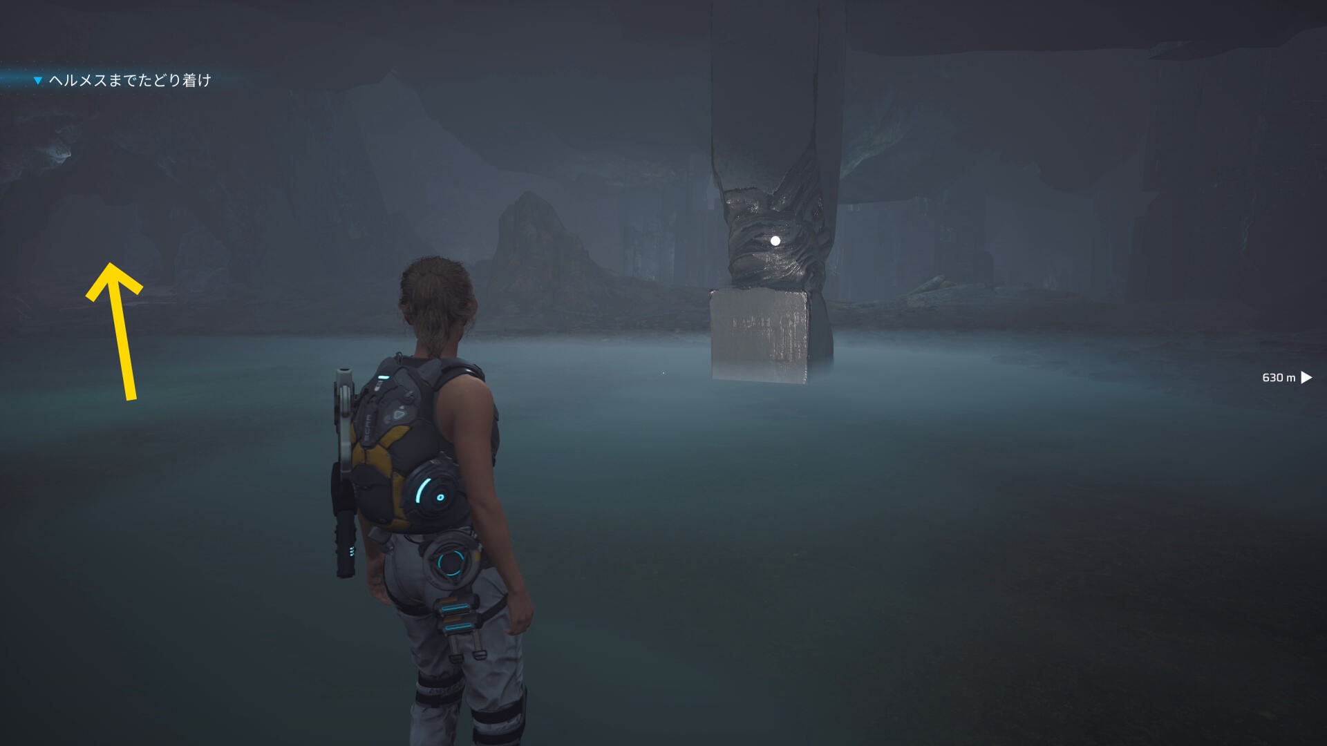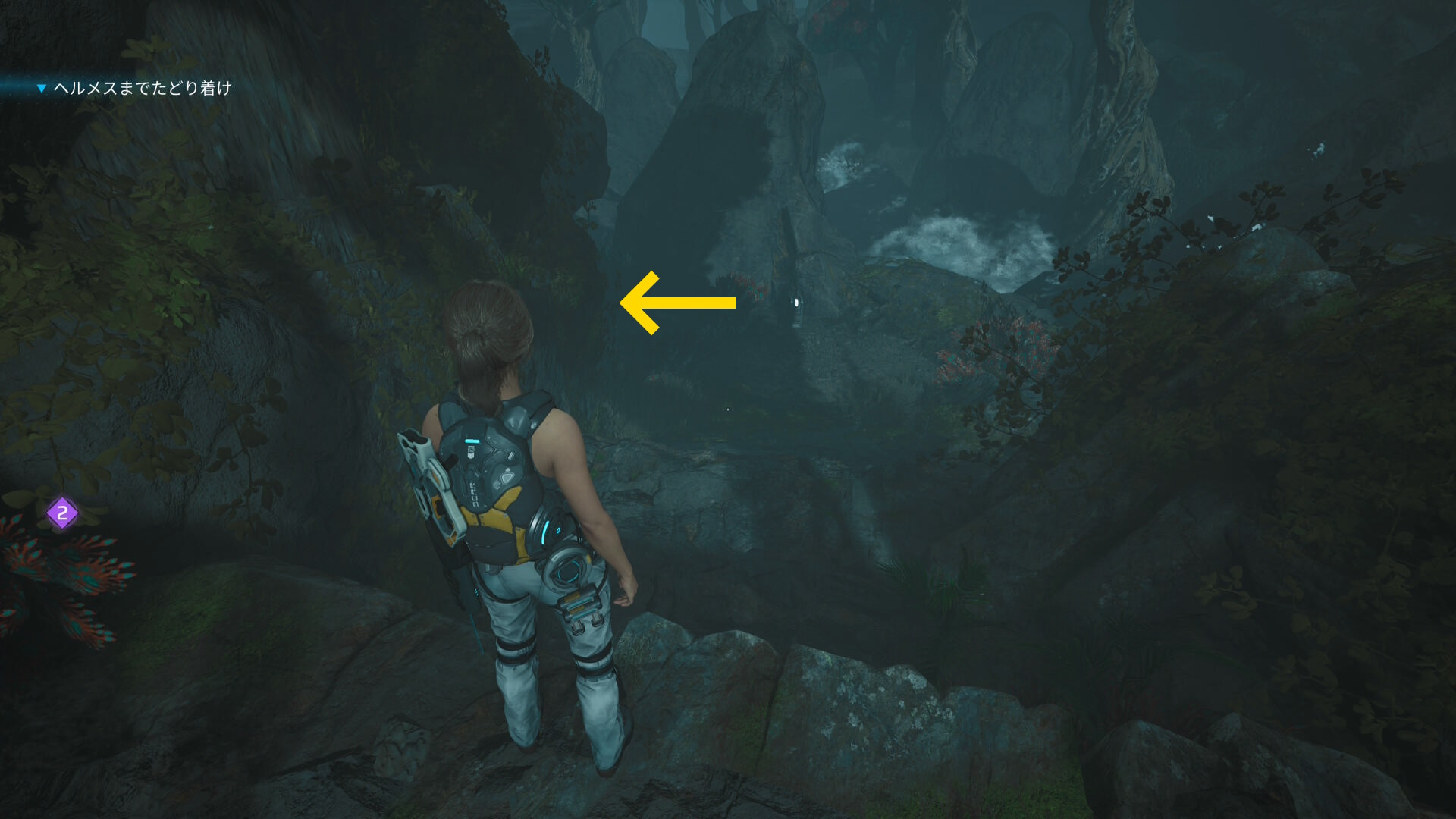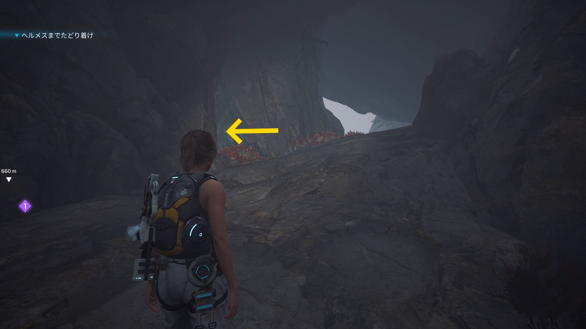 - エイリアンの柱を正面に見て、左の洞穴に進む