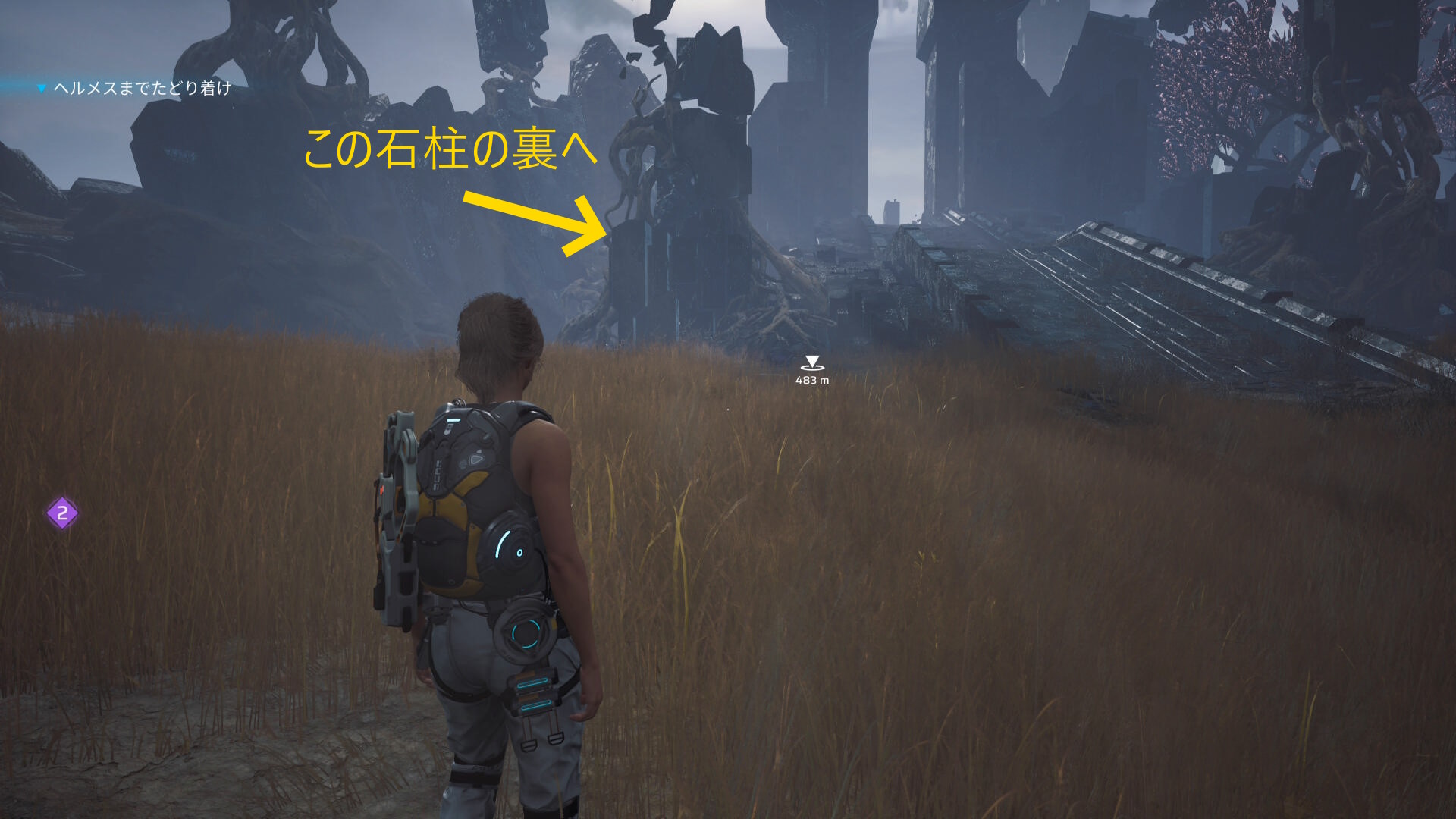 - なお、エイリアンの柱の正面奥は向こう側から橋を作るため、今は行っても何も出来ない