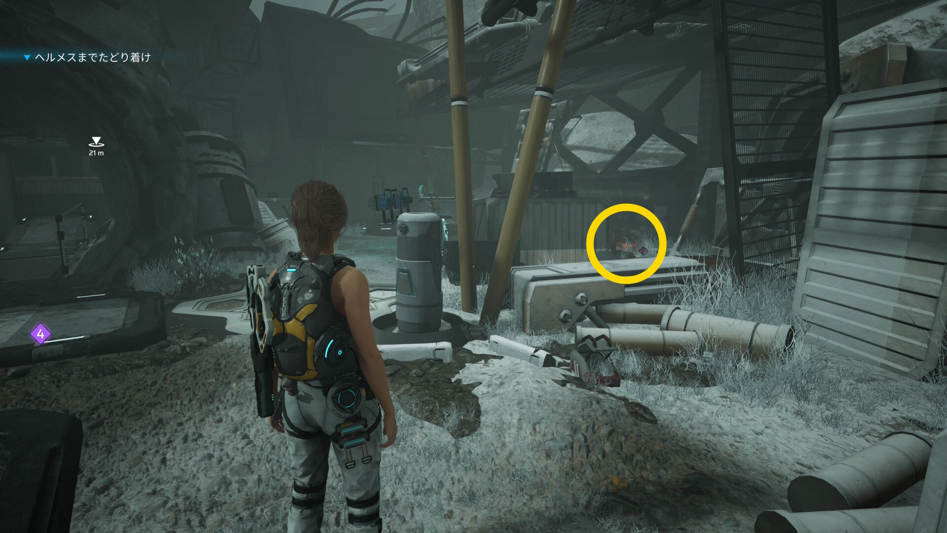 - ロケットエンジンを背にすると正面にヘルメスの瓦礫が見える