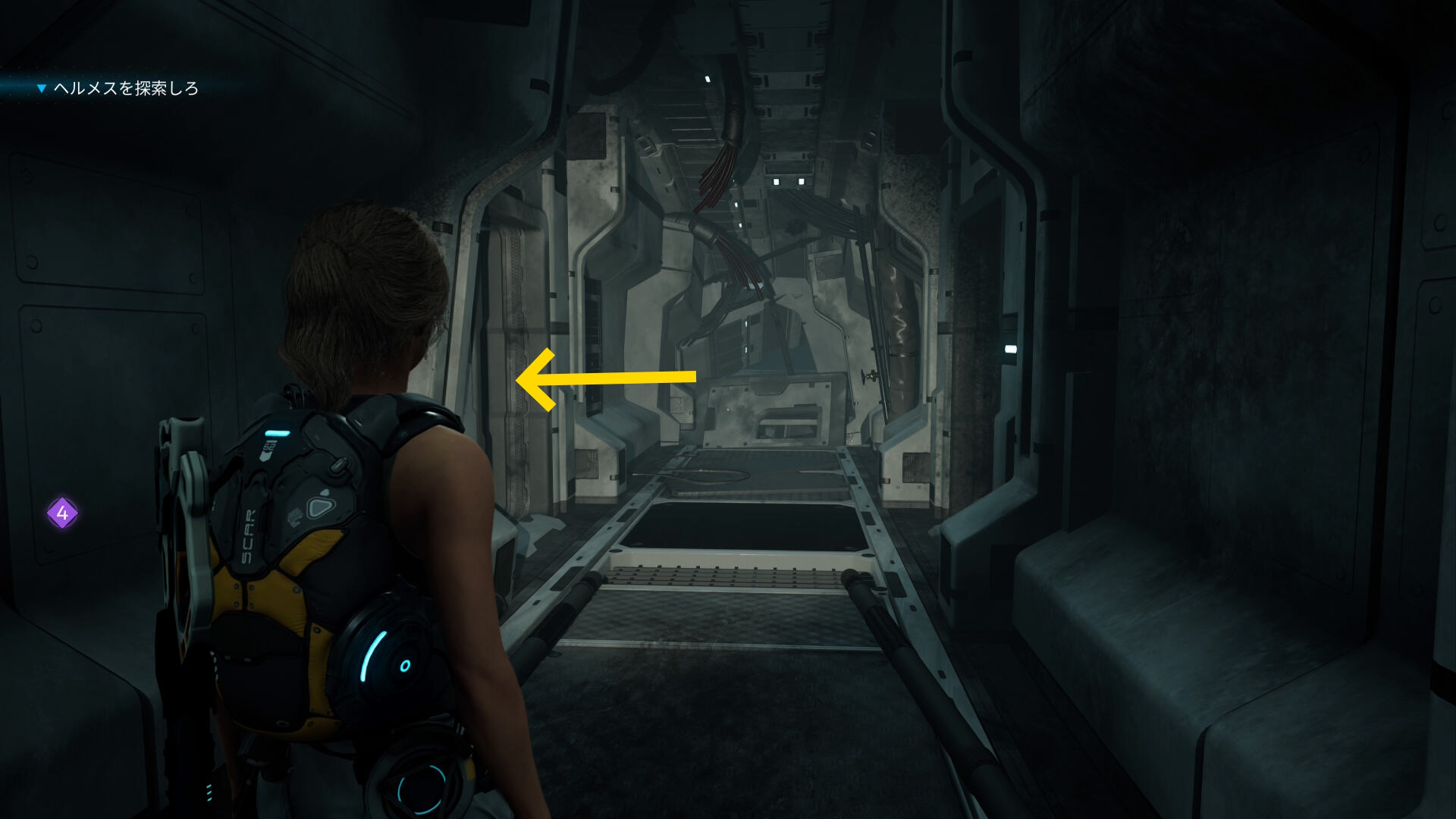 - 実績が解除された場所から、左に U ターンするように進むと道があるが、今はまだ進めない(ケイトが『ヘルメスを調べきれていない…答えを見つけないと』と言う)