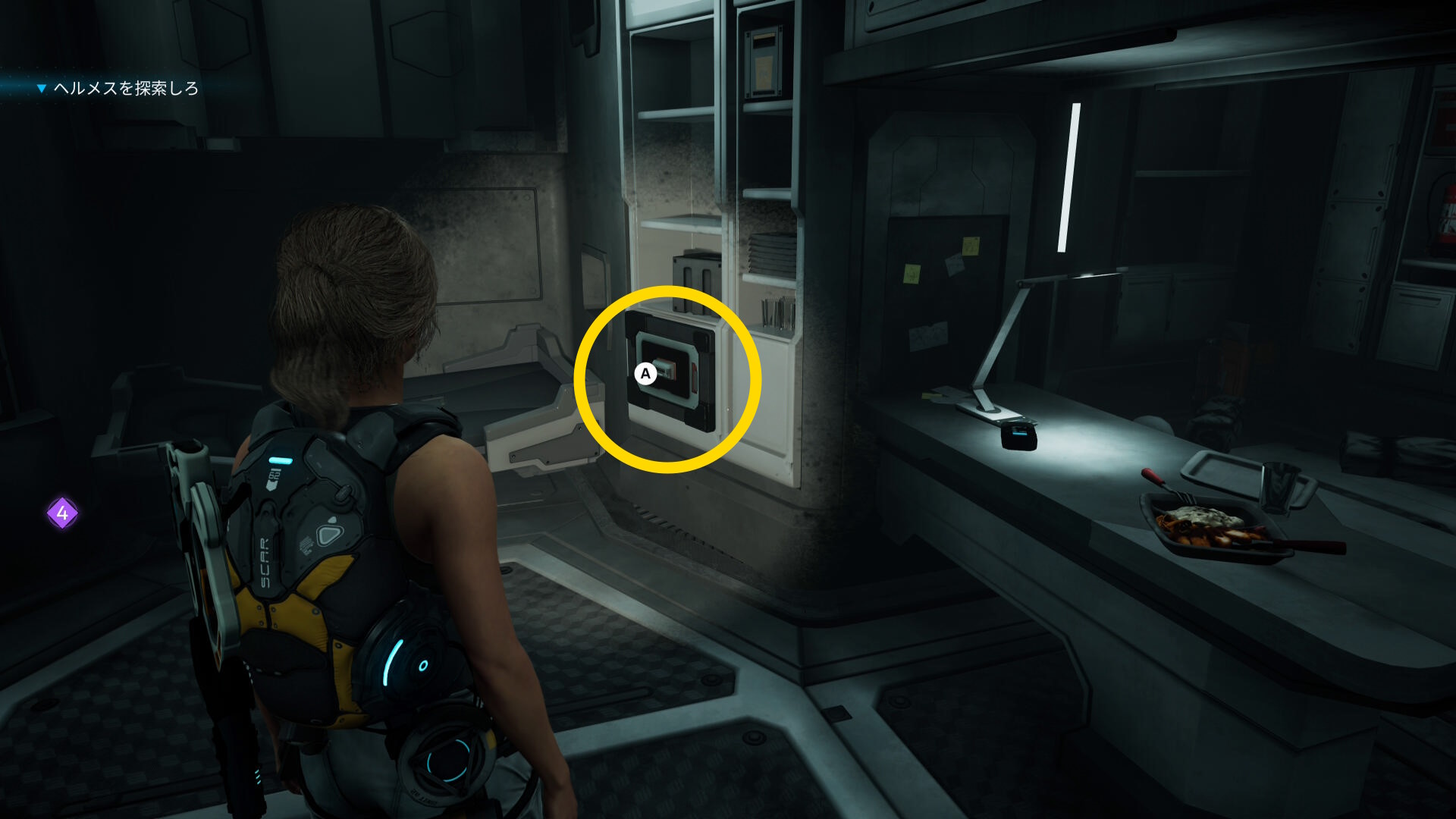 - その近くの作業台で「 SCAR のエンブレム」を調べることができるが、スルーしてもオーケー
