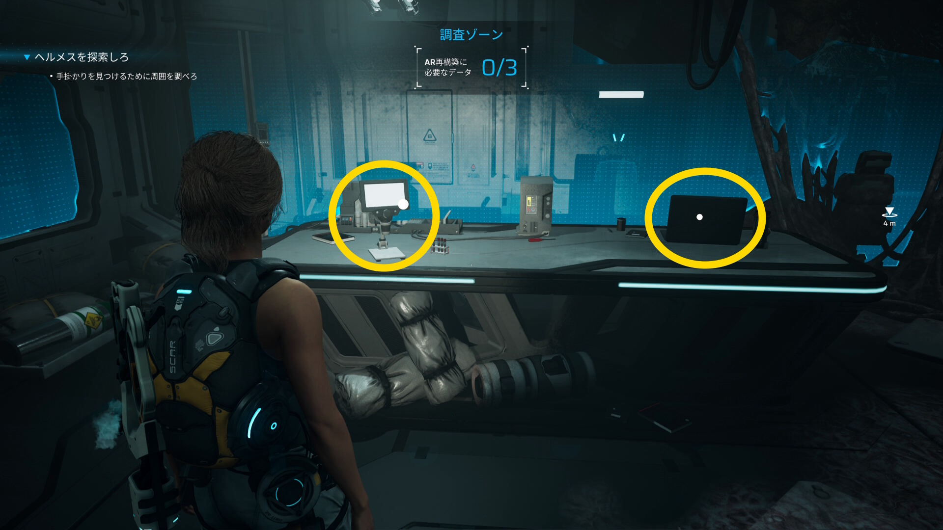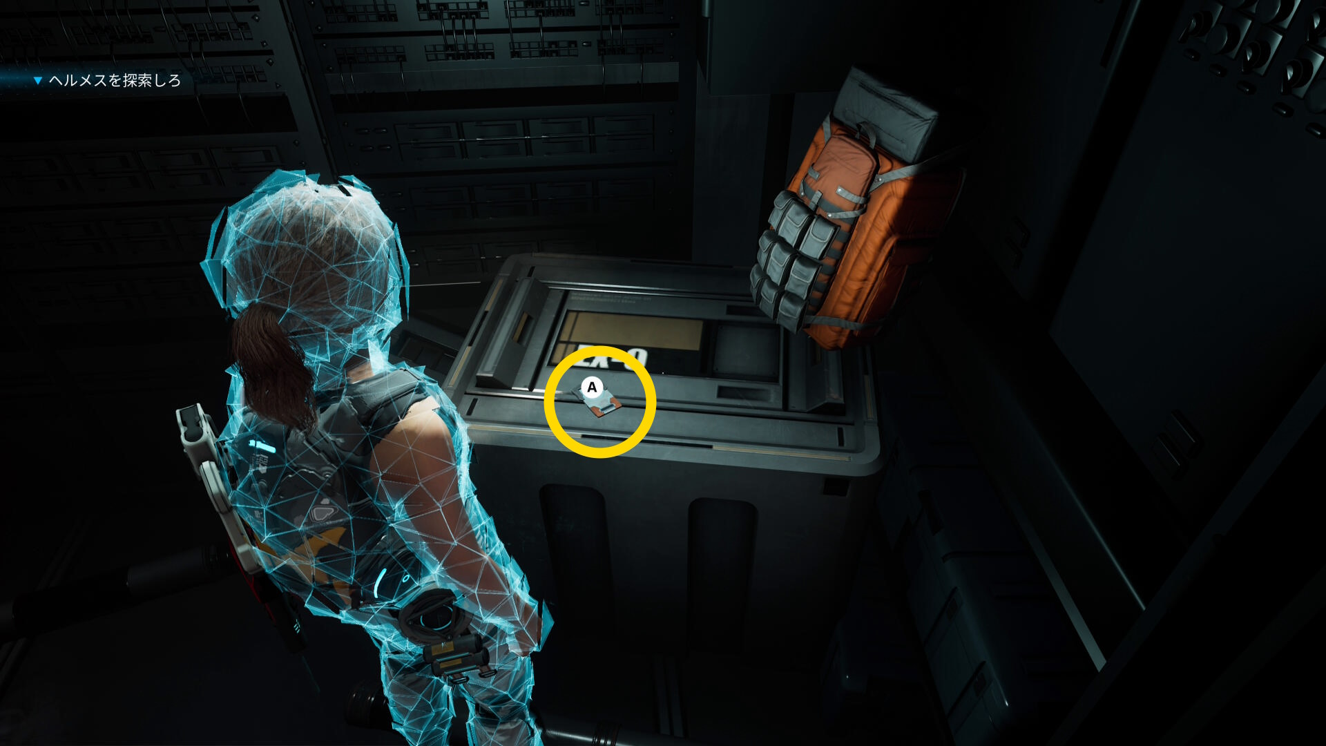 - 目の前のテーブルにおかれたログを再生後、その左側にあるロッカーを「キーカード」で解錠