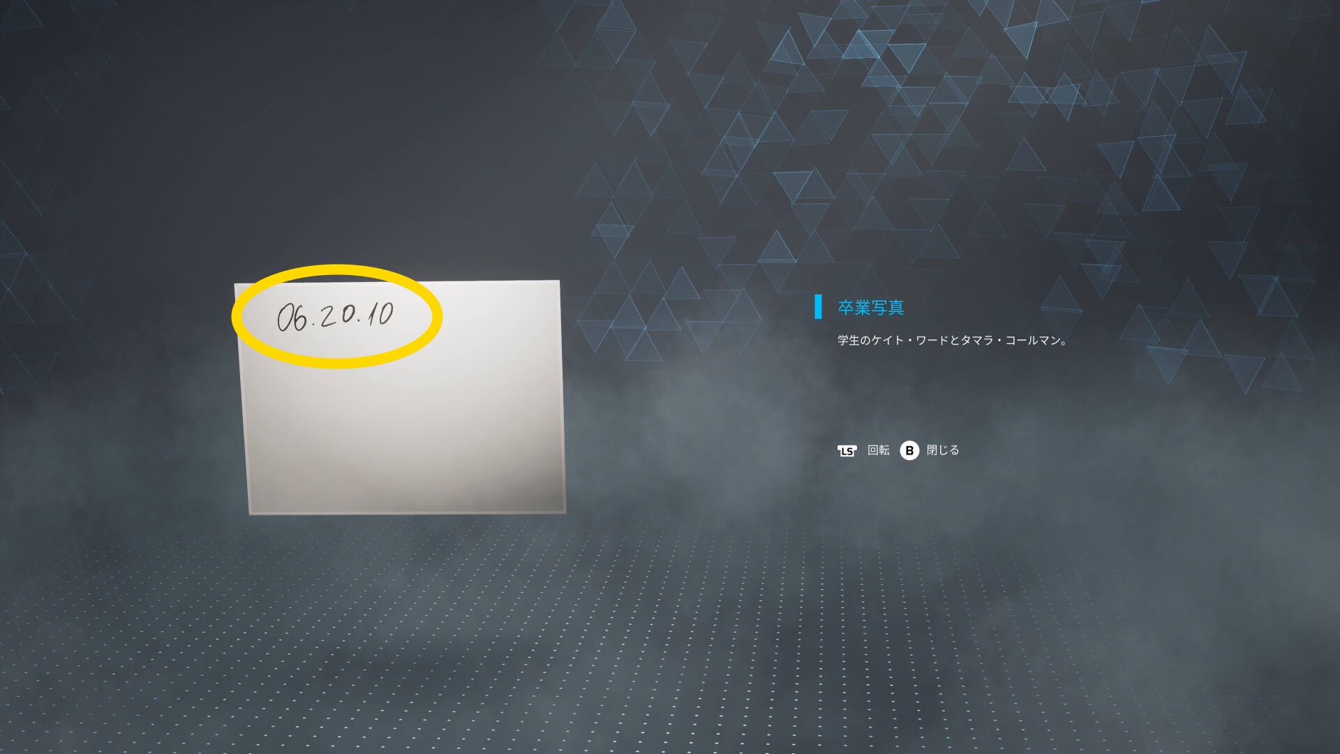- 中には卒業写真が入っており、裏面を確認して 06.20.10 を控える