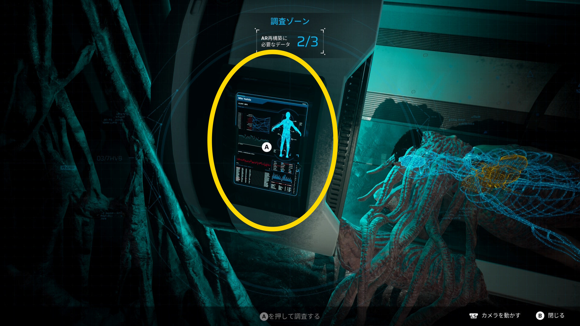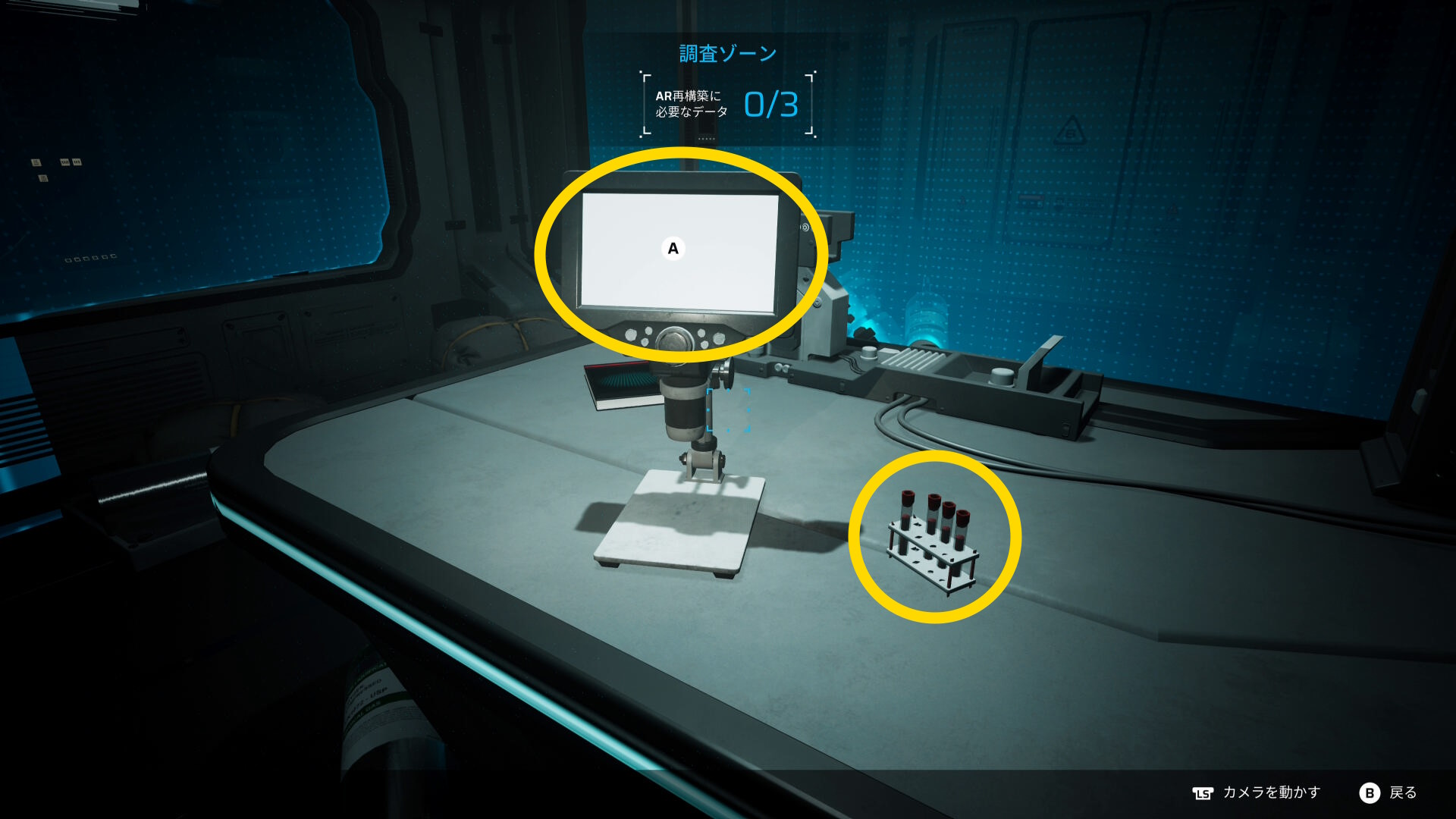 - マイクの部屋に入ると「調査ゾーン」が展開する