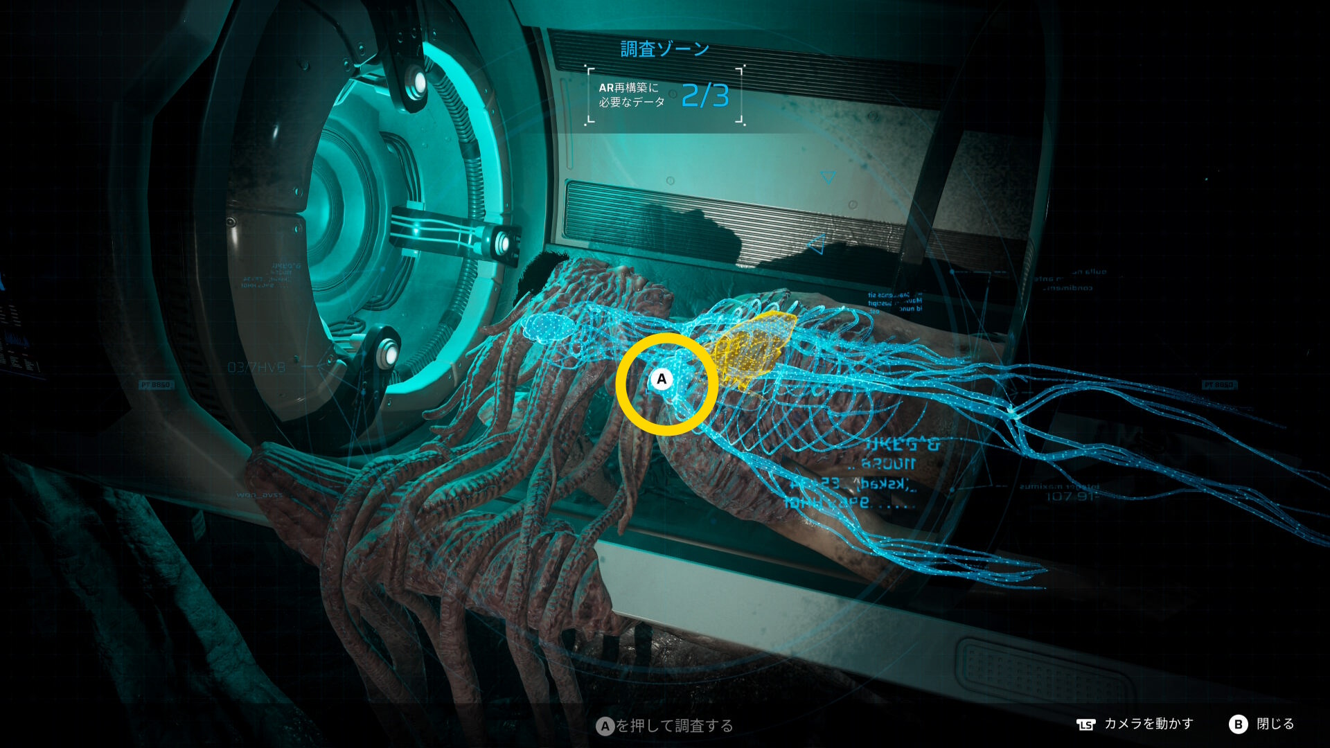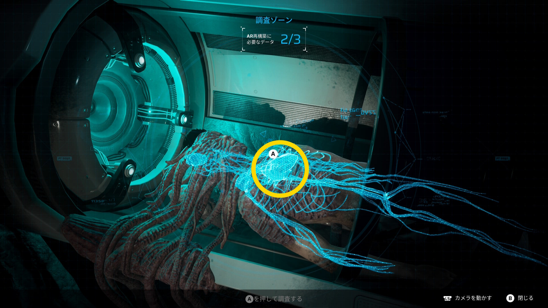 - マイクの胸を調べる( A 長押し)と内臓や神経経路を調べることができるようになる