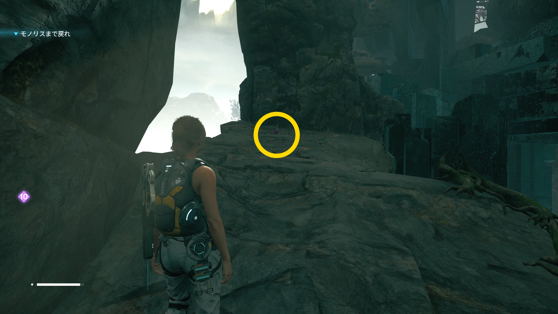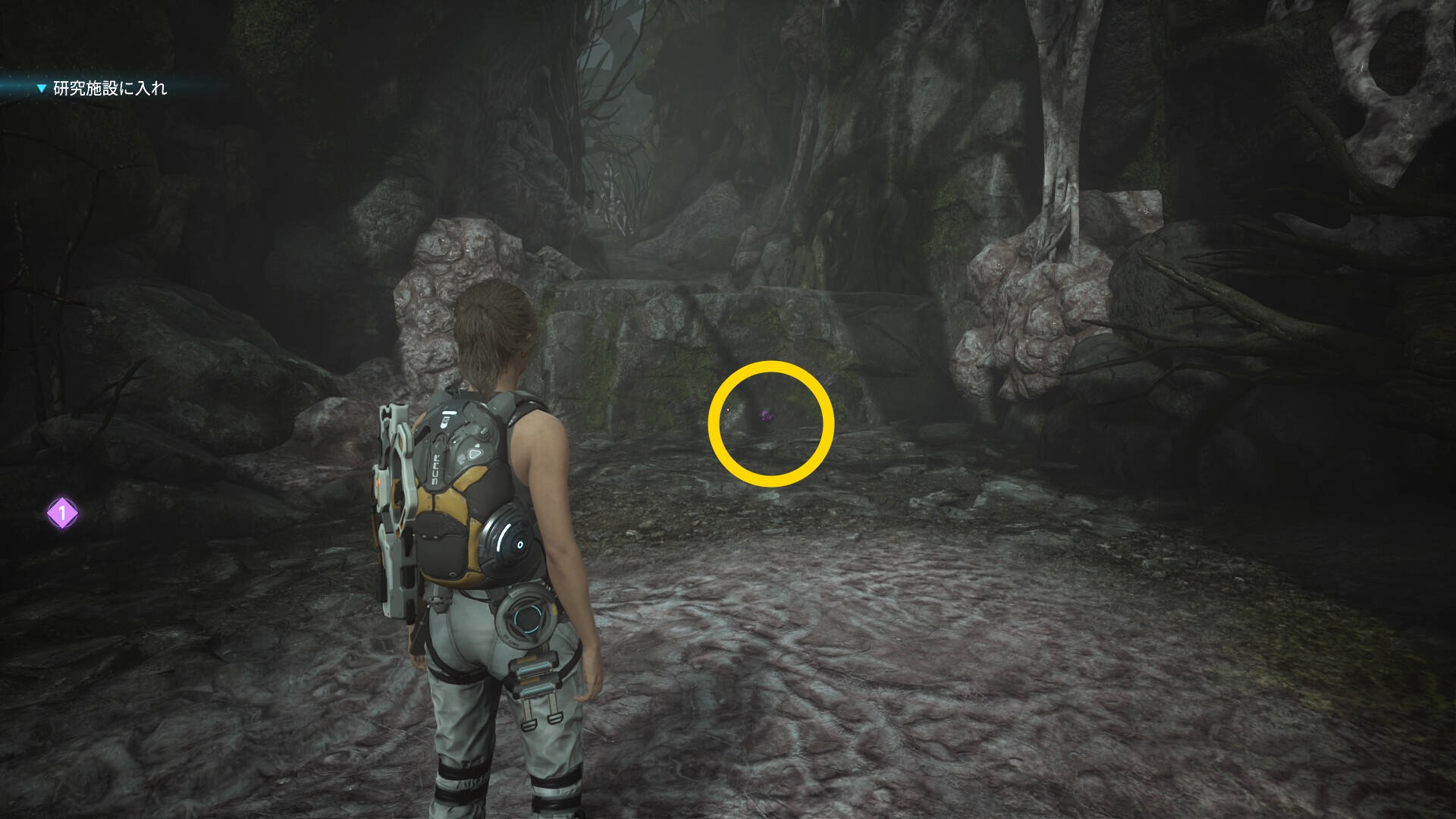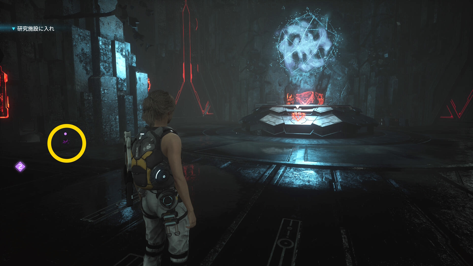 - 洞窟を出て右前方のモノリスへ進み、ラボへテレポート