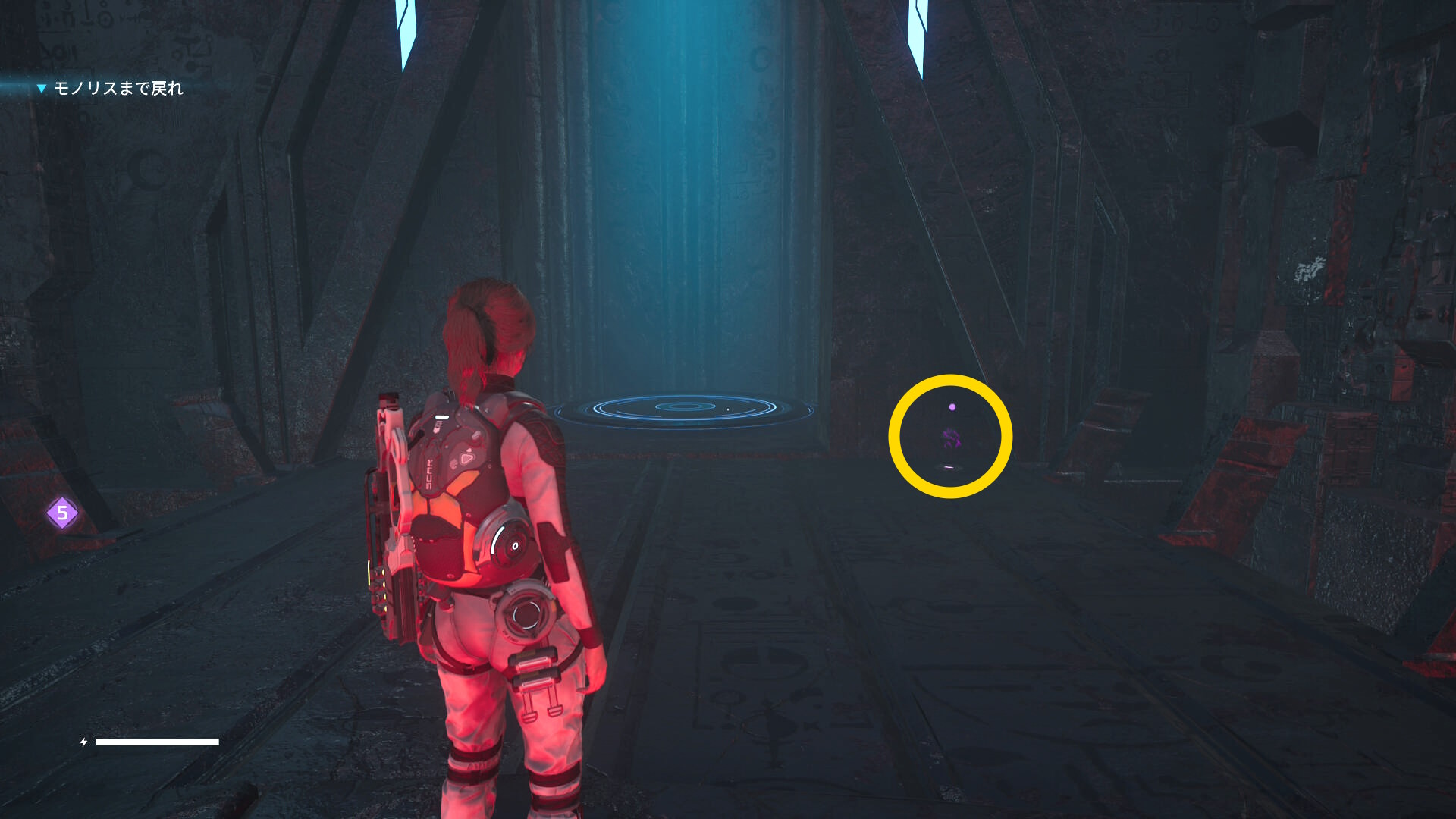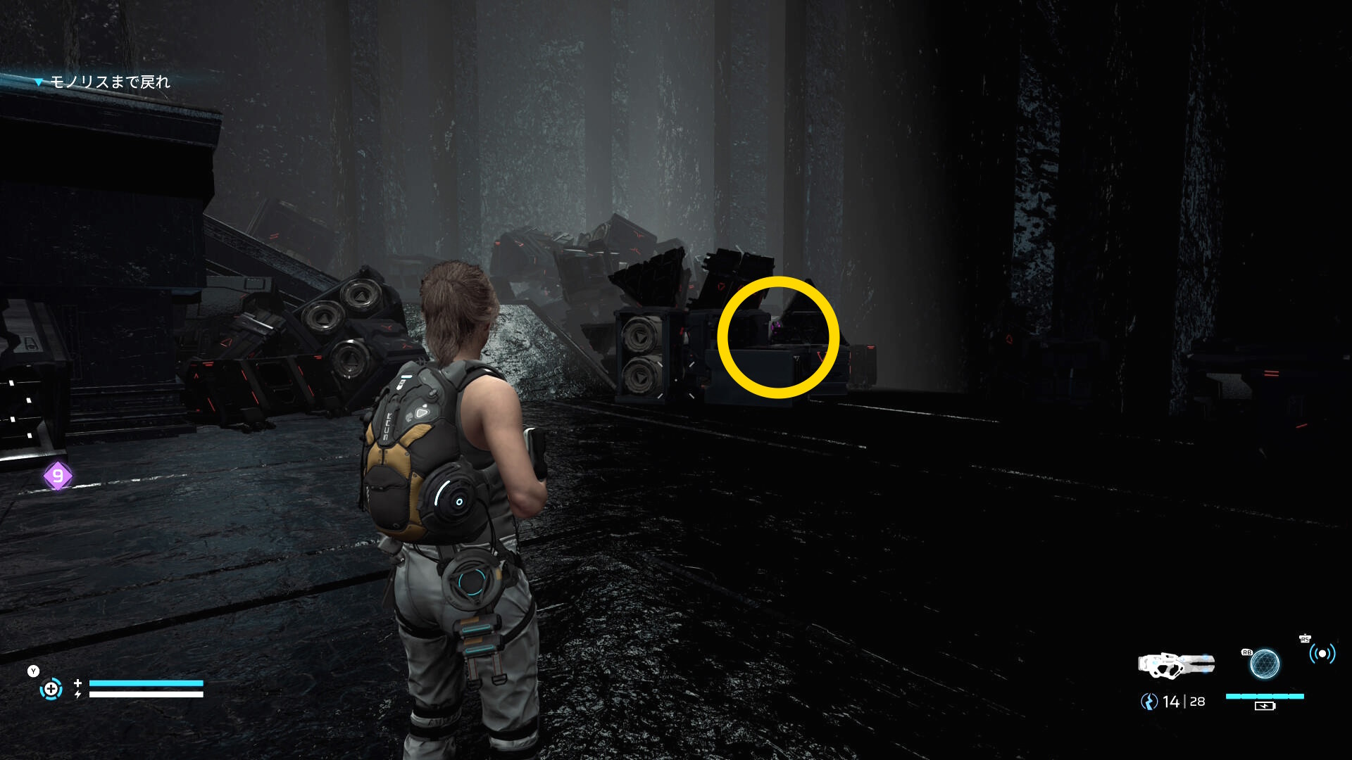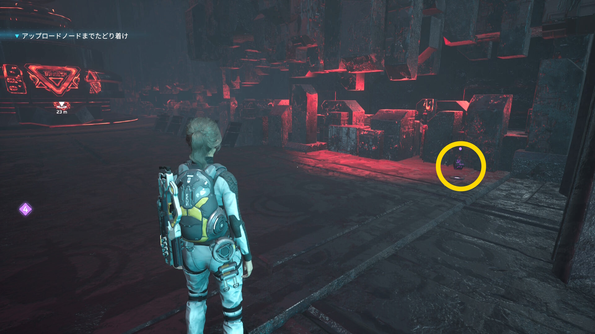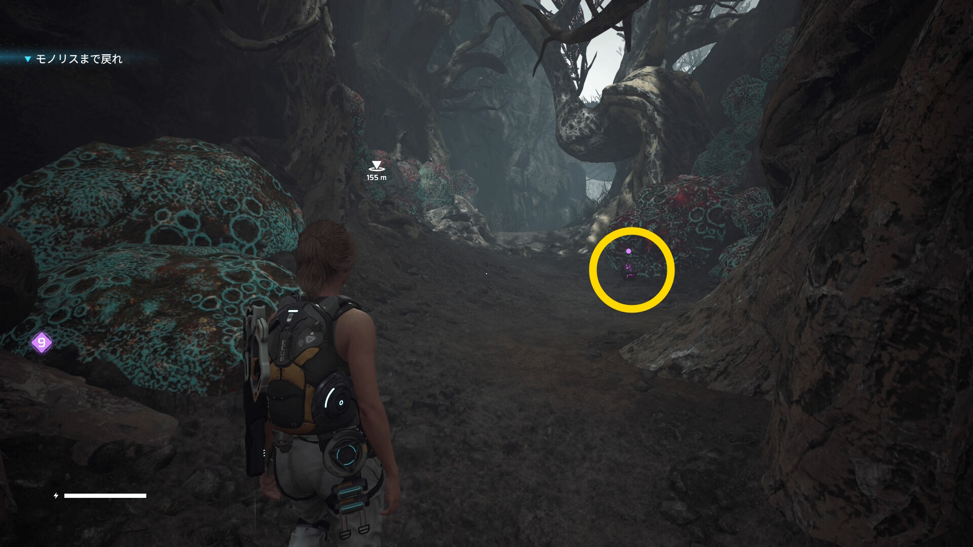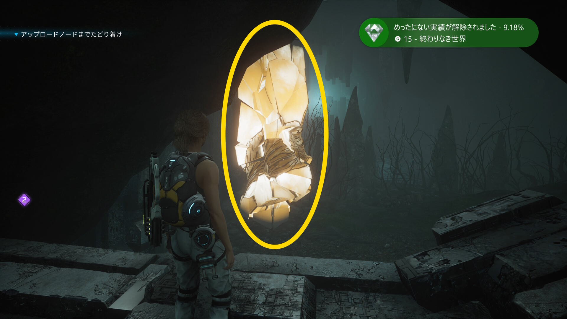 - すぐの段差を登ると エイリアンの柱(17/17) ⇒ 柱の起動忘れがなければ 実績「終わりなき世界」解除