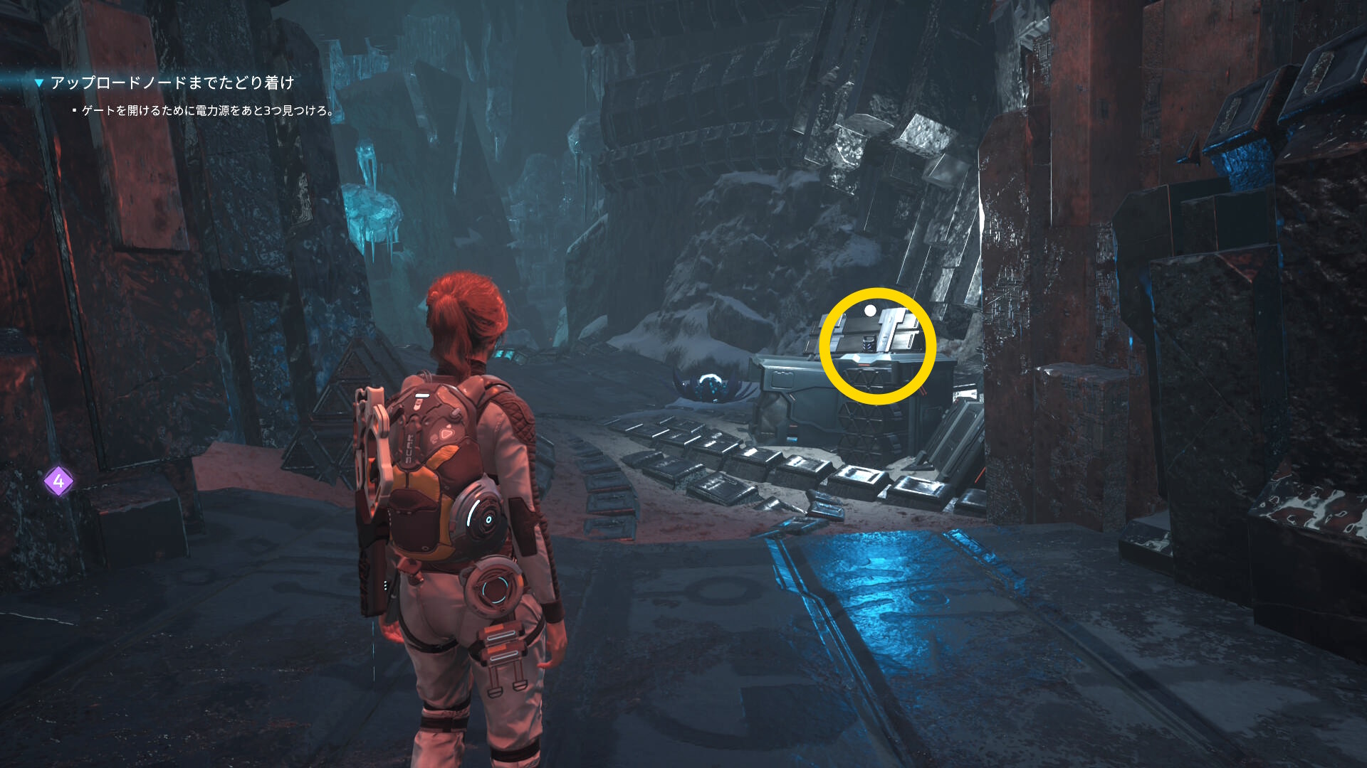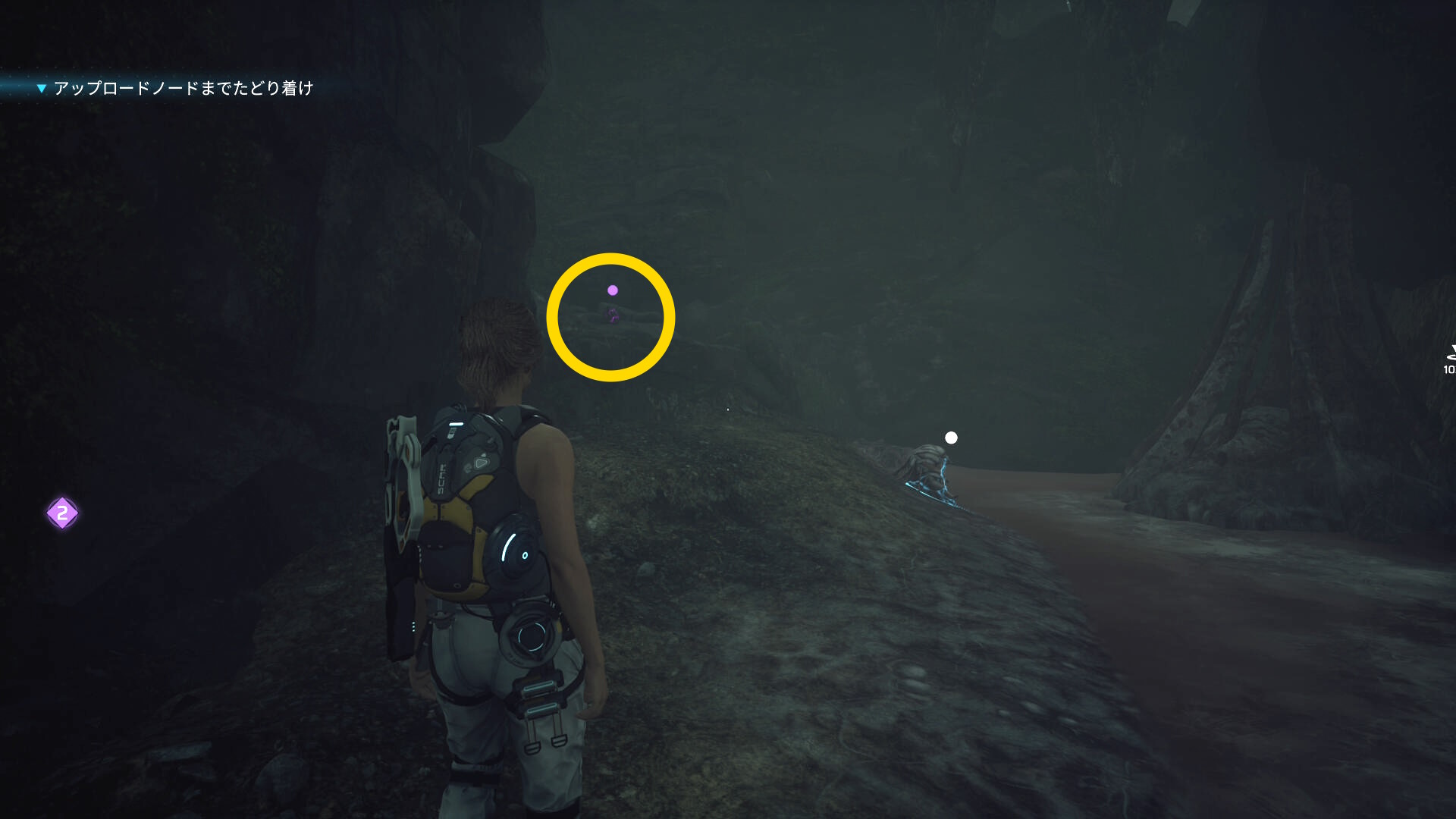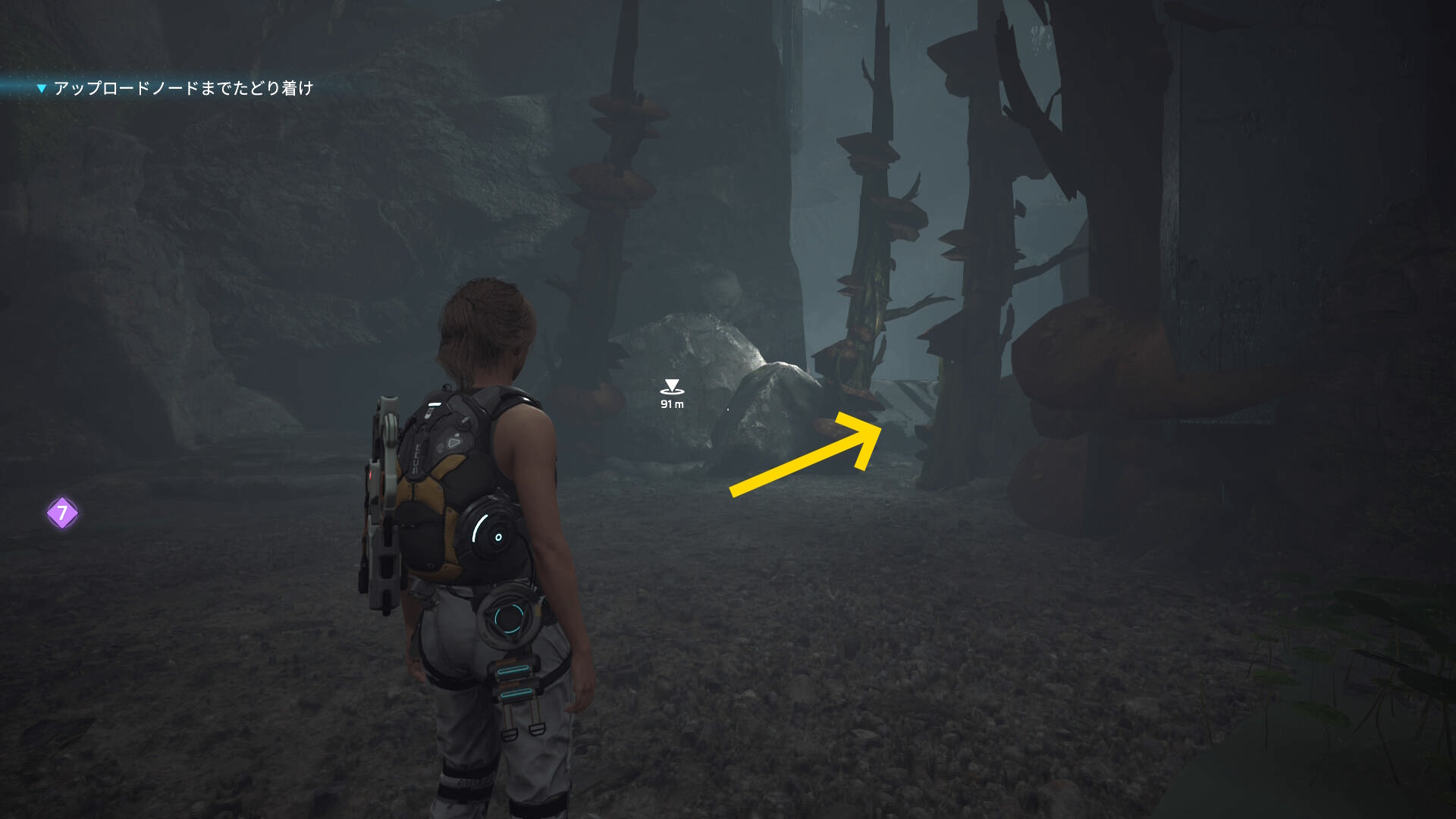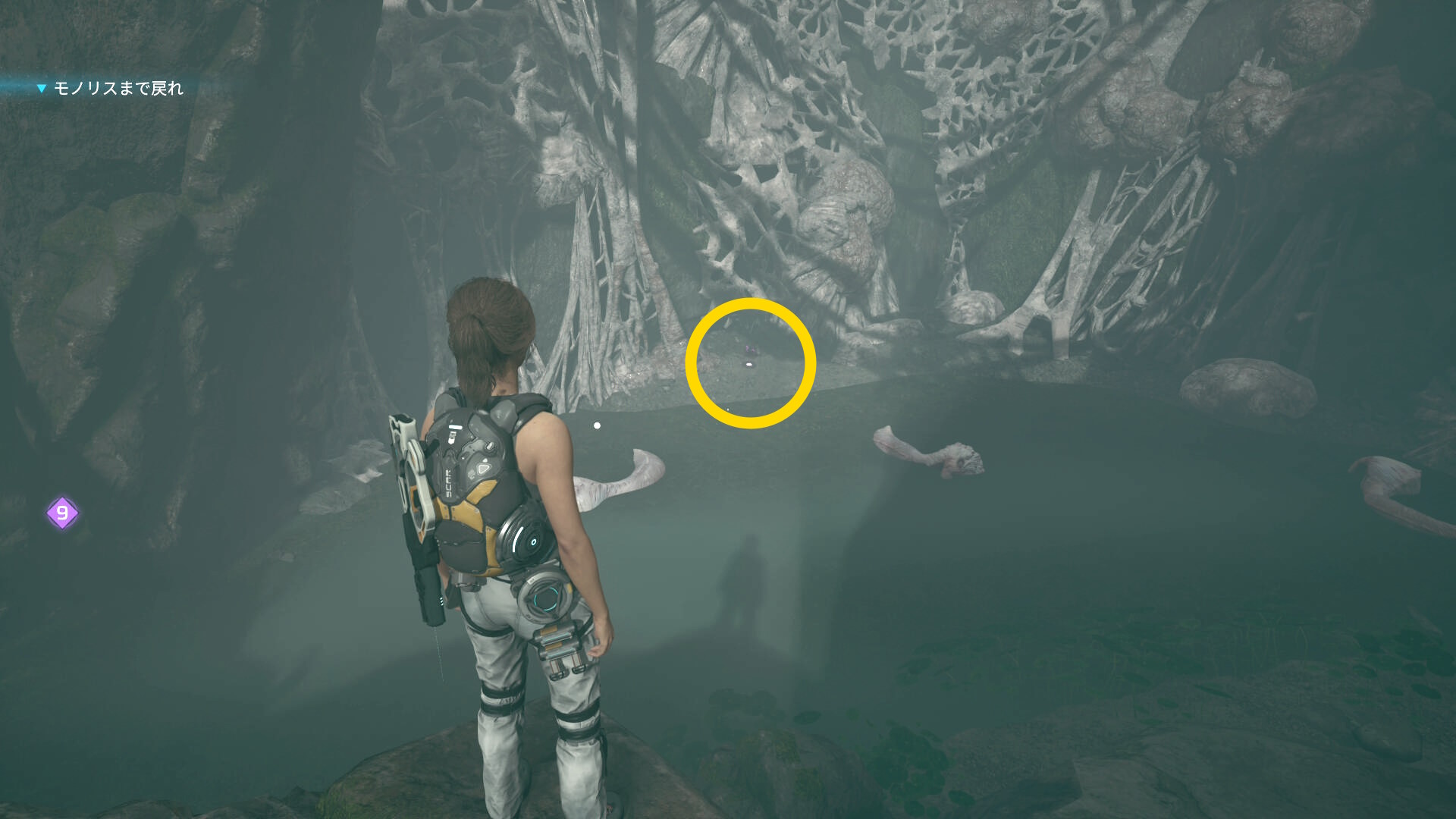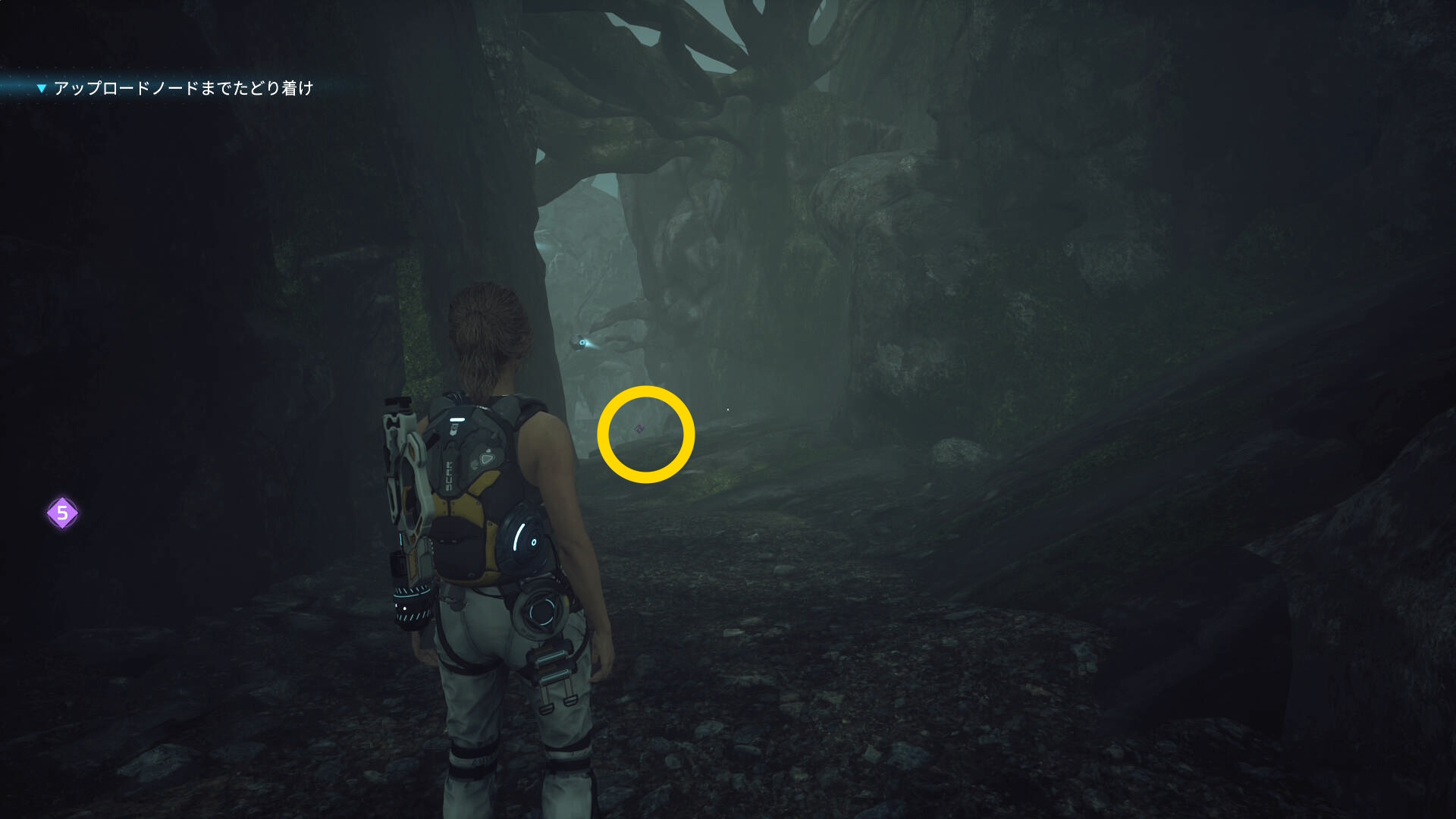 - すぐの段差を登ると エイリアンの柱(17/17) ⇒ 柱の起動忘れがなければ 実績「終わりなき世界」解除