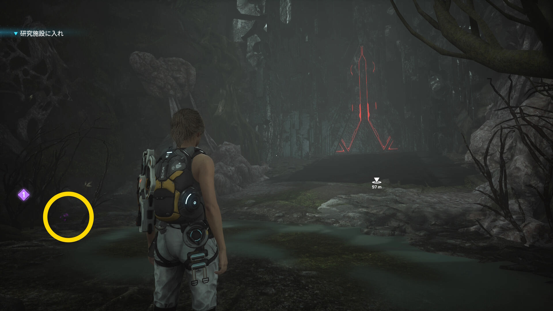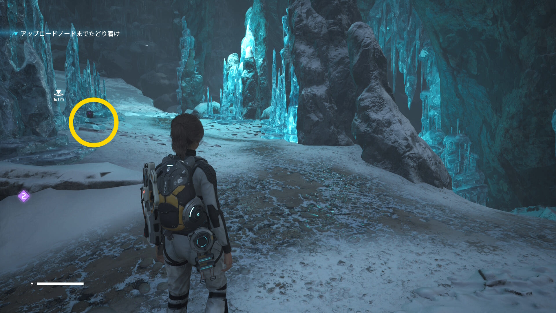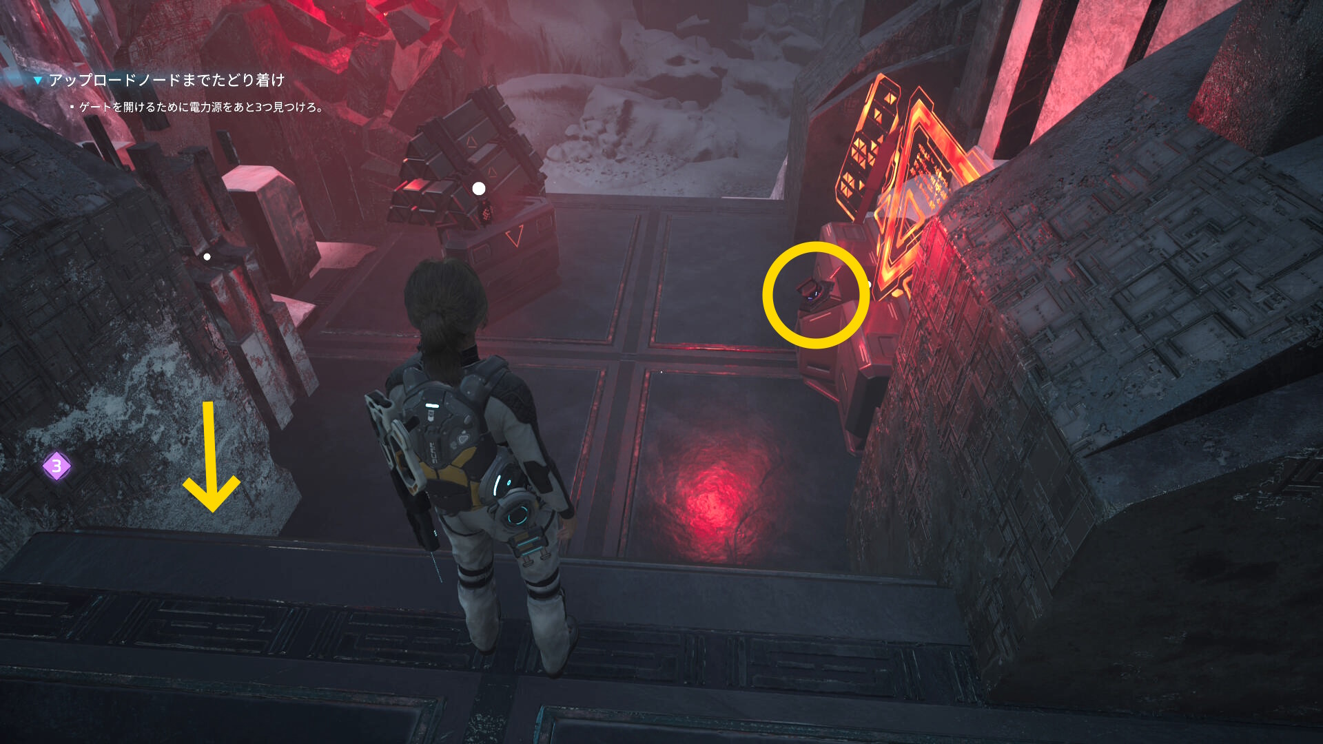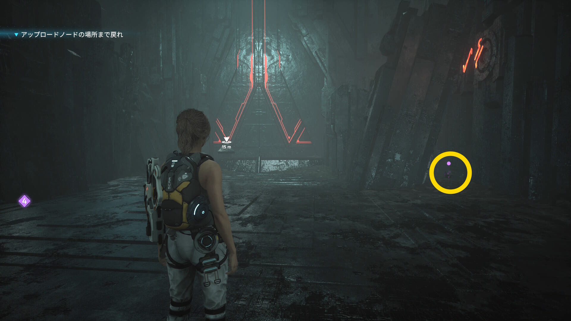 - すぐの段差を登ると エイリアンの柱(17/17) ⇒ 柱の起動忘れがなければ 実績「終わりなき世界」解除